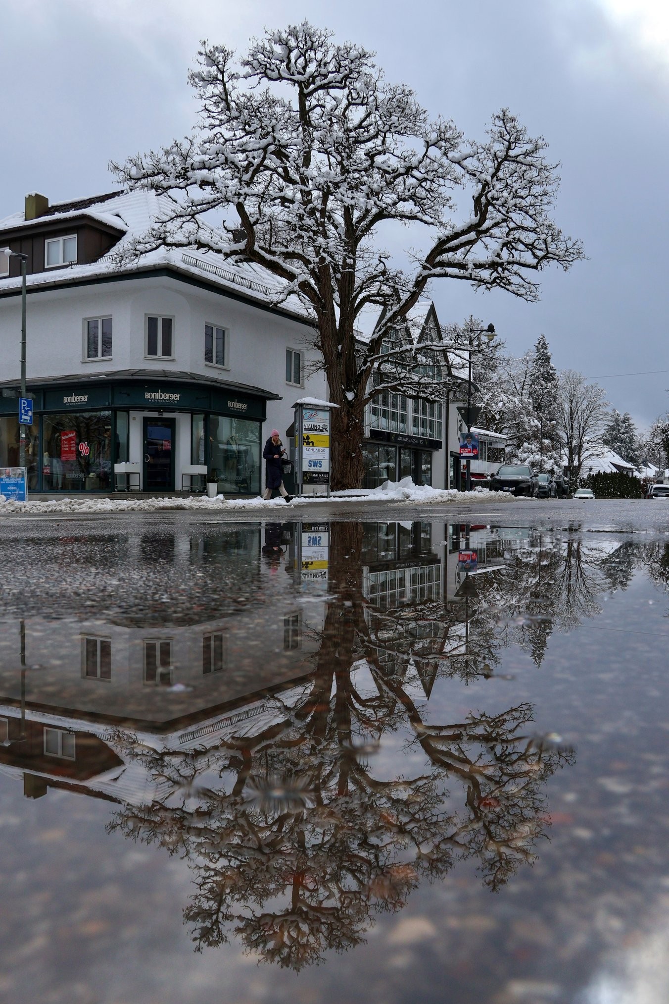 Bis gestern hatte ich diesen Baum in Planegg noch nie von dieser Seite aus in einer Pfütze spiegeln können. Gestern gab es eine riesige Pfütze mitten auf der Straße. 😎