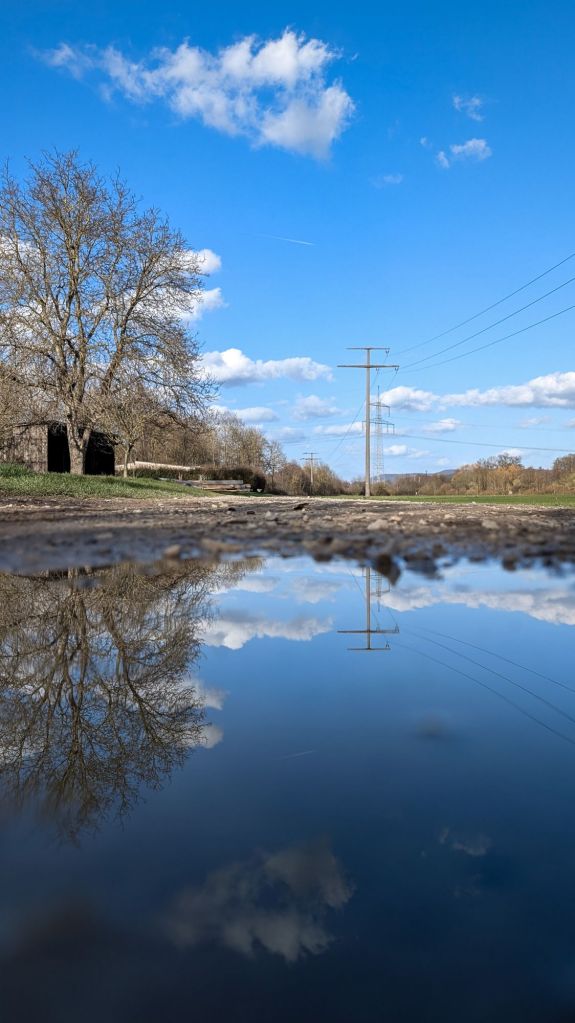 Hey, es hat doch nochmal geregnet! Hätte gar nicht gedacht, dass es so viel war, dass Pfützen entstehen, aber hier ist ein Pfützenfoto aus meiner oberfränkischen Heimat von heute Abend. 🙂