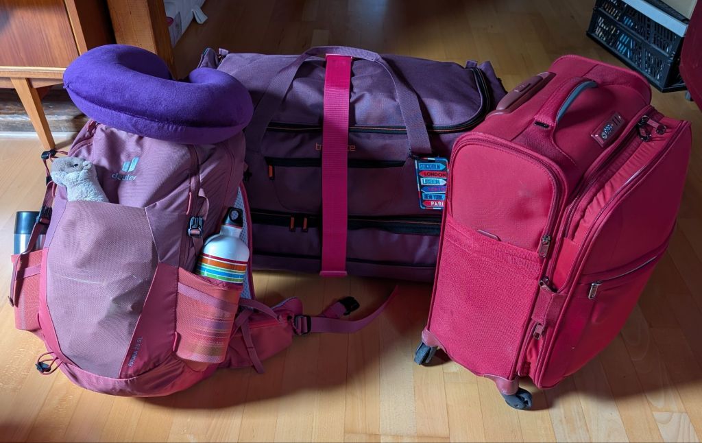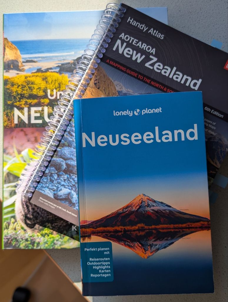 Die Koffer sind gepackt, die Reisende ist ordentlich nervös. 😳 Morgen geht es los: um 12:05 soll mein Flieger mit Singapore Airlines nach Sydney über Singapur gehen. Werde ich mit all meinen Medikamenten ins Flugzeug (habe eine Auflistung aller Medikamente, unterschrieben von meiner Hausärztin und mit Stempel der Praxis) – und später nach Australien und Neuseeland gelassen? Habe ich meine Schuhe (vor allem die Wanderschuhe) gut genug geputzt, sodass ich an der neuseeländischen Grenze keine Probleme bekomme? Kriege ich das mit dem Linksverkehr auf Anhieb so hin, dass ich nicht zur Geisterfahrerin werde? 😳 Und: Wird den Tankstellen in Neuseeland das Benzin und den Flugzeugen das Kerosin ausgehen? 😮