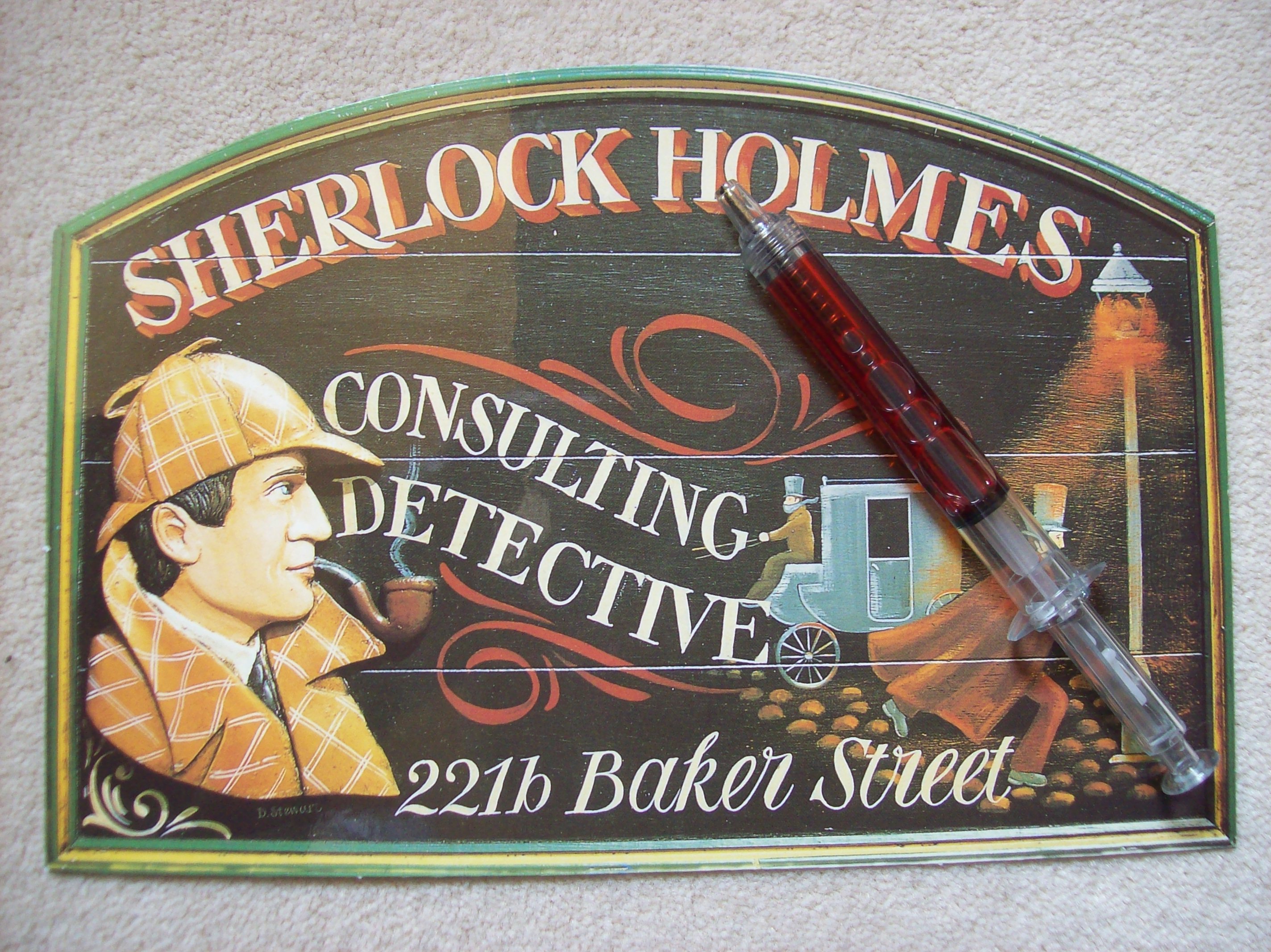 Und auch im Museumsshop trägt man der Serie Rechnung, in dem dort auch Merchandise zur Serie (Tassen, Kalender, T-Shirts…) zu kaufen ist. Allerdings sind der Großteil tatsächlich Memorabilien zur Buchreihe von Sir Arthur Conan-Doyle, wie z. B. diese Karte und der etwas ungewöhnliche Rotstift.