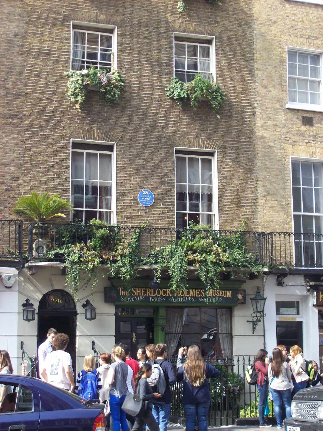 Da ich ja Martin Freeman insbesondere durch seine Darstellung des Dr. Watson in der genialen und Emmy-prämierten BBC-Serie Sherlock schätzen gelernt hatte, wollte ich meinen Kurztrip nach London zu Richard III auch ein bisschen „Sherlockig‟ gestalten. Meine Begleiter waren gerne mit dabei, also besuchten wir gleich als erstes das Sherlock Holmes Museum in der Baker Street. Schon auf dem Weg dahin wurde mir klar, warum die Serie nicht in dieser Straße gedreht wird – sie ist eine sehr stark befahrene Straße (ach, das englische „busy‟ wäre hier um soviel prägnanter), die man wahrscheinlich nur sehr schwer sperren könnte. Natürlich hat das Museum seit dem Erfolg der Serie noch viel mehr Zulauf, wie man schon VOR dem Gebäude sehen konnte.