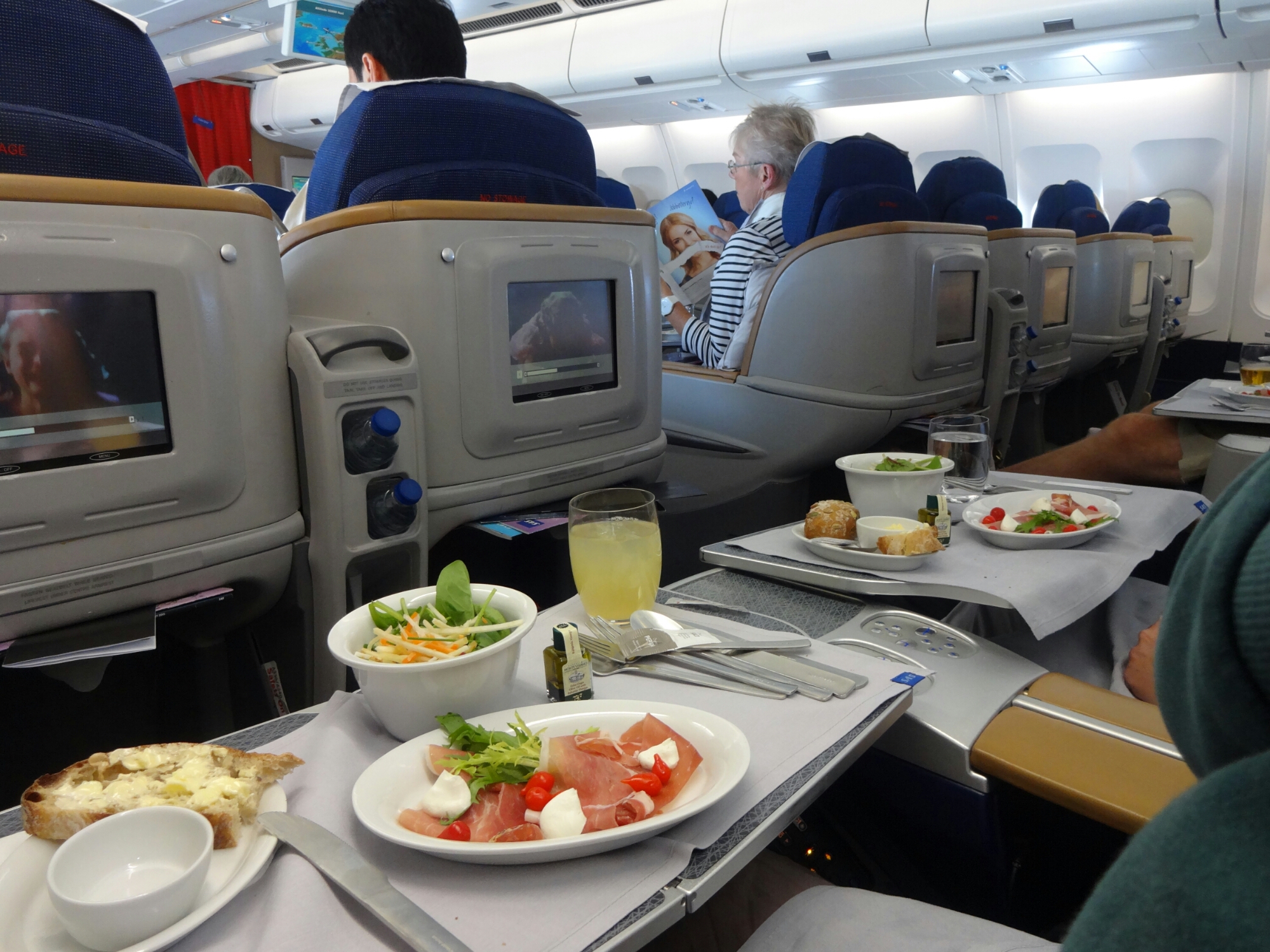 War auch mein erstes Mal in der Business Class. Man möchte danach nie mehr anders reisen… 😉 Essen war echt richtig lecker – und REICHLICH!