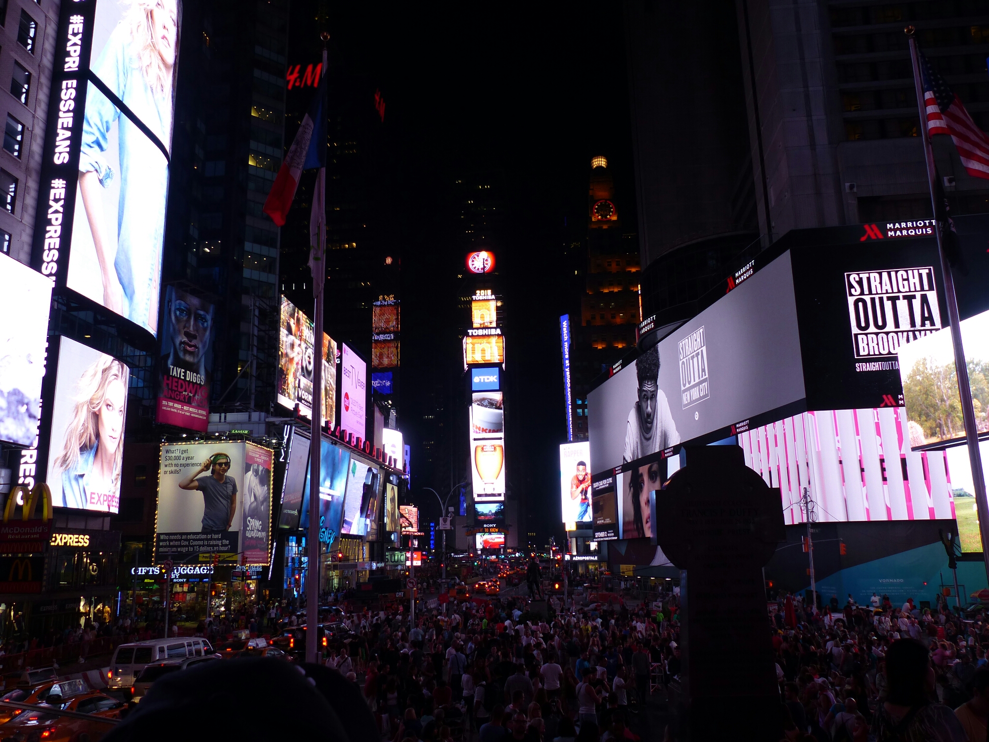 Es ist ja schon fies, dass wir auf dem Flug von Las Vegas nach New York drei Stunden verloren haben. So blieb uns für heute Abend nur ein Spaziergang zum Times Square. My goodness, what a huge crowd of tourists (and yellow cabs… and Uber taxis, probably, which I saw in San Francisco, too)!