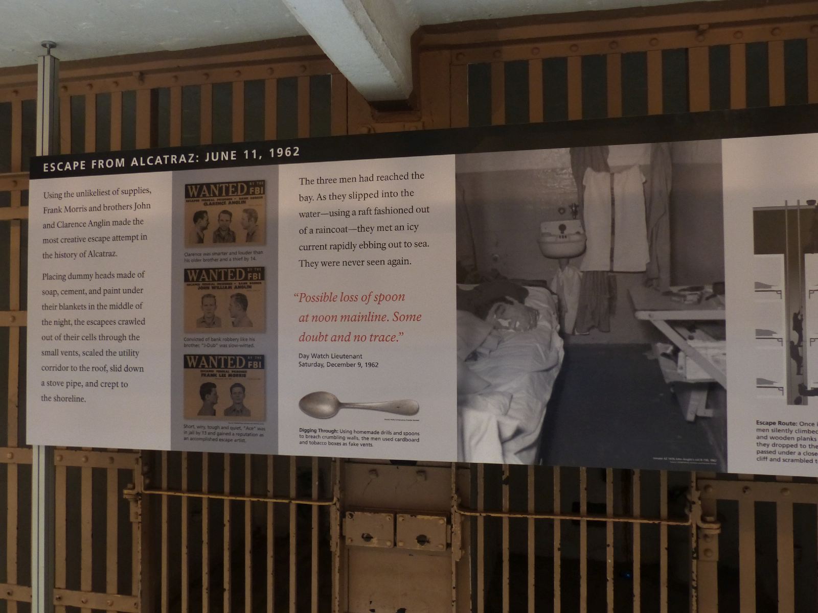 Abgesehen von ein paar missglückten Ausbruchversuchen und Aufständen, gab es auch einen, der u. U. geglückt ist – zumindest wurden die drei Entflohenen nie gefunden. Sie hatten sich mit Löffeln Gänge aus ihrer Zelle gegraben – an meinem Geburtstag (naja, ich weiß nicht mal, ob sich meine Eltern da schon kannten…).