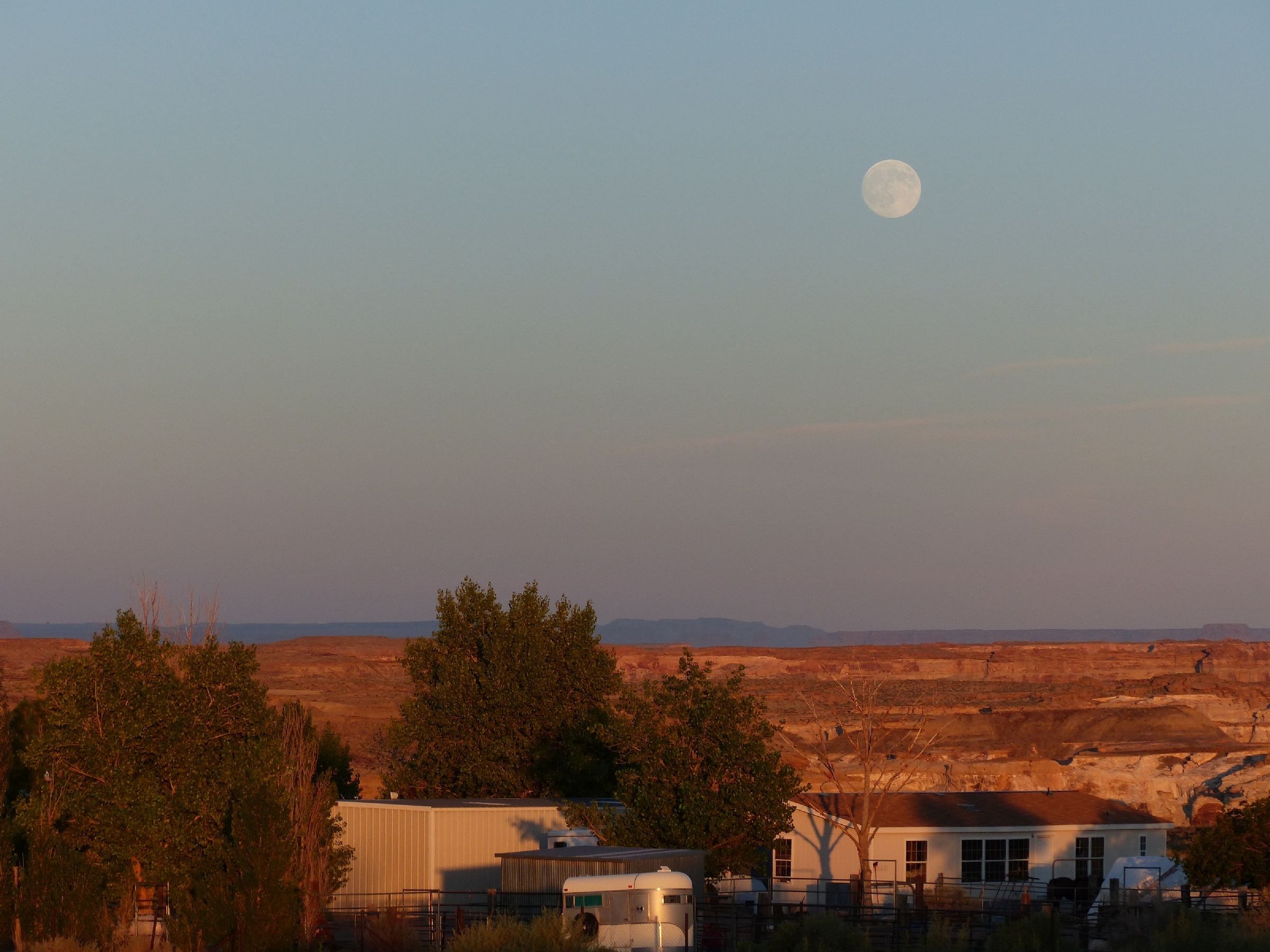 Zuletzt noch der Mond von der High Desert Lodge in Big Water aus gesehen (Nähe Glen Canyon Dam):