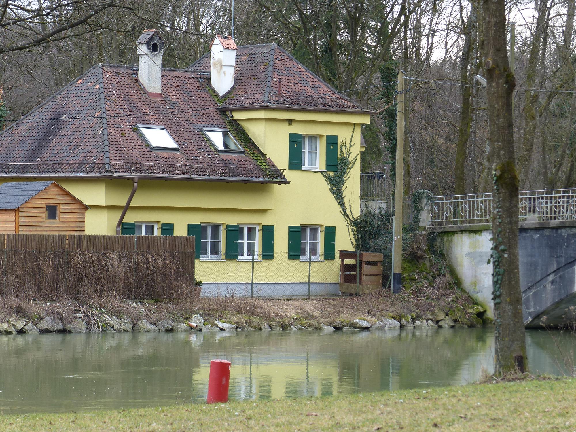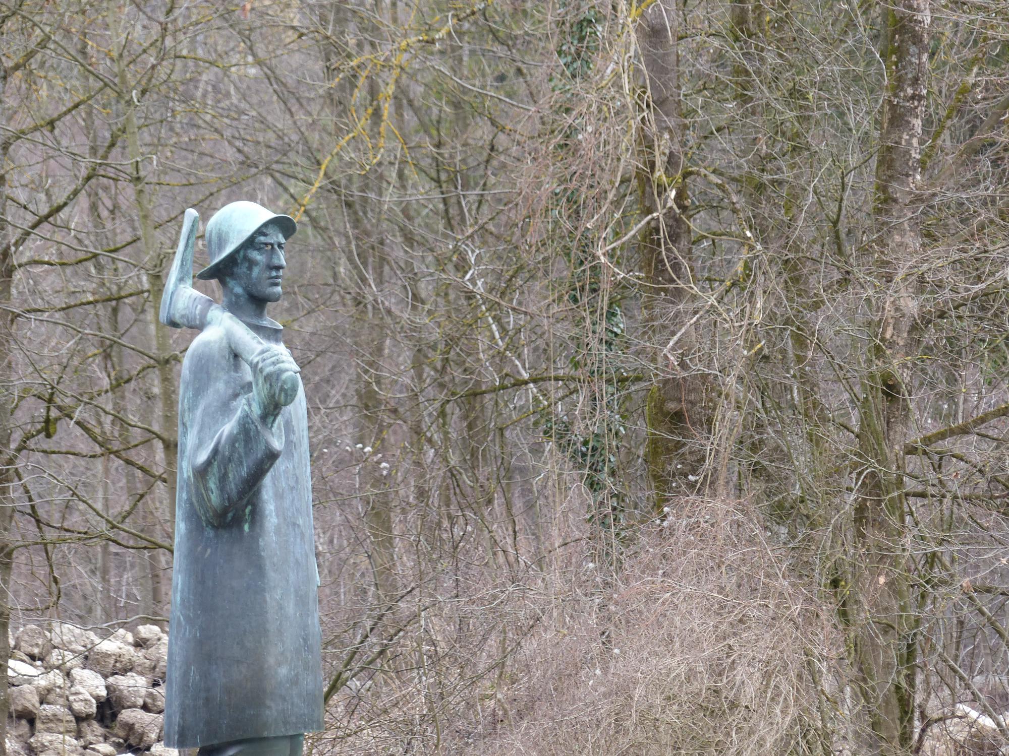 Nach einem gut bürgerlichen Mittagessen im Gasthof Hinterbrühl (Essenspreise und Portionen OK, Getränke selbst für Münchner Verhältnisse teuer) am Hinterbrühler See bot sich ein Spaziergang an der Isar an. Dazu gingen wir entlang des Floßkanals Richtung Süden, vorbei am Flößerdenkmal: