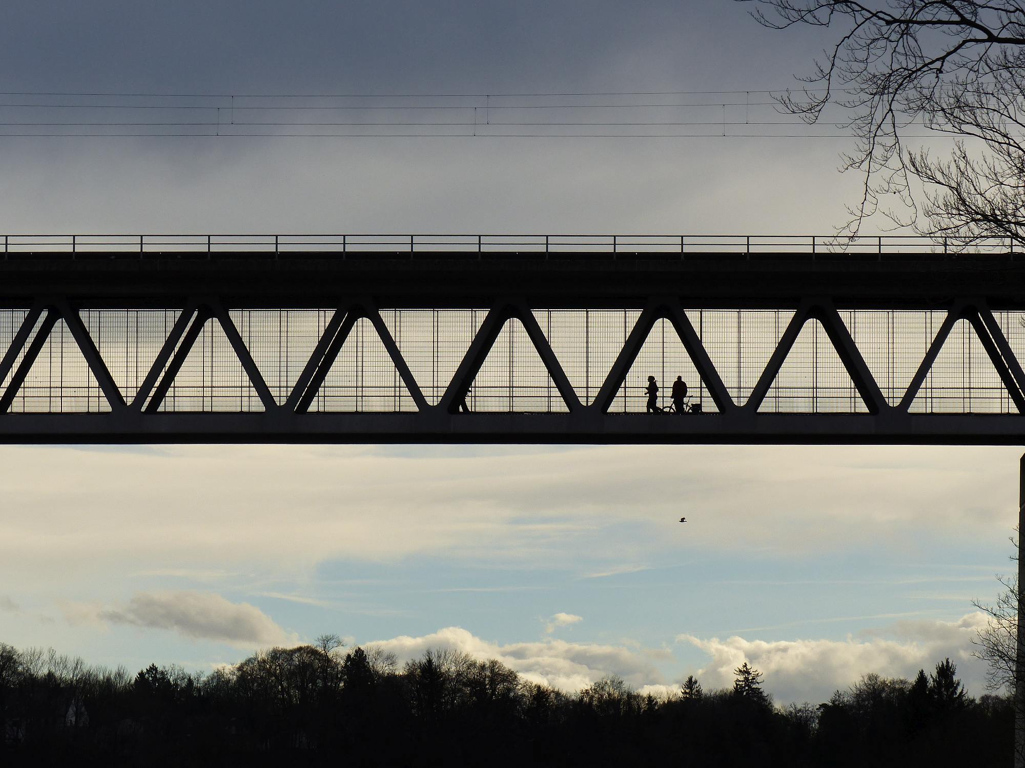 Die Großhesseloher Brücke (gebaut 1983-85) sah an diesem Tag irgendwie recht futuristisch aus: