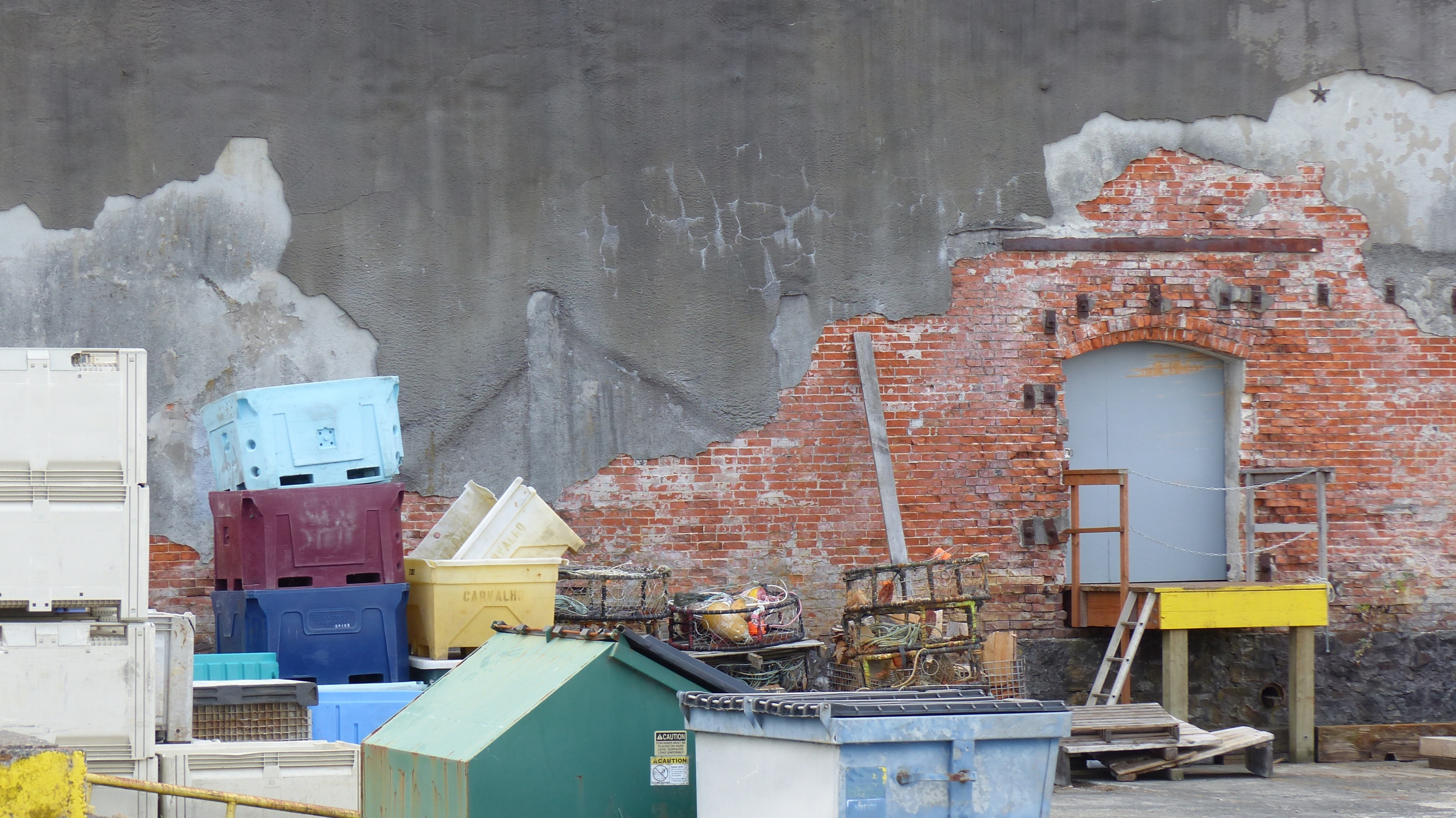 Wie schon die hübsch gestalteten Papierkörbe (siehe erstes Bild oben) zeigen: Astoria lebt von der (Lachs-)Fischerei. Fischkutter direkt habe ich zwar keine gesehen, aber durchaus so allerlei Zubehör: