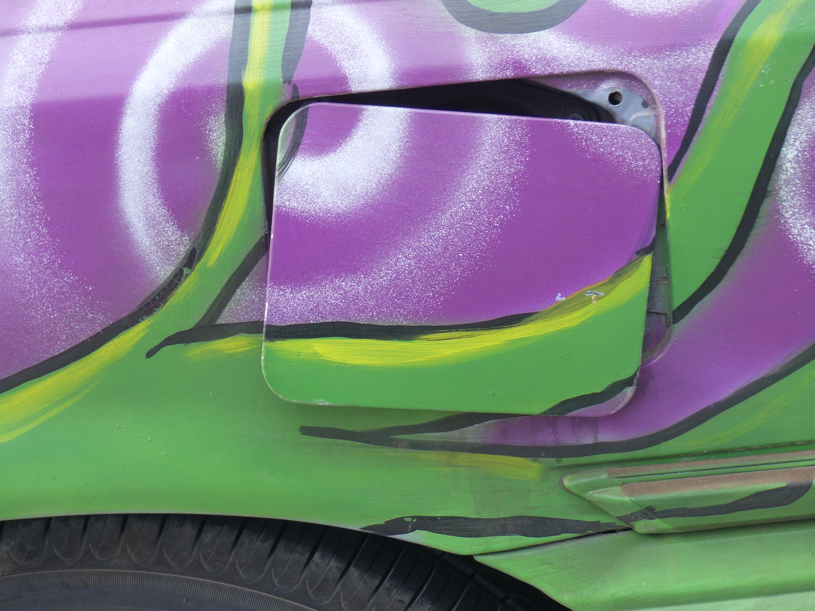 Hach, irgendwie erinnert es mich daran, dass wir unseren VW Käfer damals bemalt haben. Nicht ganz so auffällig, aber immerhin…