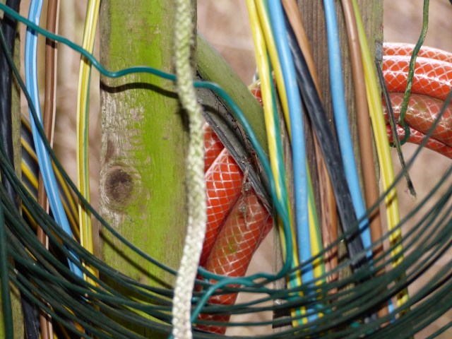 Das folgende Motiv habe ich beim Rundgang um mein Elternhaus entdeckt. Ich mag es schon allein wegen der verschiedenen Farben, Formen und Materialien.
