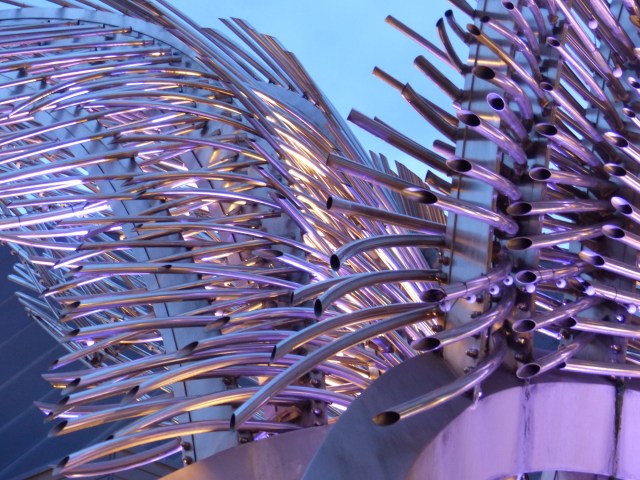 Irgendwie passend zu dem, was ich heute Abend auf DVD geguckt habe (Supernatural, Season 11, Episode 10)… Es handelt sich um ein Detail der „Angel Wings“ bei The Angel, Islington (London), aufgenommen kurz vor Einbruch der Dunkelheit (die Flügel werden angestrahlt).