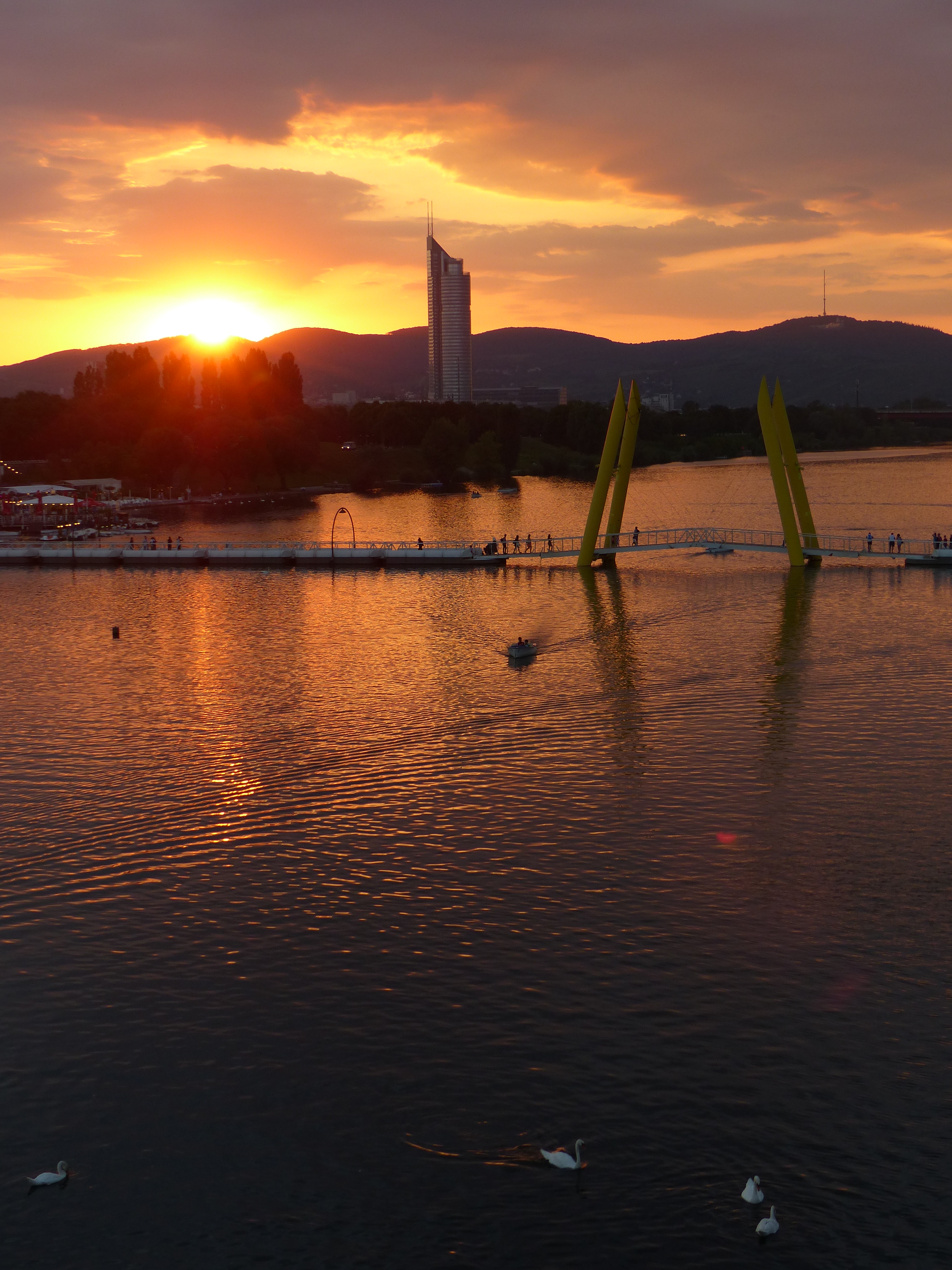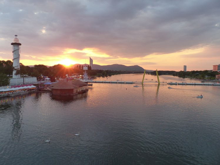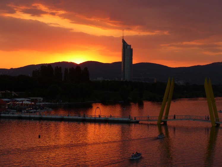 Sonnenuntergang von der U-Bahn-Station Donauinsel aus: