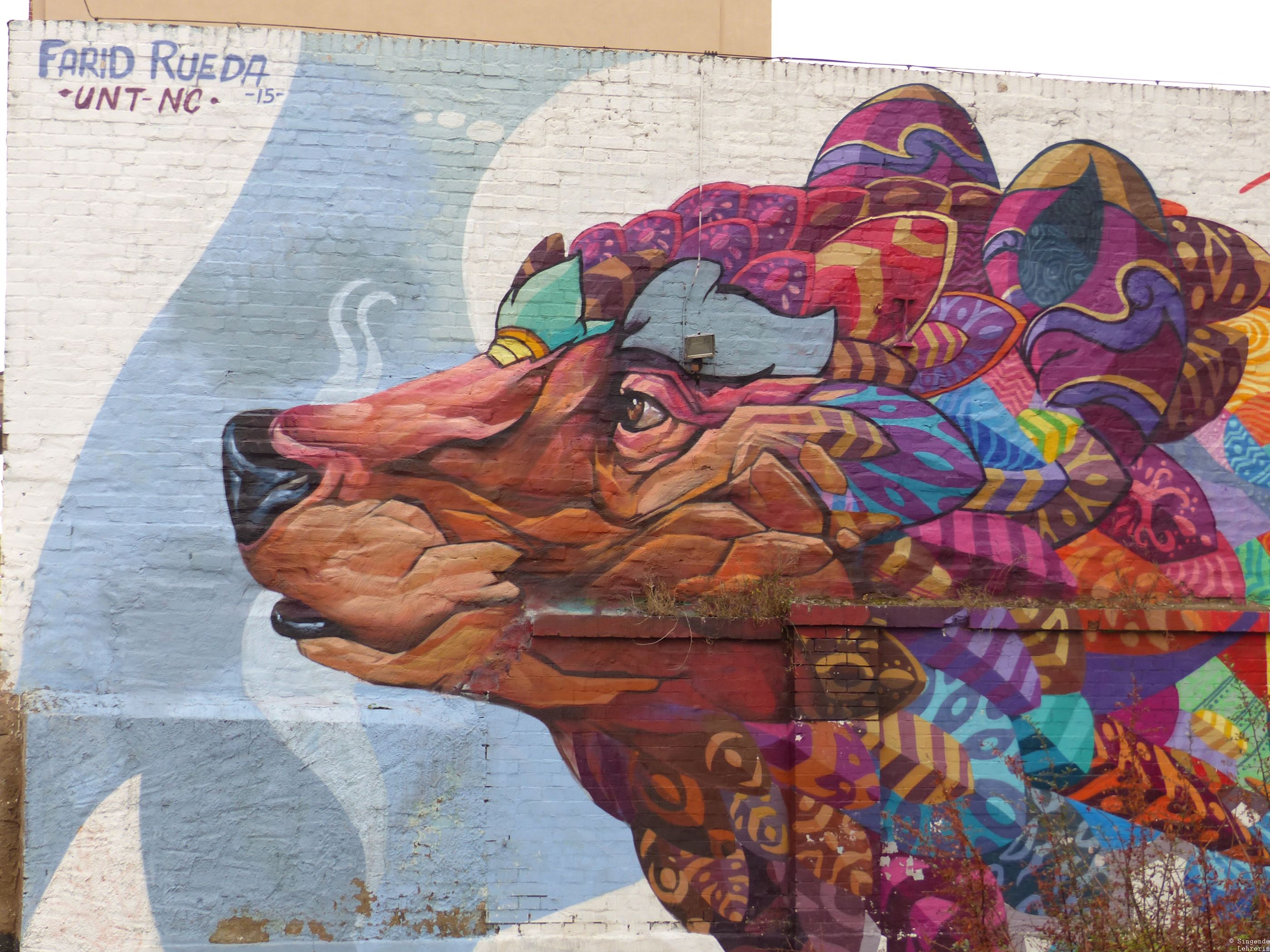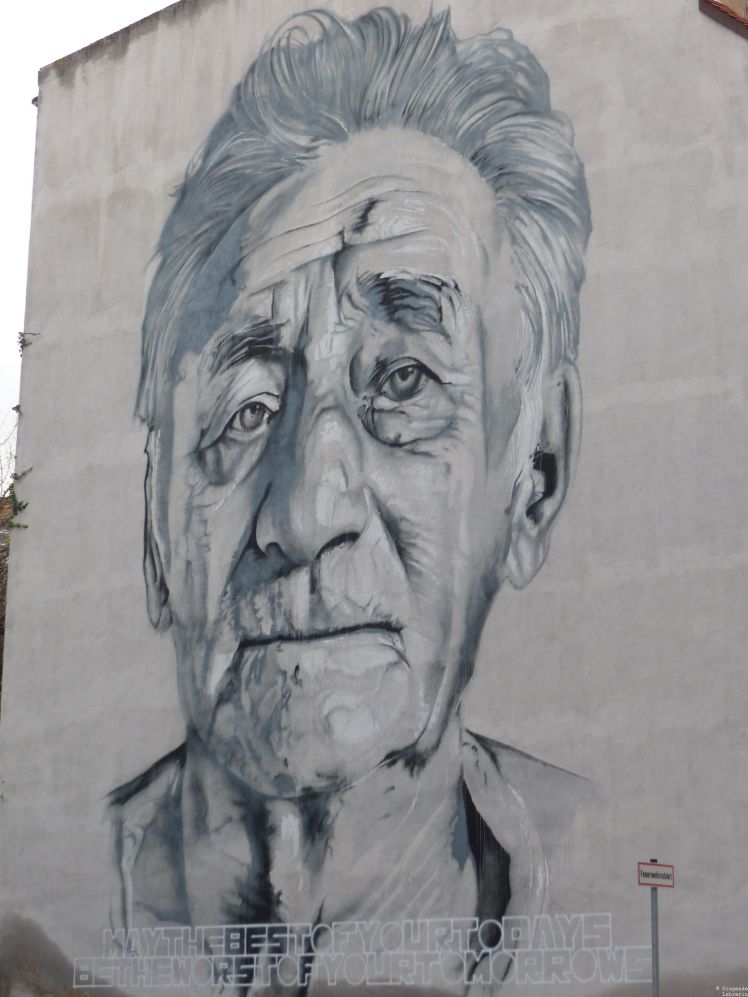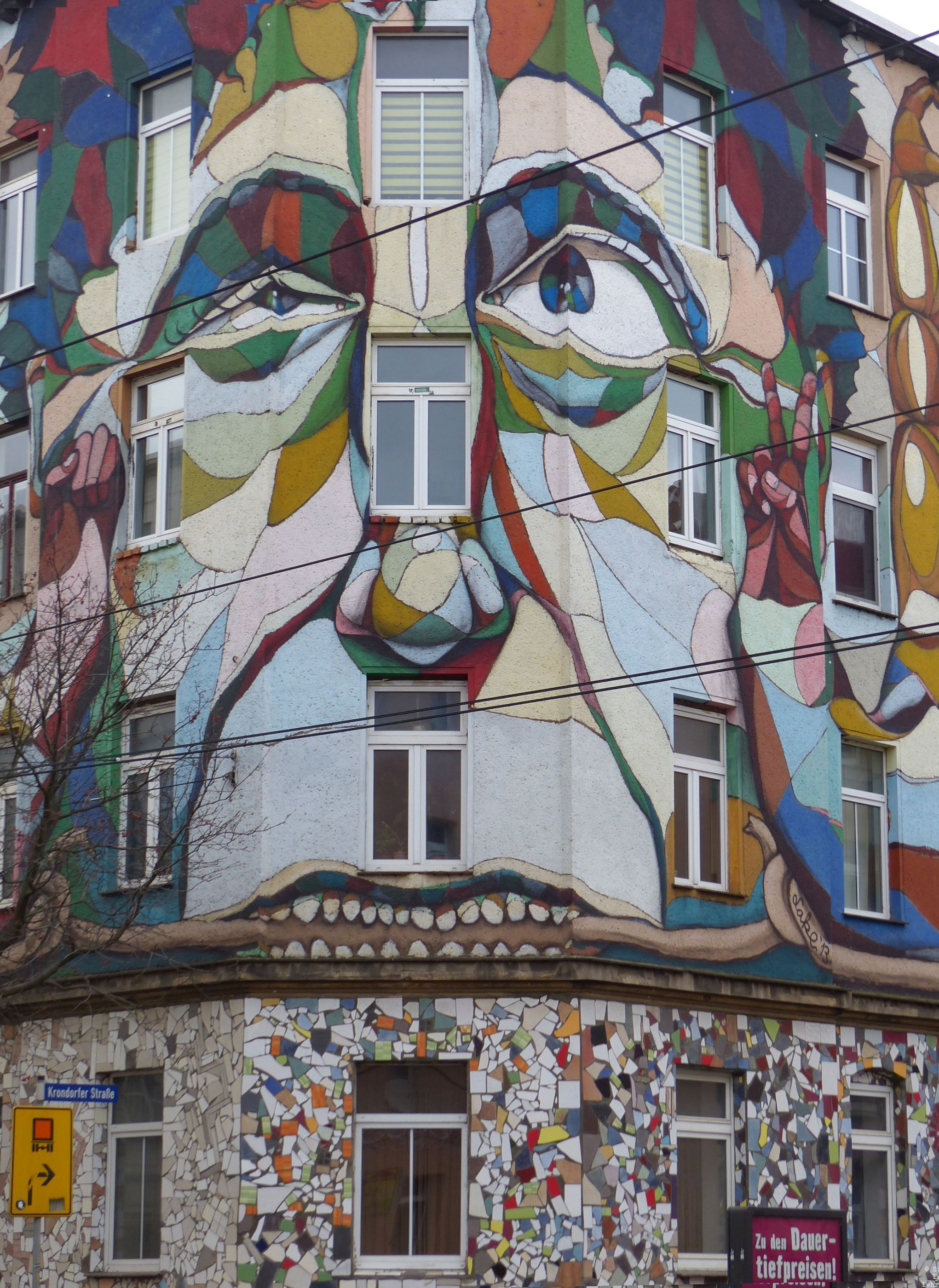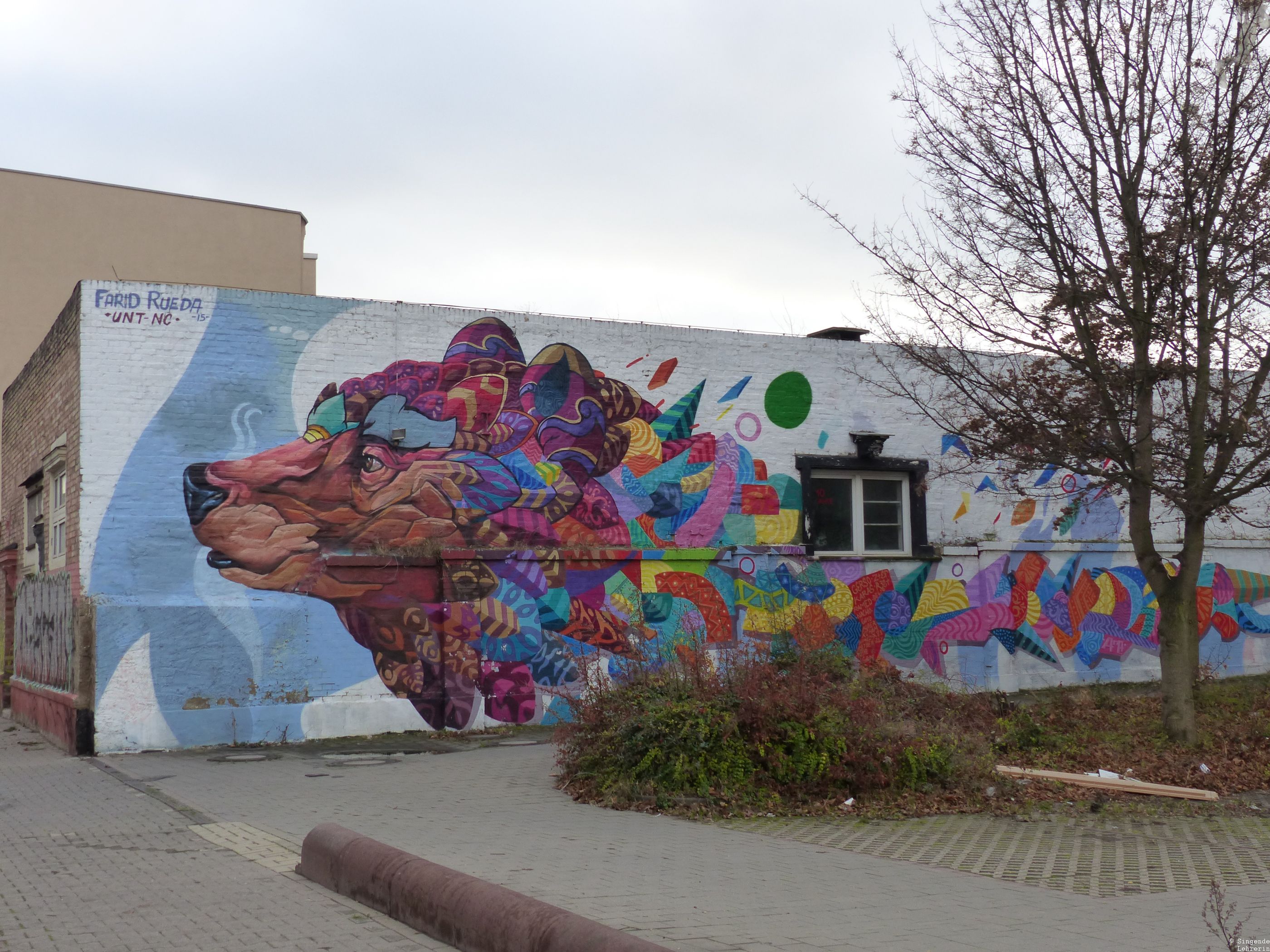 hat mich DerStepnwolf durch ein Viertel geführt, in dem es von riesigen Wandgemälden auf Häuserwänden und ähnlichem nur so wimmelte. Ich konnte meine Begeisterung – und meine Kamera – kaum in Zaum halten! ❤ Leider hatte sich die Sonne hinter Wolken verzogen, mit ihr wären die Farben auf manchen Gebäuden wohl noch knalliger geworden. Trotzdem: Viel Spaß!