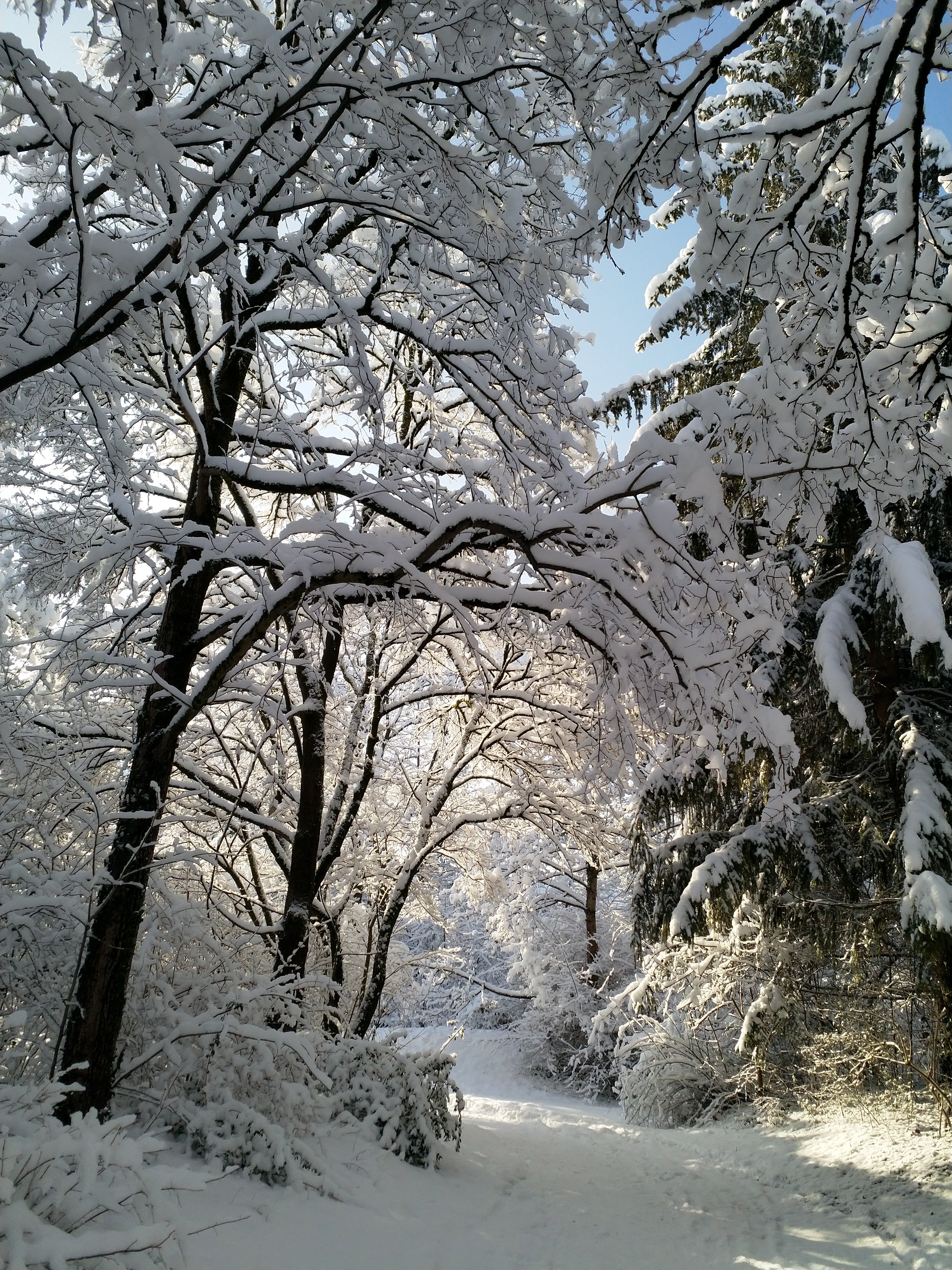 Ich liebe schneebedeckte Bäume in der Wintersonne, so schön!