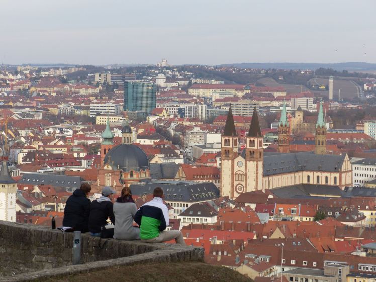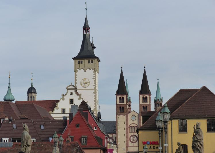 Würzburg wurde zu 90 % durch die Bombardierungen am Ende des Zweiten Weltkriegs zerstört. Trotzdem wirkt die Stadt durch ihre vielen Kirchtürme und ähnliches recht „mittelalterlich“. Zum Teil hat sie mich sehr stark an Prag erinnert…