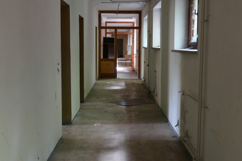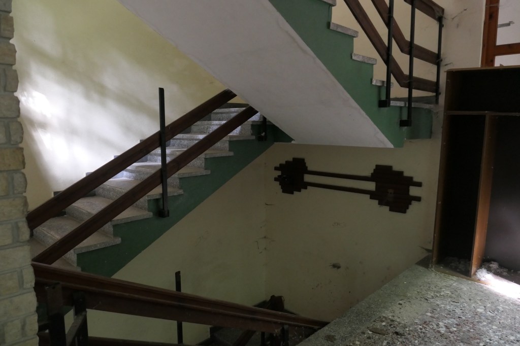 Da unsere Fototour etwas dadurch behindert wurde, dass im Hauptbau alles für eine Art „Tag der Offenen Tür“ vorbereitet wurde, und so z. B. der Große Speisesaal nicht „original“ aussah, durften wir noch in das Gästehaus – ein DDR-Bau mit Charme… oder so.