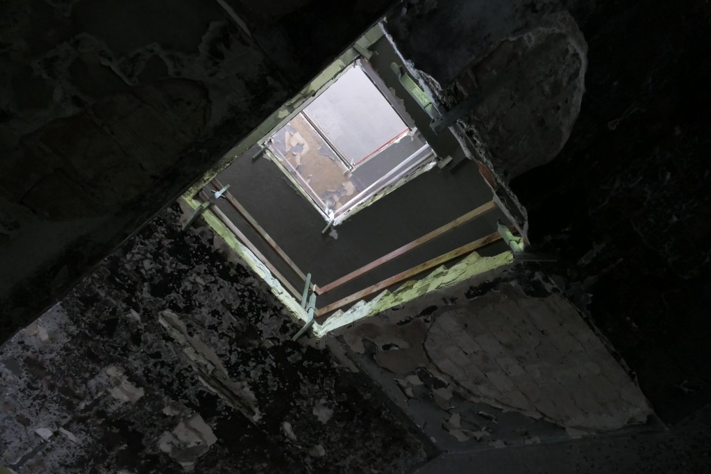 So sah dann der weitere Treppenaufgang von unten nach oben fotografiert aus: