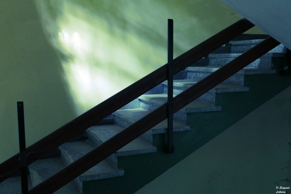 Die folgende Treppe gefällt mir am besten in der „Dynamisch-Monochrom“-Einstellung, die ich für den Beitrag über die Treppenhäuser und Gänge herausgesucht hatte: