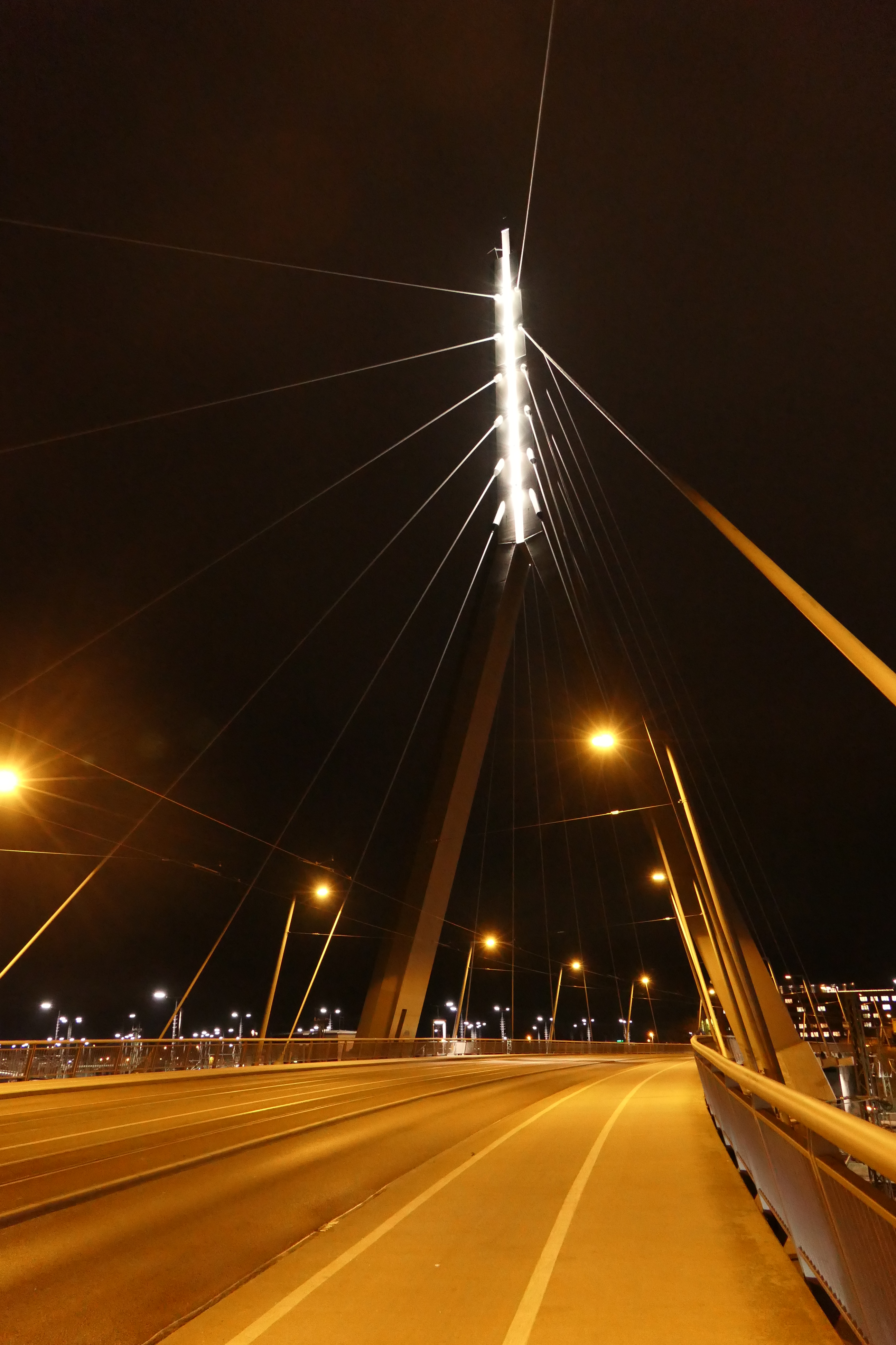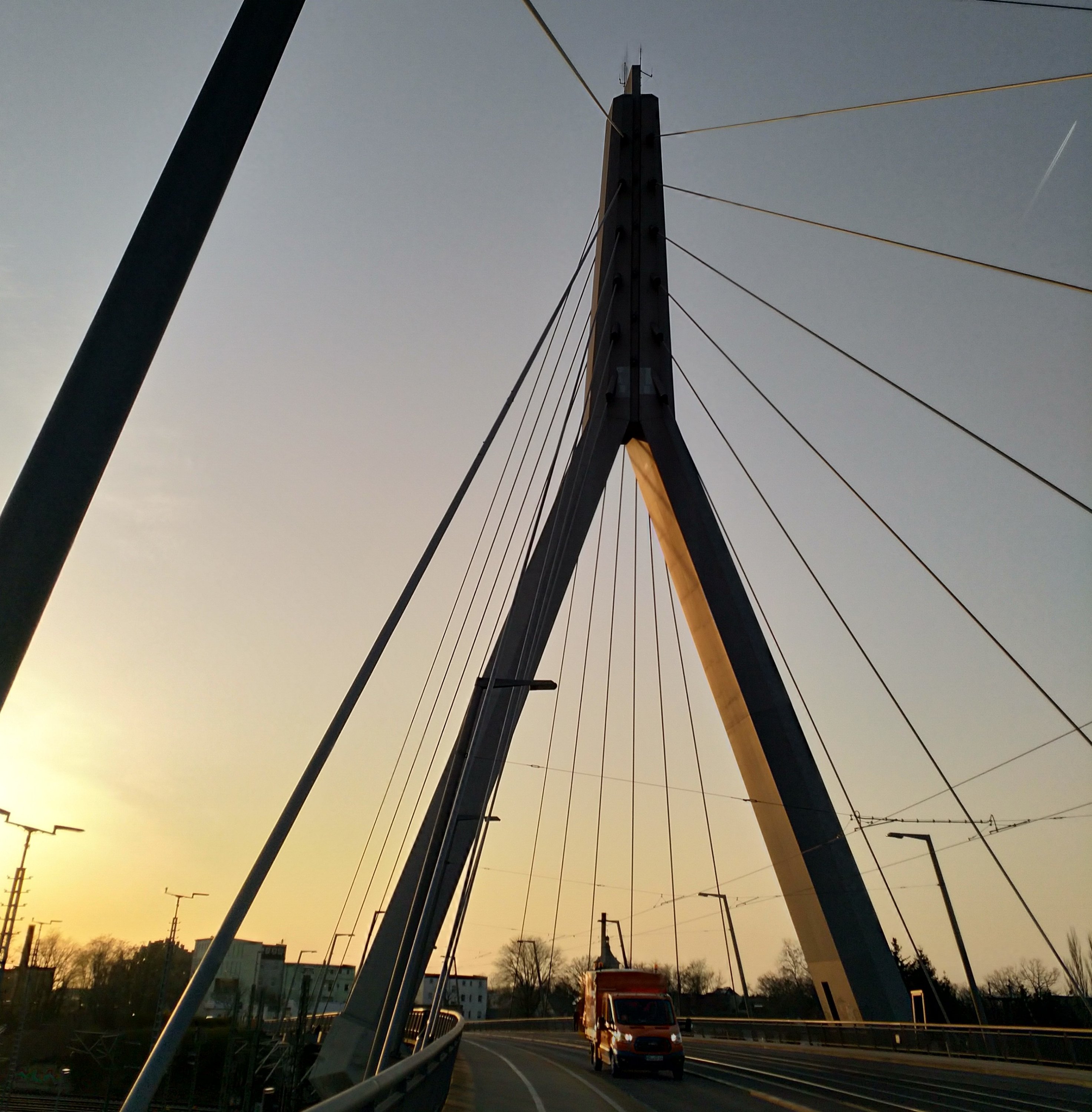 Die Berliner Brücke in Halle (Saale): Es war Liebe auf den ersten Blick. Immer wieder wähle ich Routen für meine Spaziergänge, die mich über diese 15-Jahre-alte Schrägseilbrücke führen – und wenn ich nur meinen Freund von der Arbeit abhole. Ich kann mich an der Brücke einfach nicht sattsehen – die Kombination aus dem 73 Meter hohen, gewaltig wirkenden Pylonen und den aus der Ferne dagegen filigran wirkenden Seilen fasziniert mich immer wieder. Als wir in Halle im Kino saßen und am Anfang des Filmes Der Geburtstag (ein „Familiendrama-meets-Film-Noir“ von Carlos A. Morelli) der Protagonist mit dem Auto über die Berliner Brücke fuhr, habe ich mich gefreut wie ein Kind. ❤