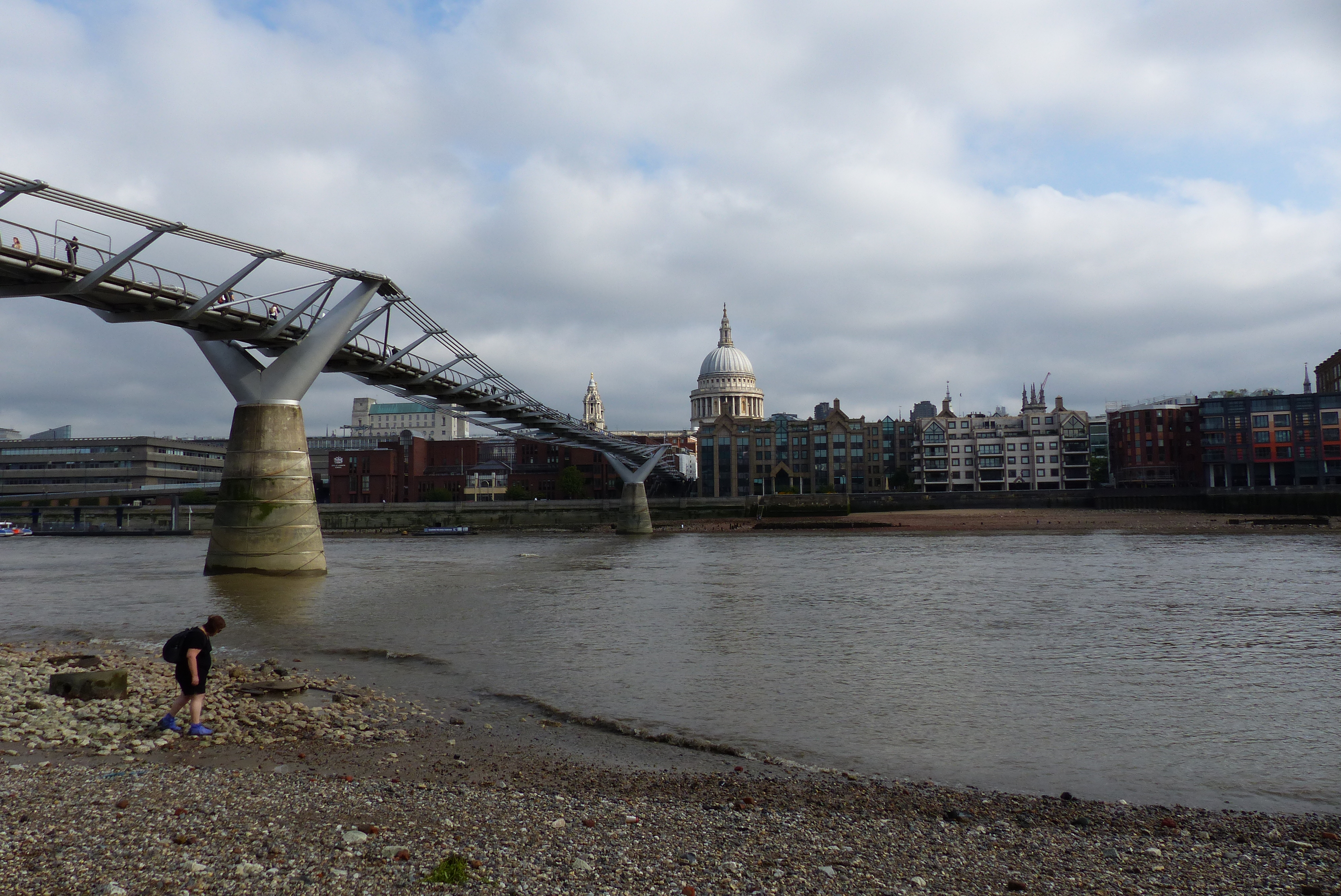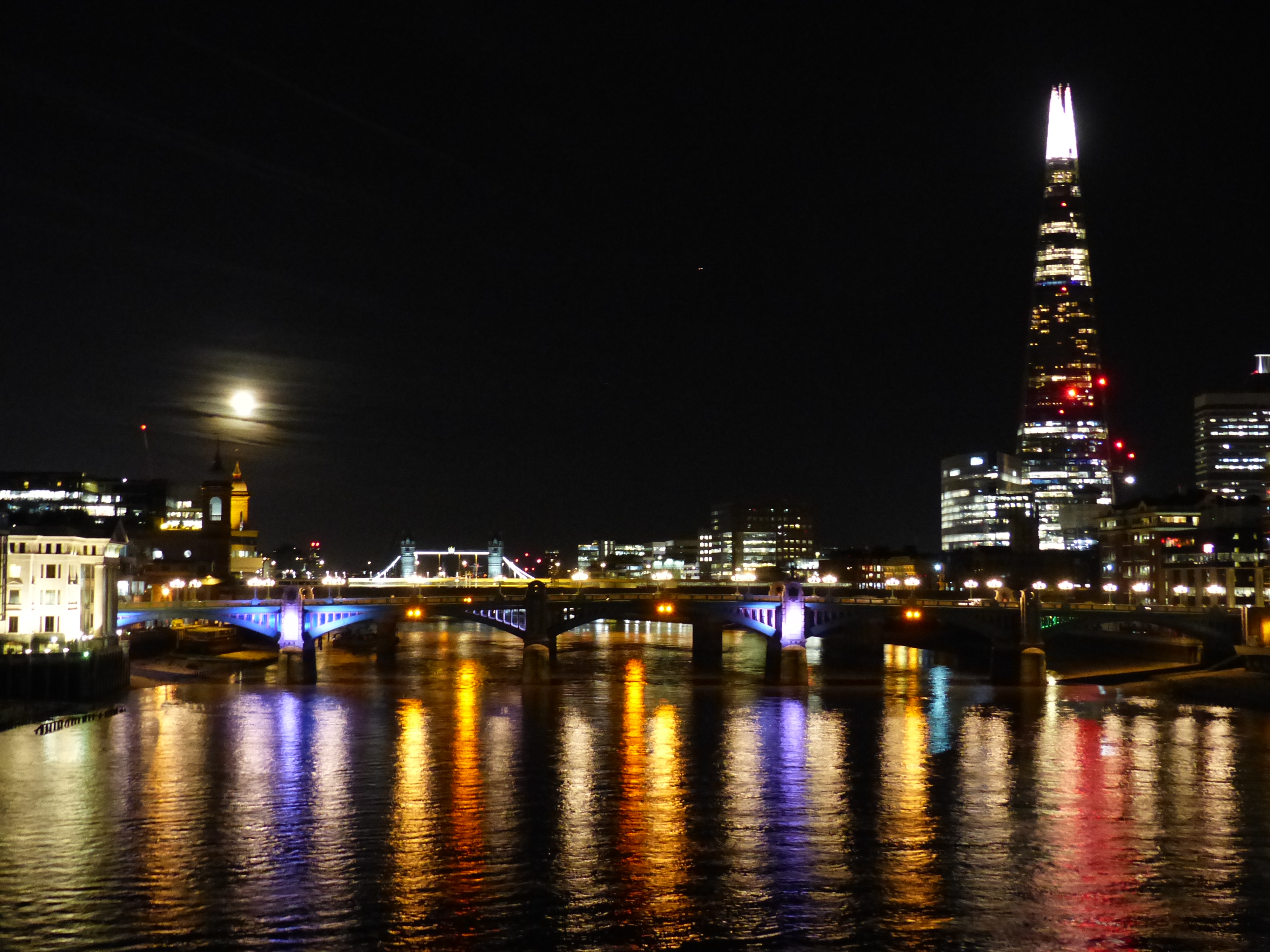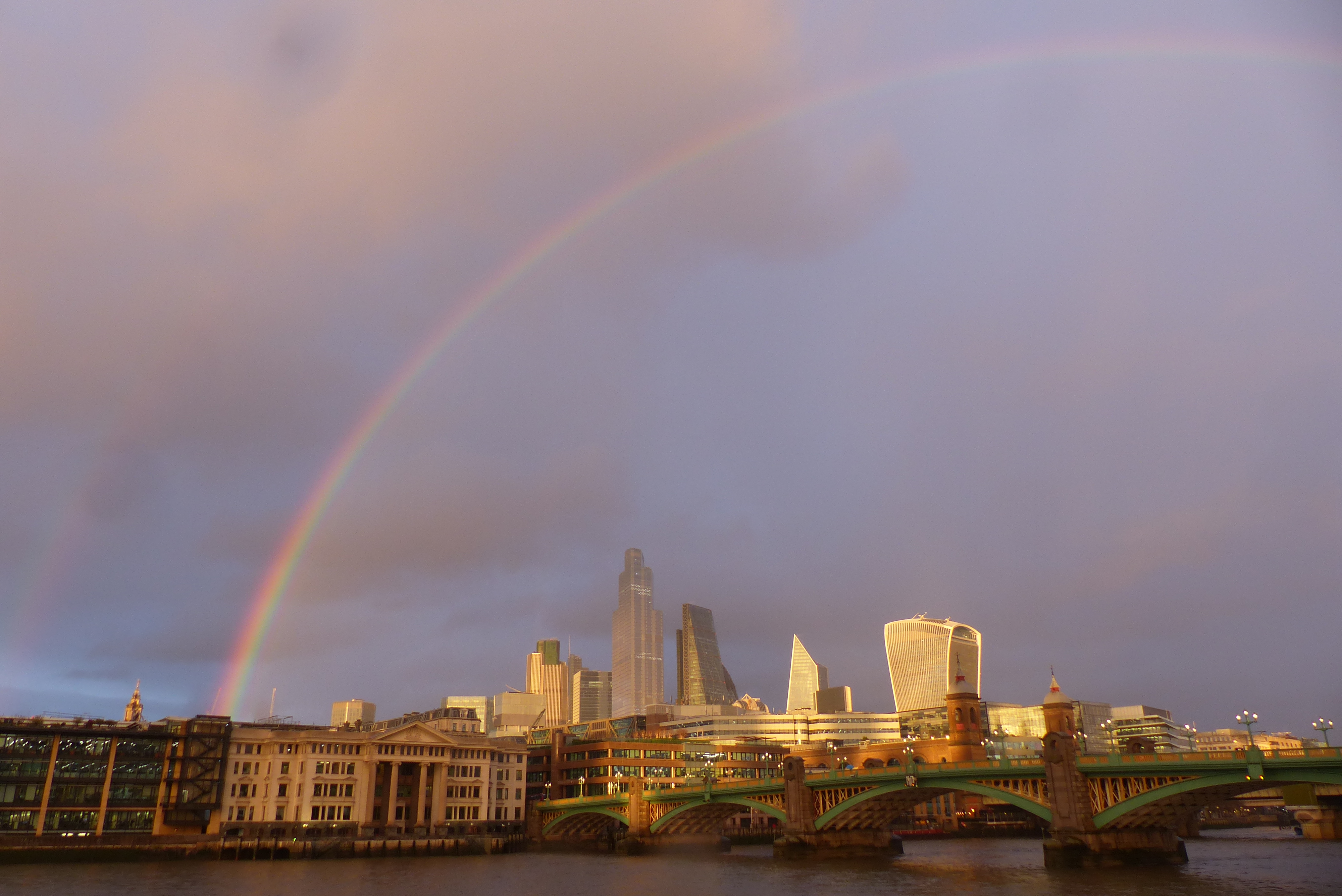 Dabei hat es mir insbesondere das südliche Ufer – die South Bank – angetan, vorbei am National Theatre, an der Tate Modern – dort auf jeden Fall auf die Millennium Bridge gehen – , dann das Globe Theatre… So geht es weiter bis zum Bridge Theatre und zur Tower Bridge. OK, ich schaffe nicht immer auf einmal die ganze Länge, manchmal muss ich auch stückeln. Als ich 2019 zur Shakespeare Excursion in London war, bin ich außerdem das erste Mal im Flussbett der Themse (bei Ebbe) gelaufen und habe nach Relikten (Tonpfeifen) aus der Shakespeare-Zeit gesucht. Man nennt das Mudlarking. Die Themse mit ihren Ufern, an denen sich alte Gebäude mit modernen Glas-Hochhäusern vermischen ist am Tag schön und bei Nacht spektakulär. Unter anderem habe ich für euch einen Regenbogen (eigentlich war es sogar ein Doppelregenbogen) und den Vollmond mit im Gepäck… ❤ Mein Herz schmerzt ein wenig beim Anblick der Fotos, denn ich bezweifle es stark, dass ich noch in diesem Jahr wieder an der Themse entlang flanieren werde…