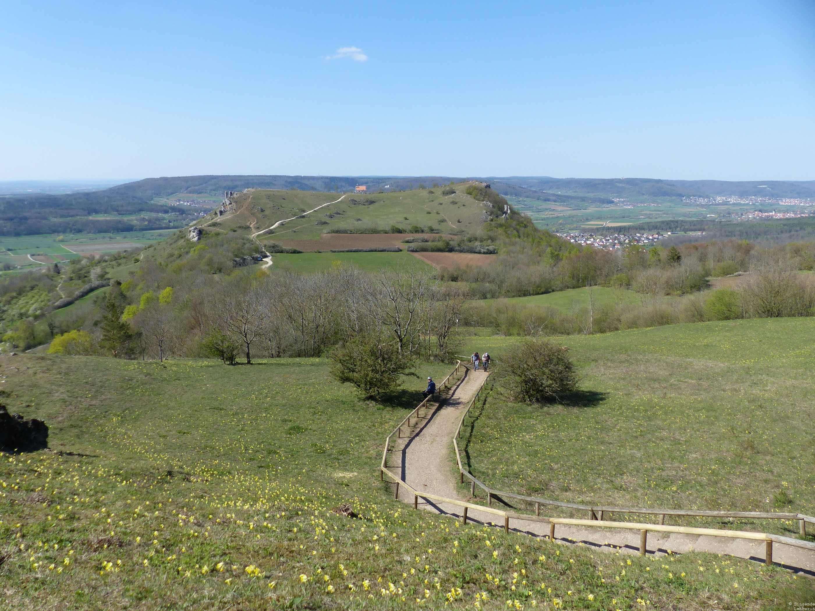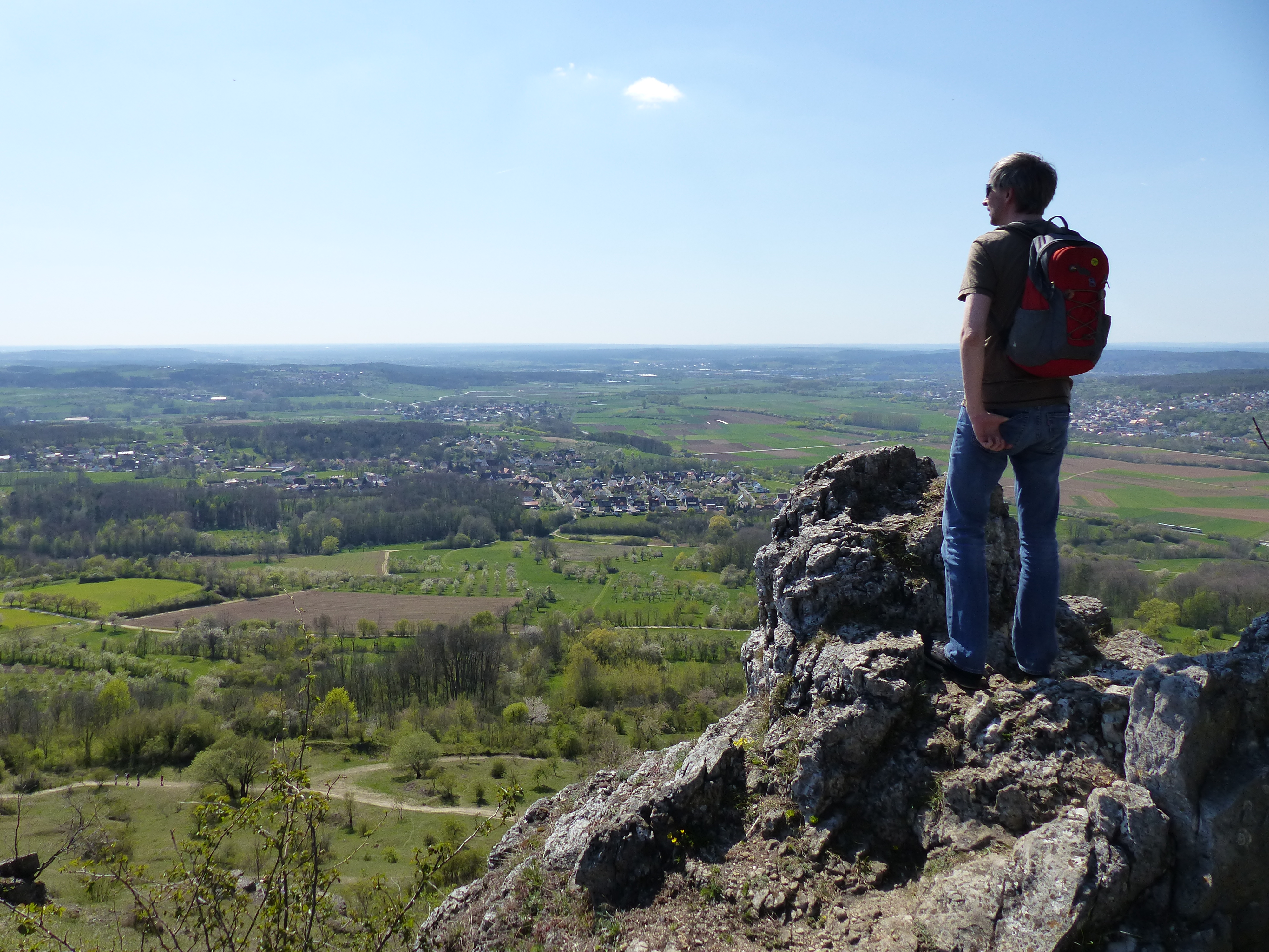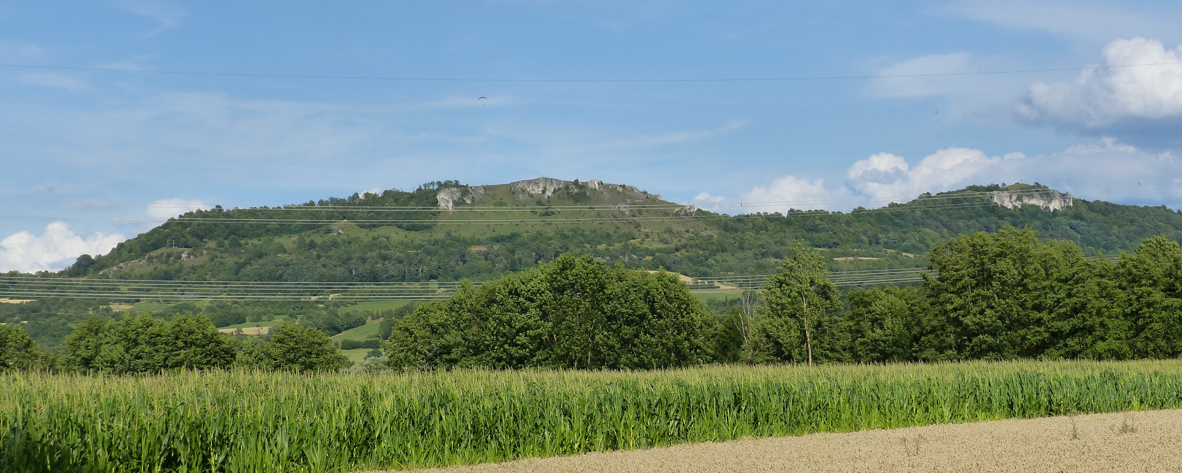 Eigentlich heißt die ganze Erhebung „Ehrenbürg“ und das „Walberla“ ist nur die nördliche Kuppel (im Bild oben links). Die südliche Kuppel trägt den Namen Rodenstein. Aber jede*r in meiner fränkischen Heimat nennt den ganzen Berg Walberla. Nun, vielleicht mit Ausnahme der Kletter*innen, für die der Rodenstein ein beliebter Treffpunkt zum Klettern ist. Auch von Gleitschirm- und Drachenflieger*innen wird das Walberla gerne genutzt – wer genau hinschaut, kann auf dem Foto oben auch einen erkennen. Die Geschichte des Walberla geht bis in die Jungsteinzeit zurück, aus der im Bergsattel entsprechende Keramikscherben und Steingeräte gefunden wurden.