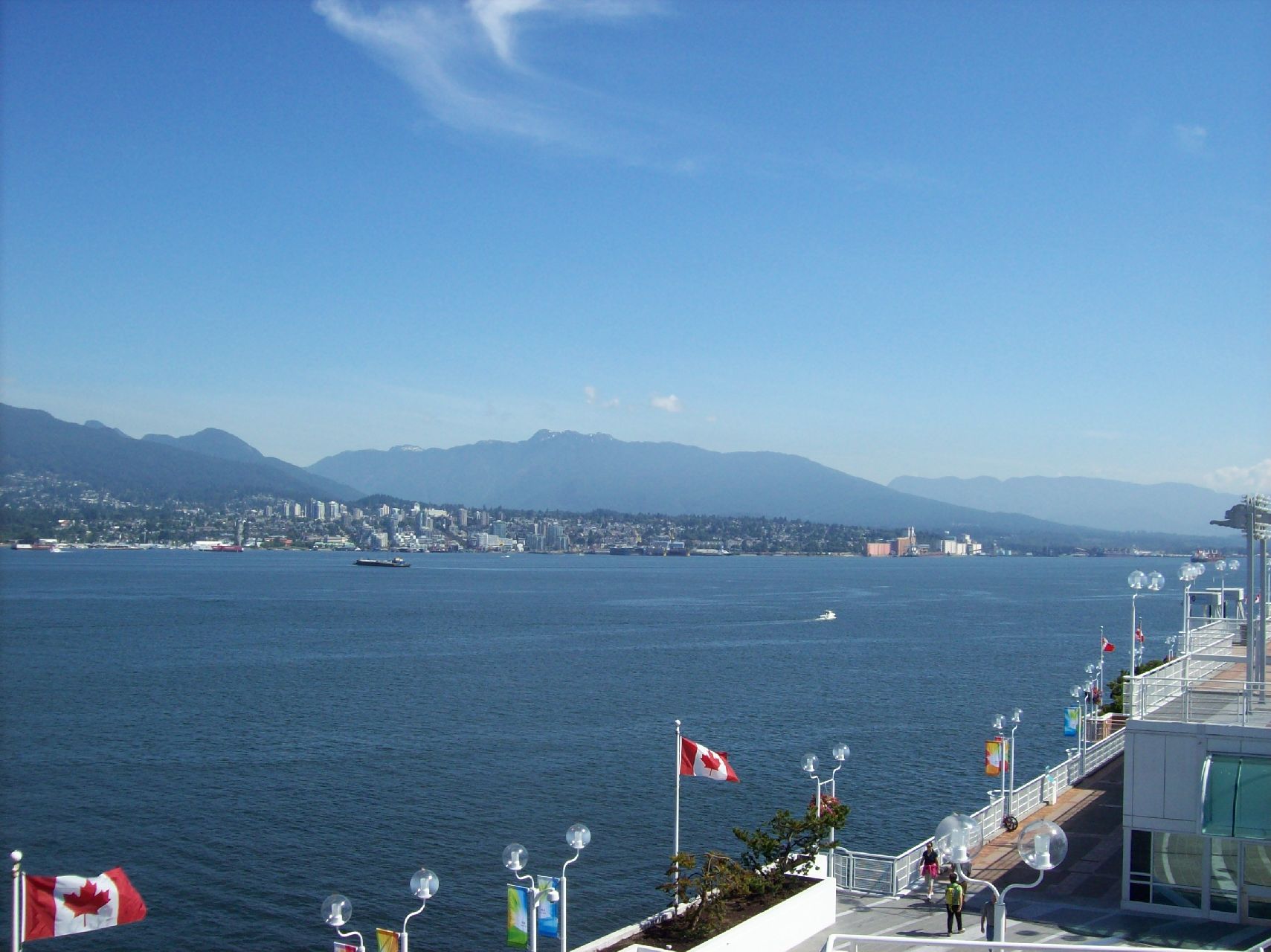 Nun, dafür zeige ich euch heute einen Ort aus der kanadischen Stadt Vancouver, die ich 2011 zusammen mit Ruth besucht habe. Wir waren nur relativ kurz in Vancouver, auch weil Ruth nicht so eine Freundin von Großstädten war, und so gibt es bei einem weiteren Besuch sicher noch viel mehr zu entdecken, aber eine erste Anlaufstelle damals war Canada Place, von dem aus man einen tollen Blick auf Downtown Vancouver, auf die Straße von Georgia (Strait of Georgia), das Ufer gegenüber und die Berge im Umland hat.