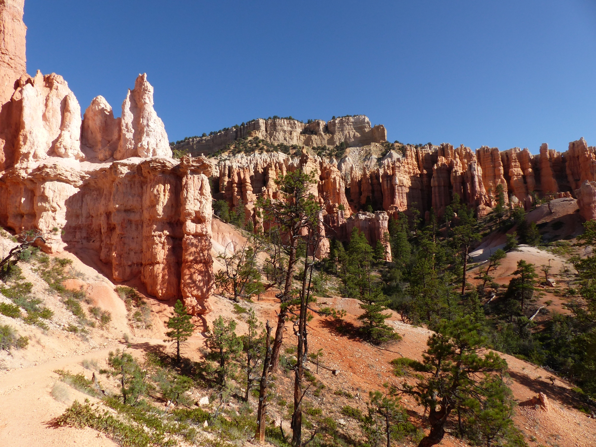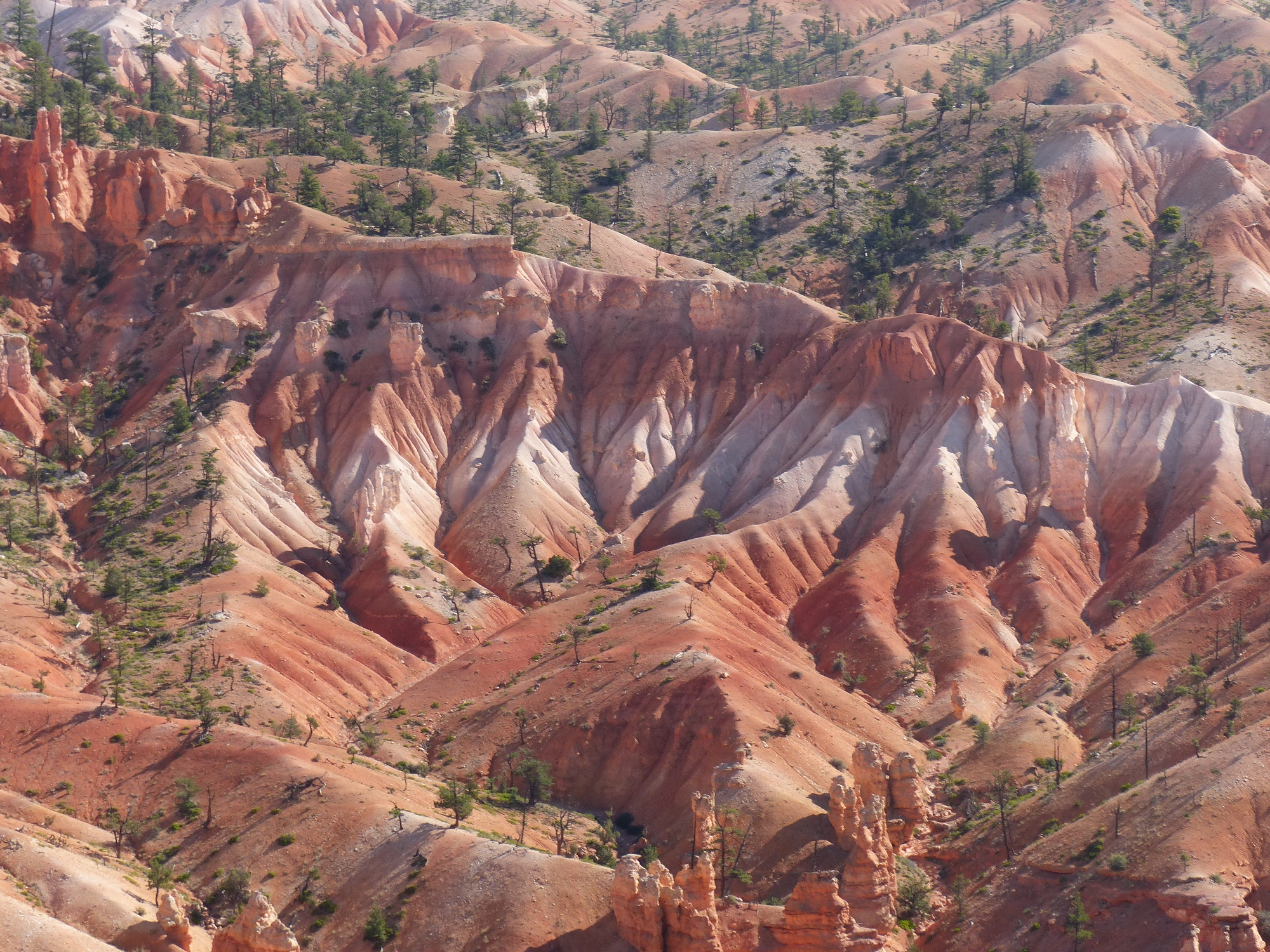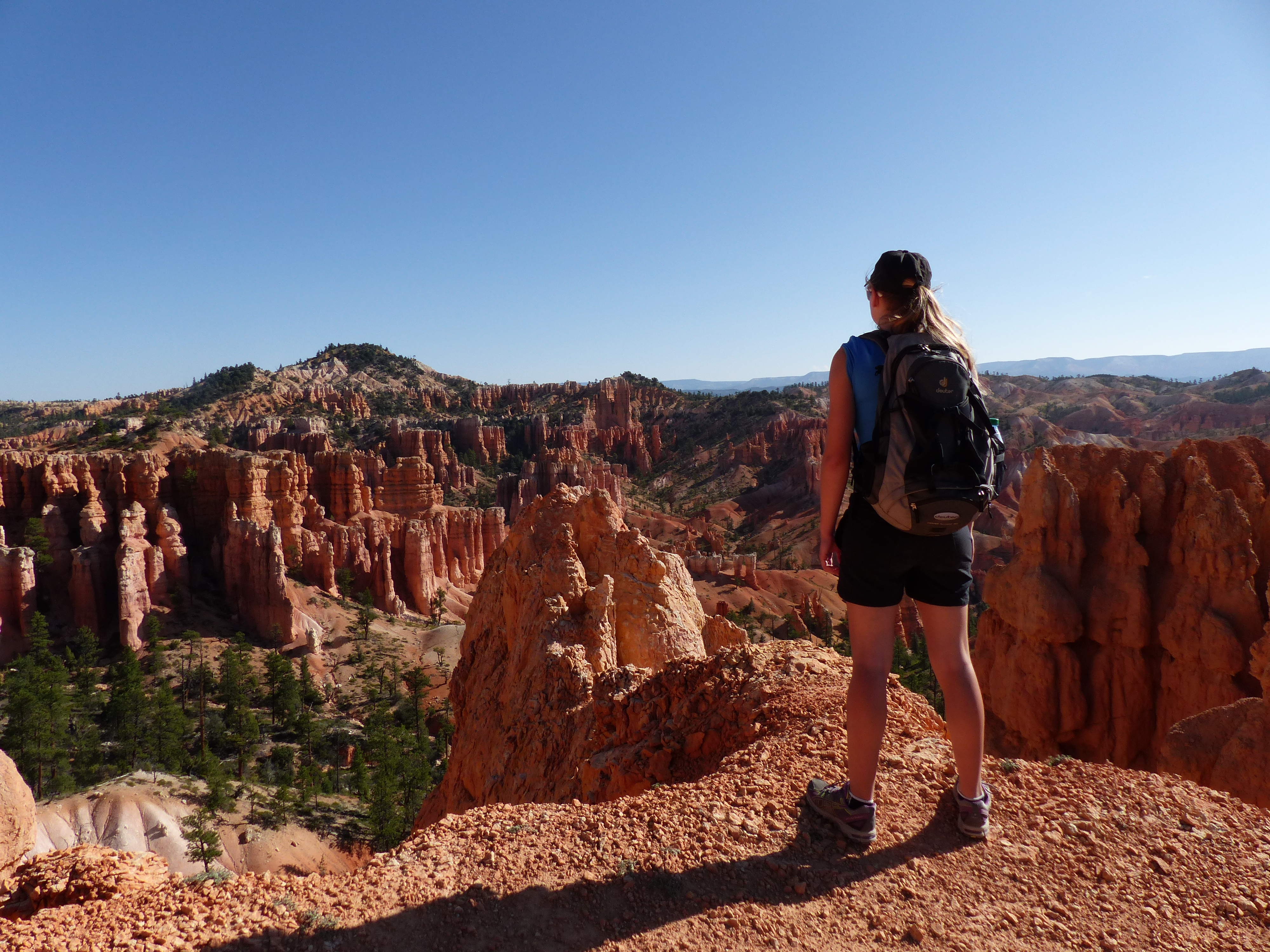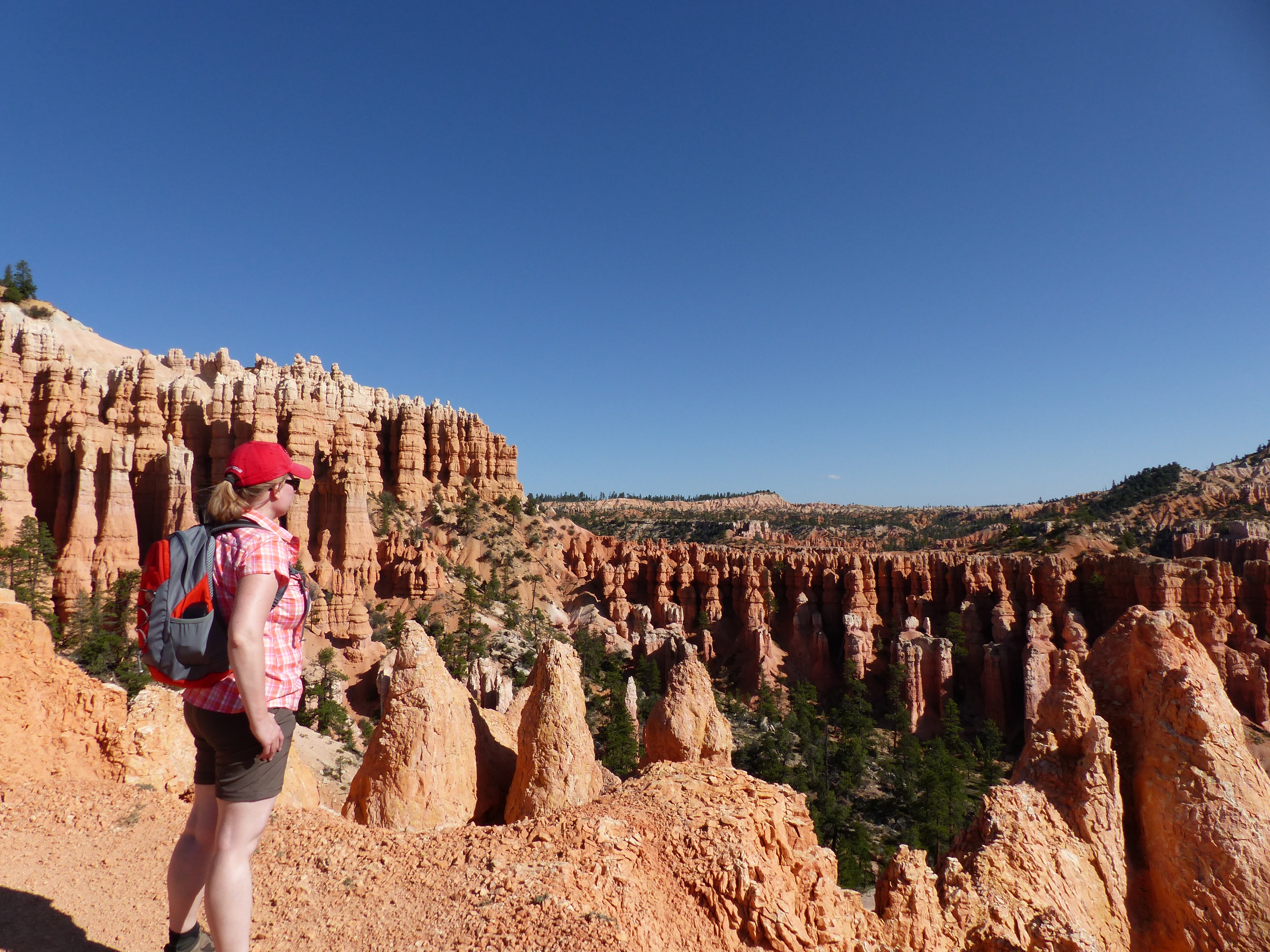 Ich habe mir immer vorgestellt, wie Gott (oder wahlweise Slartibartfast) in seinem Sandkasten mit Wasser und Sand diese Türmchen geformt hat – so wie wir das früher am Meer getan haben. Es ist einfach unfassbar, welch eine Variation an Farben und Formen dieser National Park zu bieten hat. Dabei hatten wir damals nur einen kurzen Rundweg (ca. 1,3 Meilen) gewählt (im Bild rechts bin ich zu sehen), doch der hat gereicht, damit sich der Bryce Canyon einen festen Platz in meinem Herzen erobert hat.