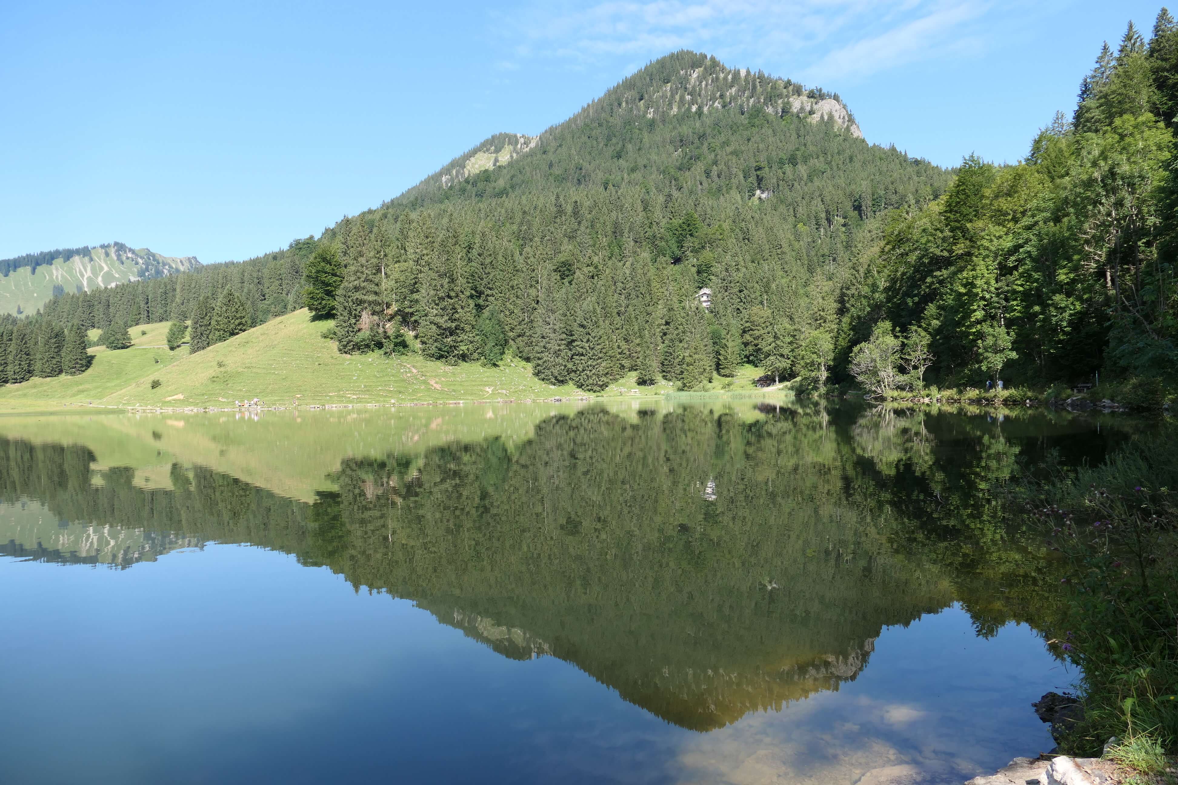 Zu Beginn unserer Runde lag der See so still zwischen den Bergen, dass es wunderbare Spiegelungen darin gab.