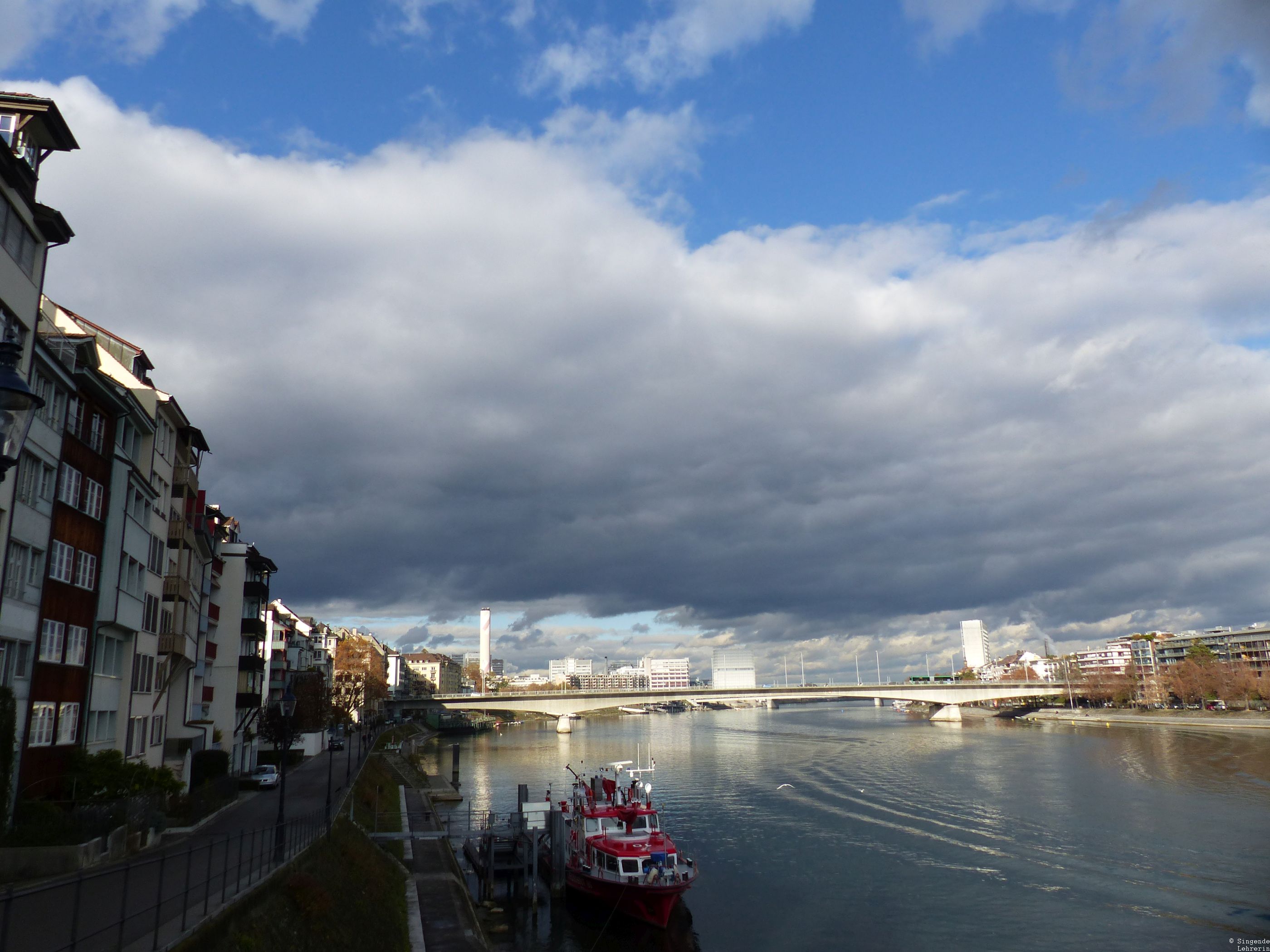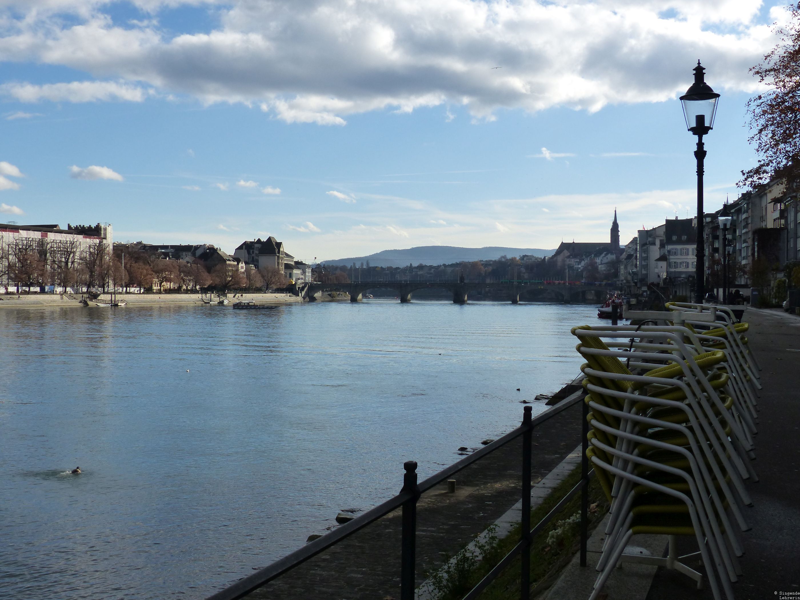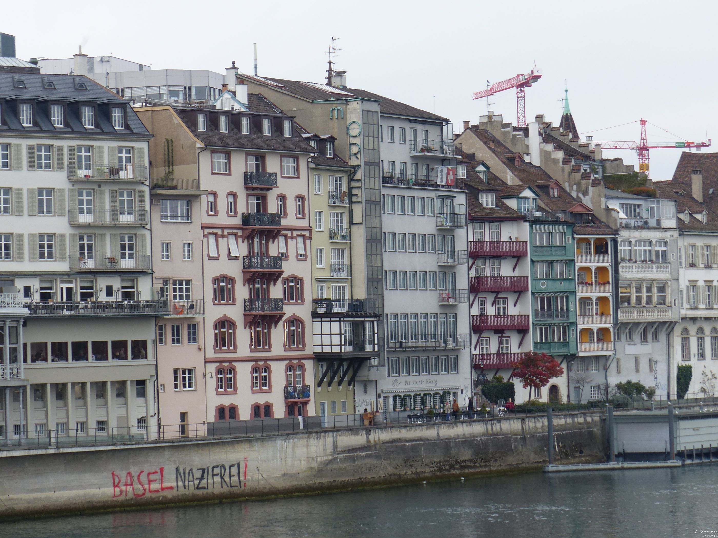 Und so ist mein heutiger Lieblingsort in Basel auch das Rheinufer. Die Fotos stammen von zwei Theatertrips, einmal im Spätherbst und einmal im Frühling. Immer wieder – oft mehrmals pro Aufenthalt – zog es uns an den Rhein. Vor allem (aber nicht nur) die eng an eng gebauten und dabei so individuell gestalteten Häuser an beiden Rheinufern haben es mir angetan.