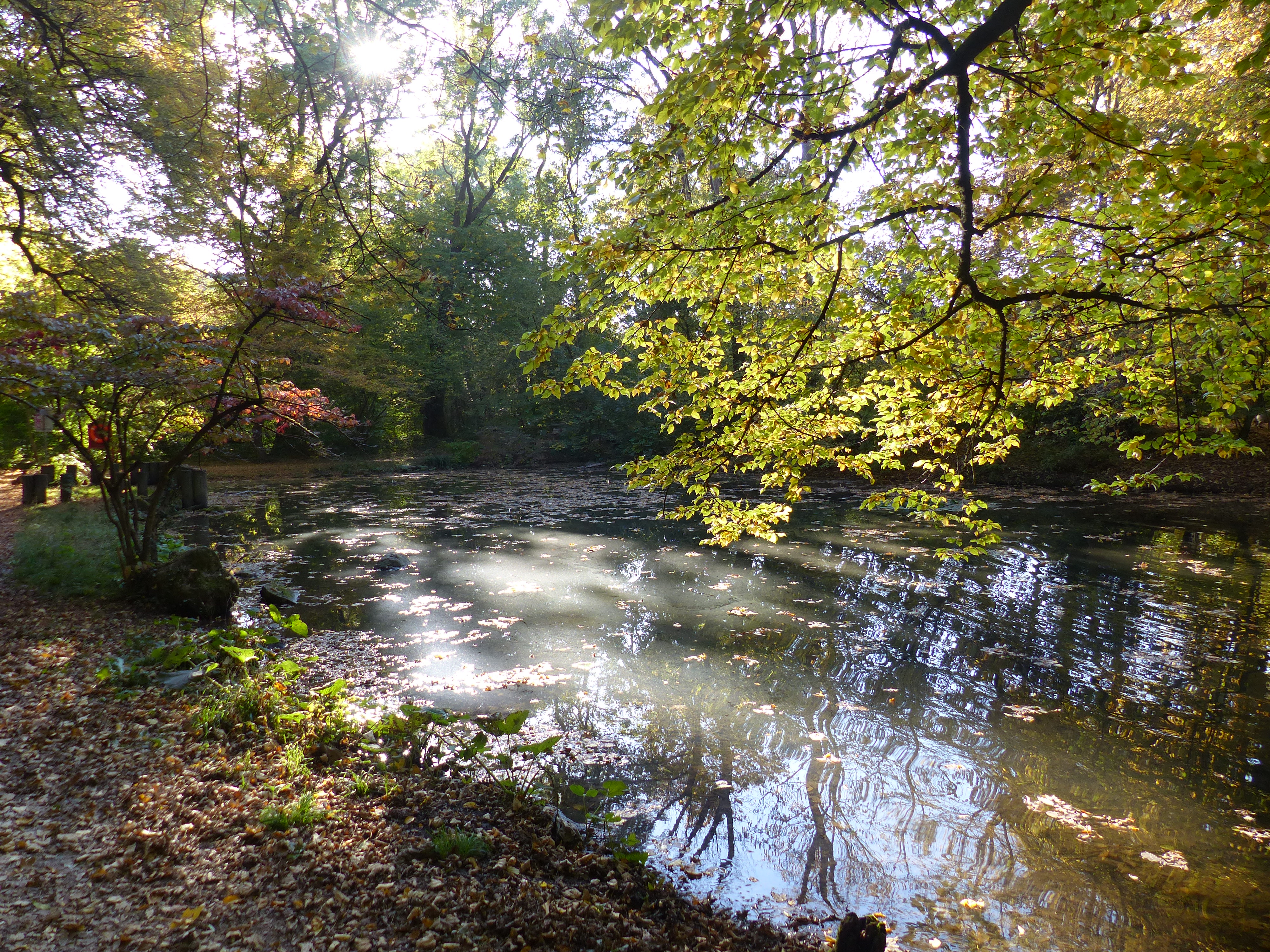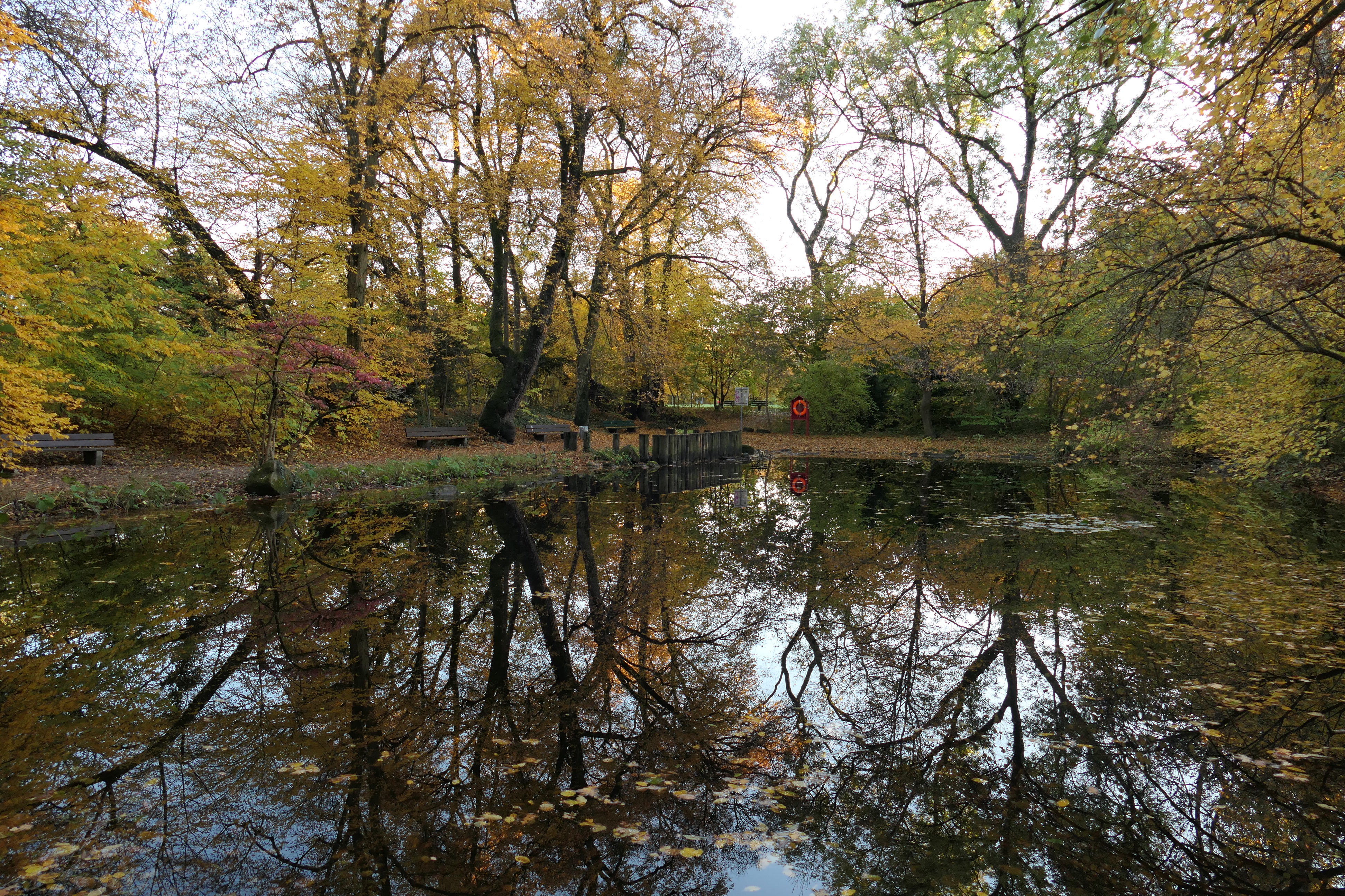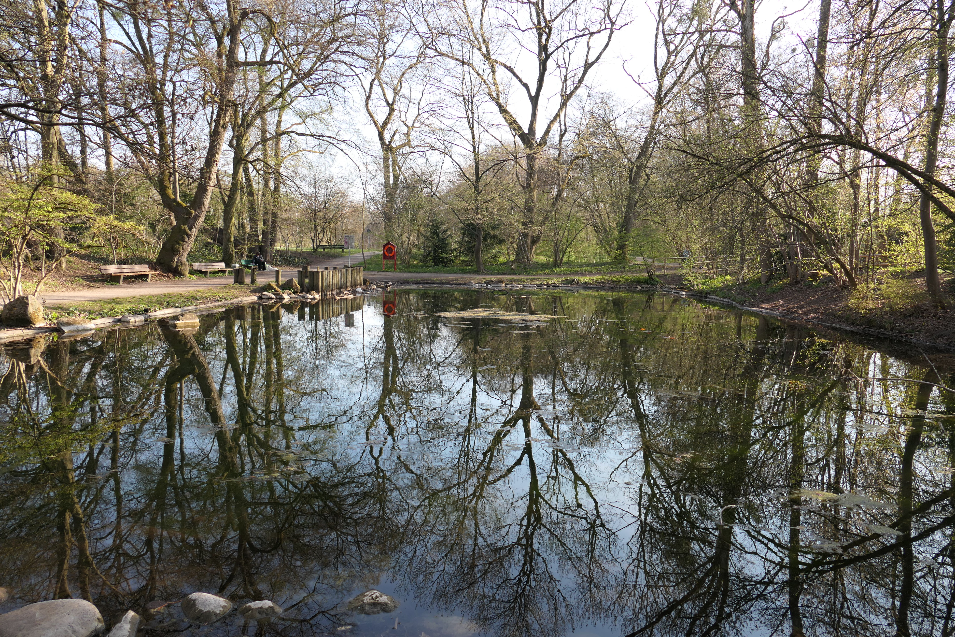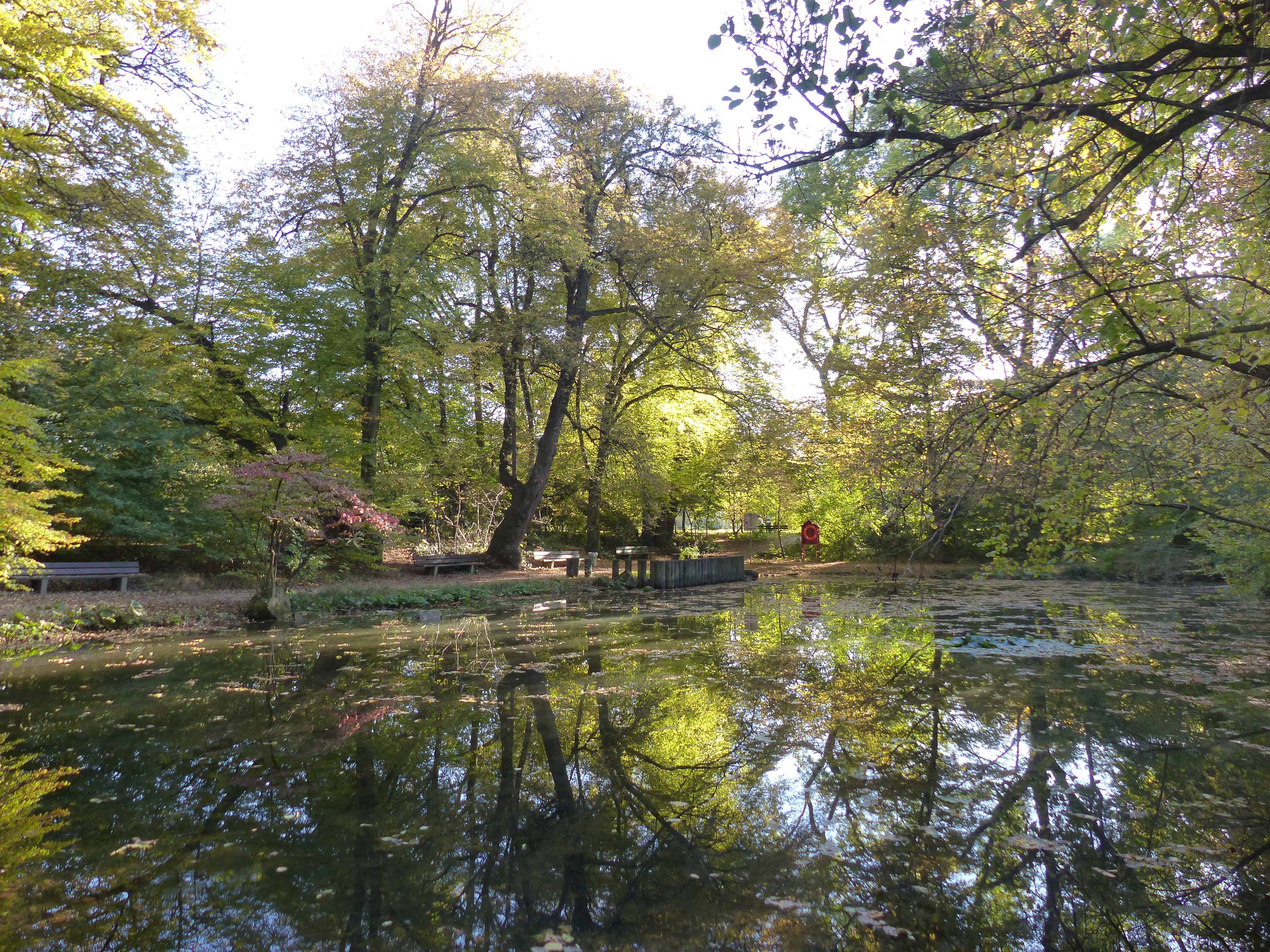 Heute bleibe ich mal wieder ganz nah an meiner Wohnung in München. Eigentlich ein Skandal, dass der Pasinger Stadtpark bei meinen Lieblingsorten noch nicht aufgetaucht ist, obwohl er ja zu den von mir am häufigsten aufgesuchten Orten gehört. Und so möchte ich heute den kleinen Weiher (Teich) vorstellen, der in der Ecke liegt, wo sich die Würm und der Abelskanal treffen. Auf meiner klassischen Spazier- und Laufrunde komme ich immer daran vorbei und muss auch immer kurz anhalten, um einen Blick auf die meist sehr glatte, spiegelnde Oberfläche des Weihers zu werfen, mit dem orange-roten Rettungsreifen gegenüber im Blick. Wenn die Bank links im Bild frei ist, setze ich mich auch gerne mal an diesen Ort der Ruhe, auch wenn ich ja meistens im Stadtpark unterwegs bin, damit ich mein Schritte-Zeil erreiche.