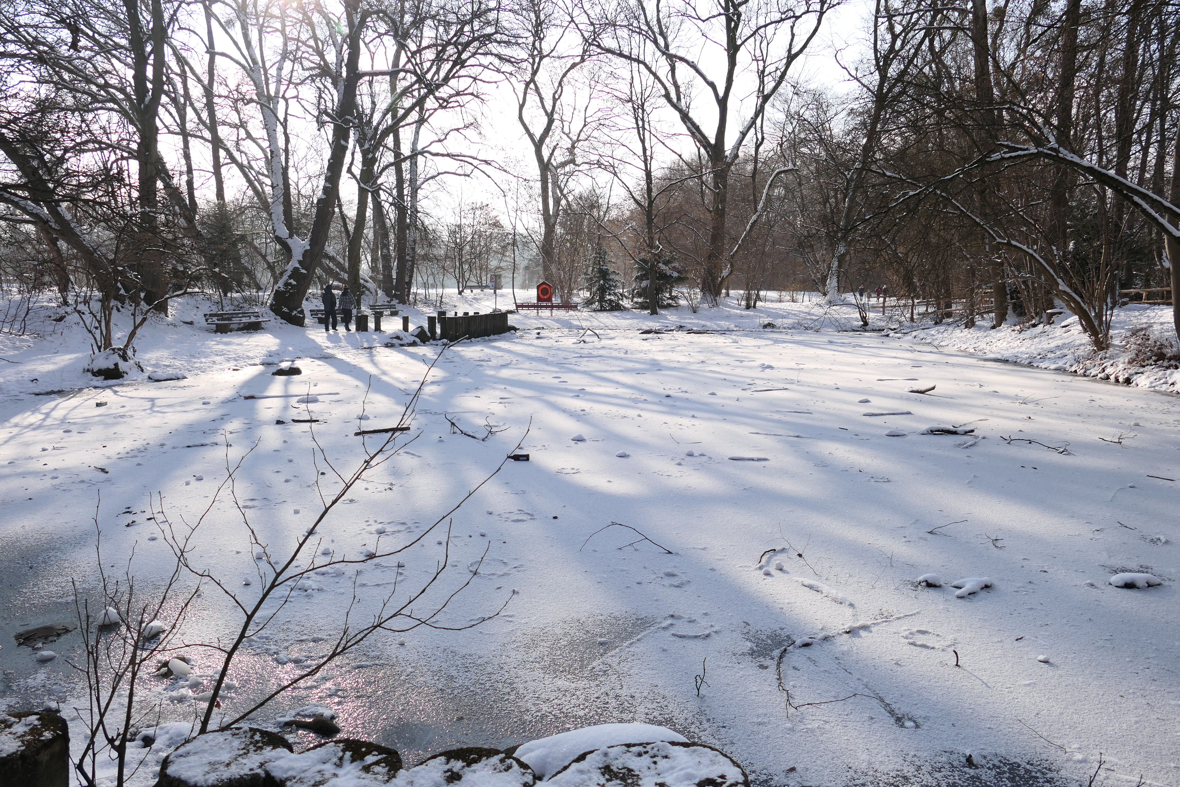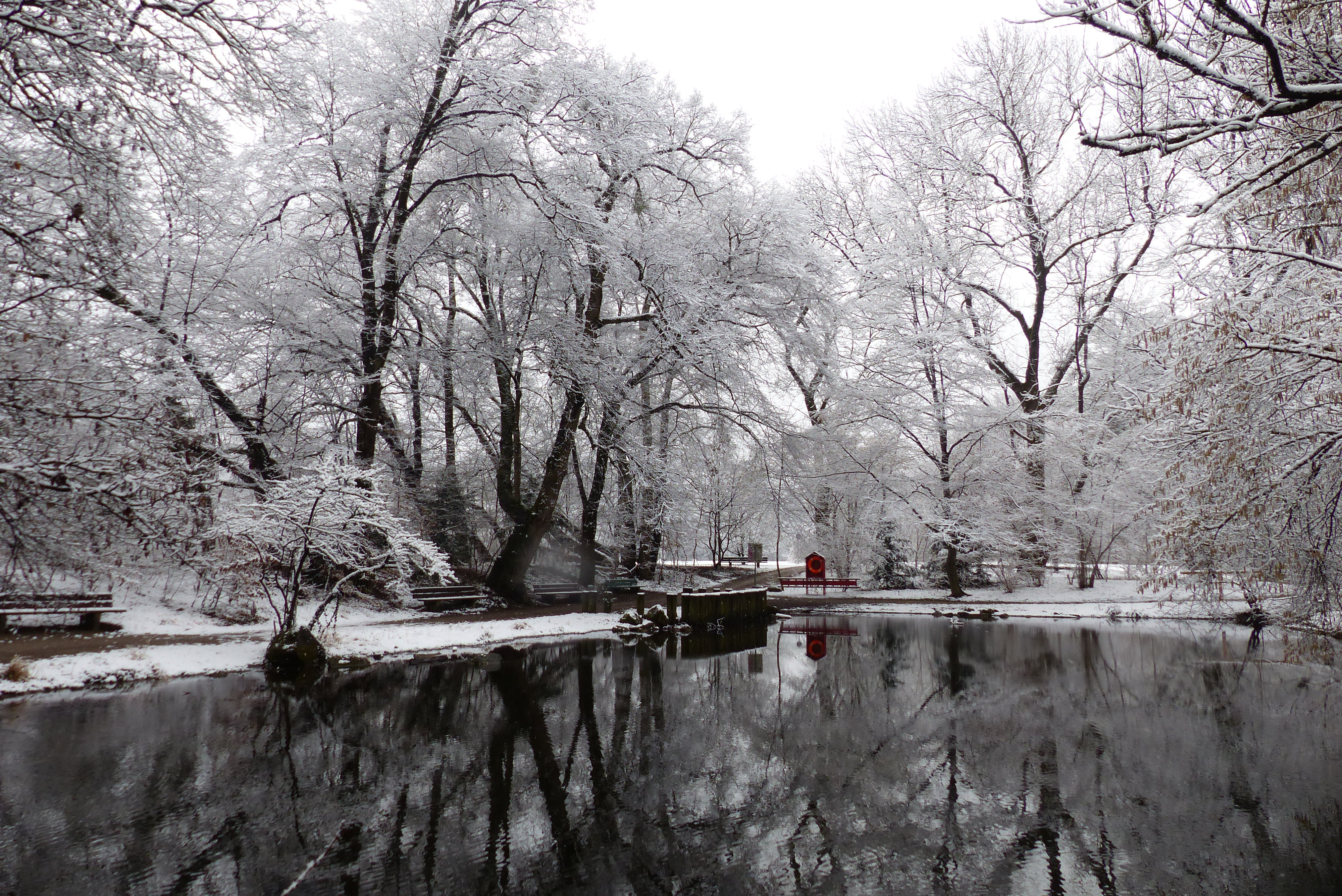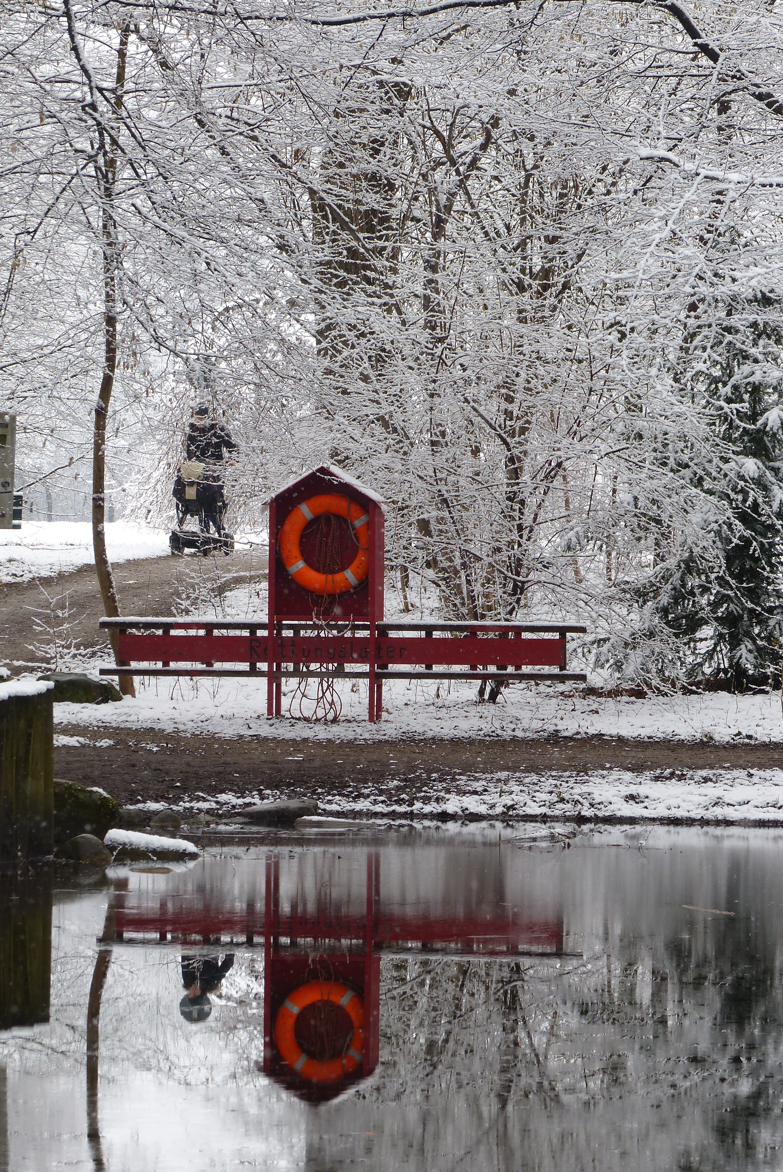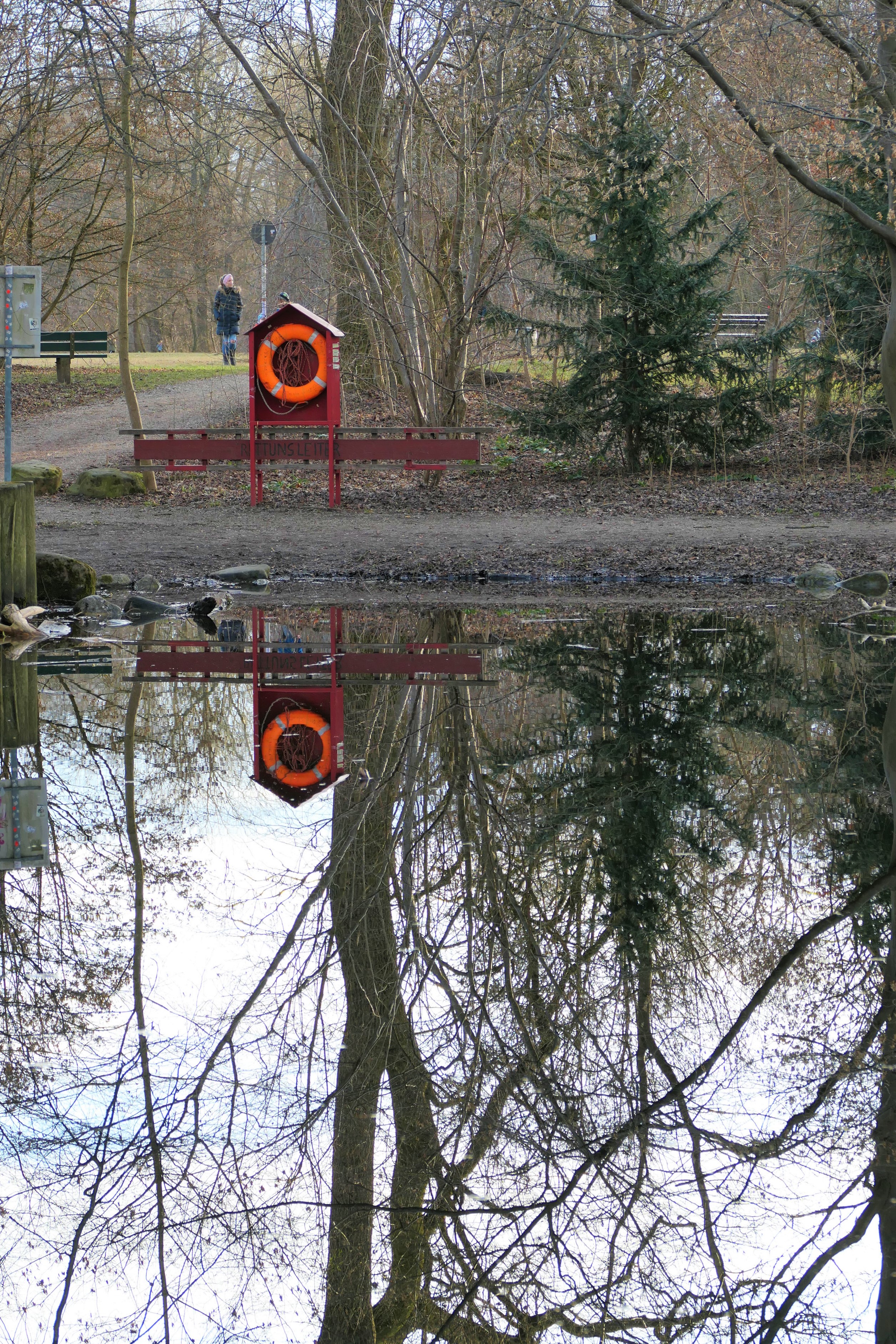 Heute bleibe ich mal wieder ganz nah an meiner Wohnung in München. Eigentlich ein Skandal, dass der Pasinger Stadtpark bei meinen Lieblingsorten noch nicht aufgetaucht ist, obwohl er ja zu den von mir am häufigsten aufgesuchten Orten gehört. Und so möchte ich heute den kleinen Weiher (Teich) vorstellen, der in der Ecke liegt, wo sich die Würm und der Abelskanal treffen. Auf meiner klassischen Spazier- und Laufrunde komme ich immer daran vorbei und muss auch immer kurz anhalten, um einen Blick auf die meist sehr glatte, spiegelnde Oberfläche des Weihers zu werfen, mit dem orange-roten Rettungsreifen gegenüber im Blick. Wenn die Bank links im Bild frei ist, setze ich mich auch gerne mal an diesen Ort der Ruhe, auch wenn ich ja meistens im Stadtpark unterwegs bin, damit ich mein Schritte-Zeil erreiche.