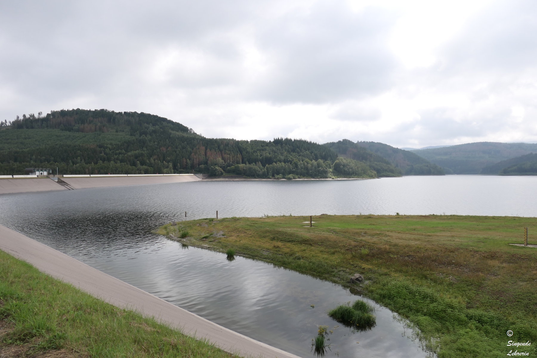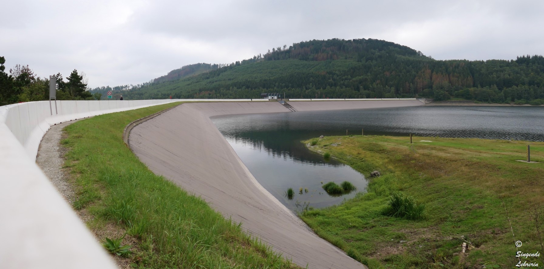 Was ich nun interessant fand, war die andere Seite: Kein steil abfallender Betondamm, sondern eine sanft abfallende Wiese. Nun, da hier kein Strom gewonnen wird, sondern Trinkwasser, auch irgendwie verständlich, aber für mich dennoch überraschend.