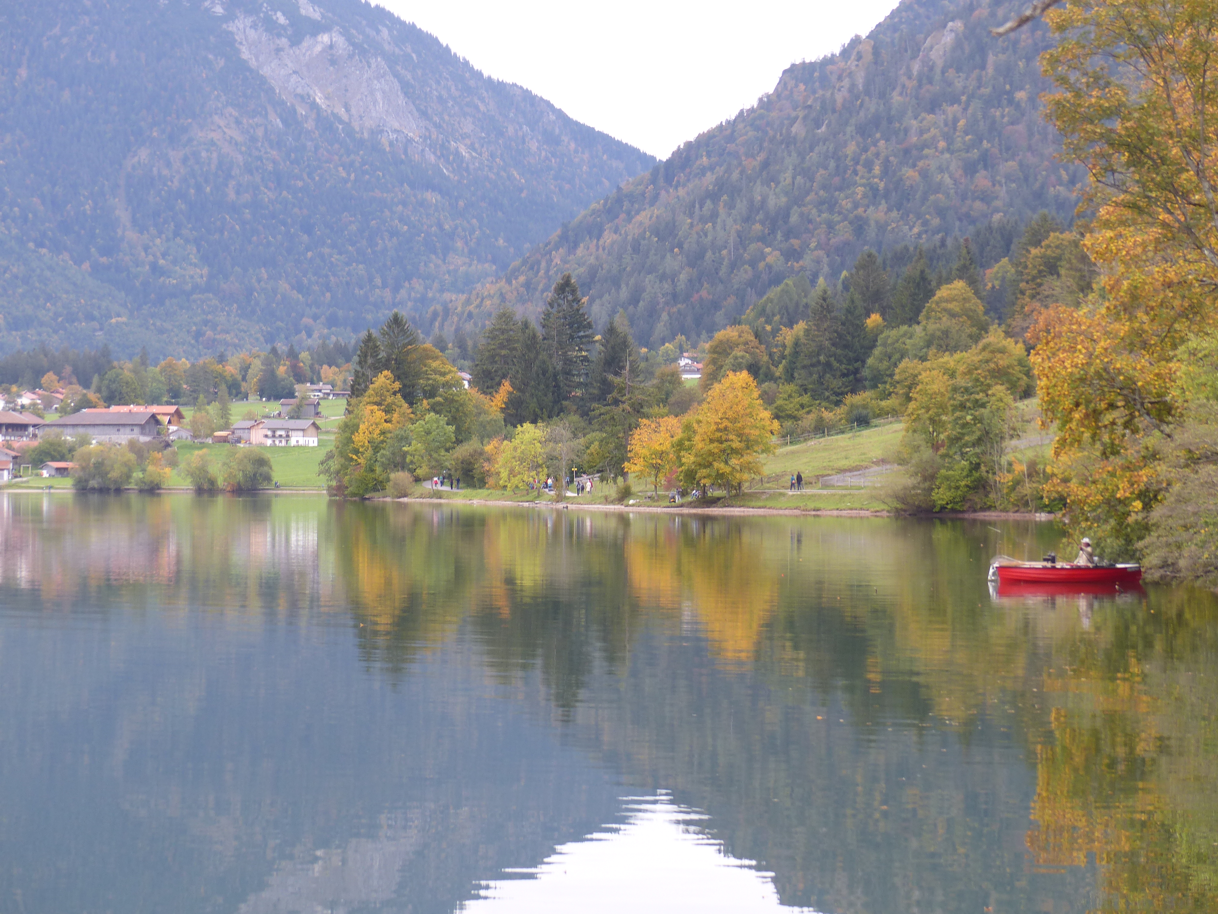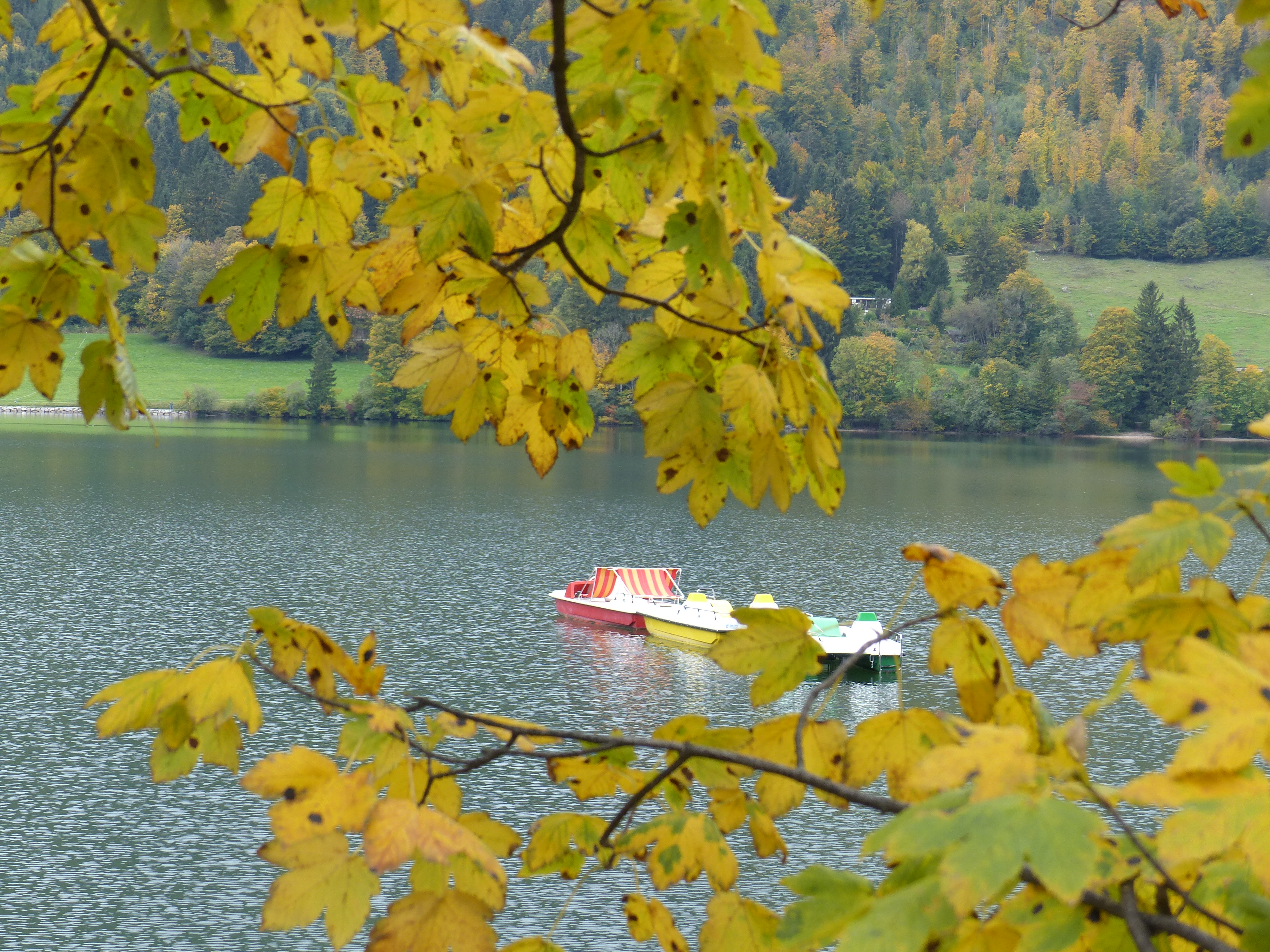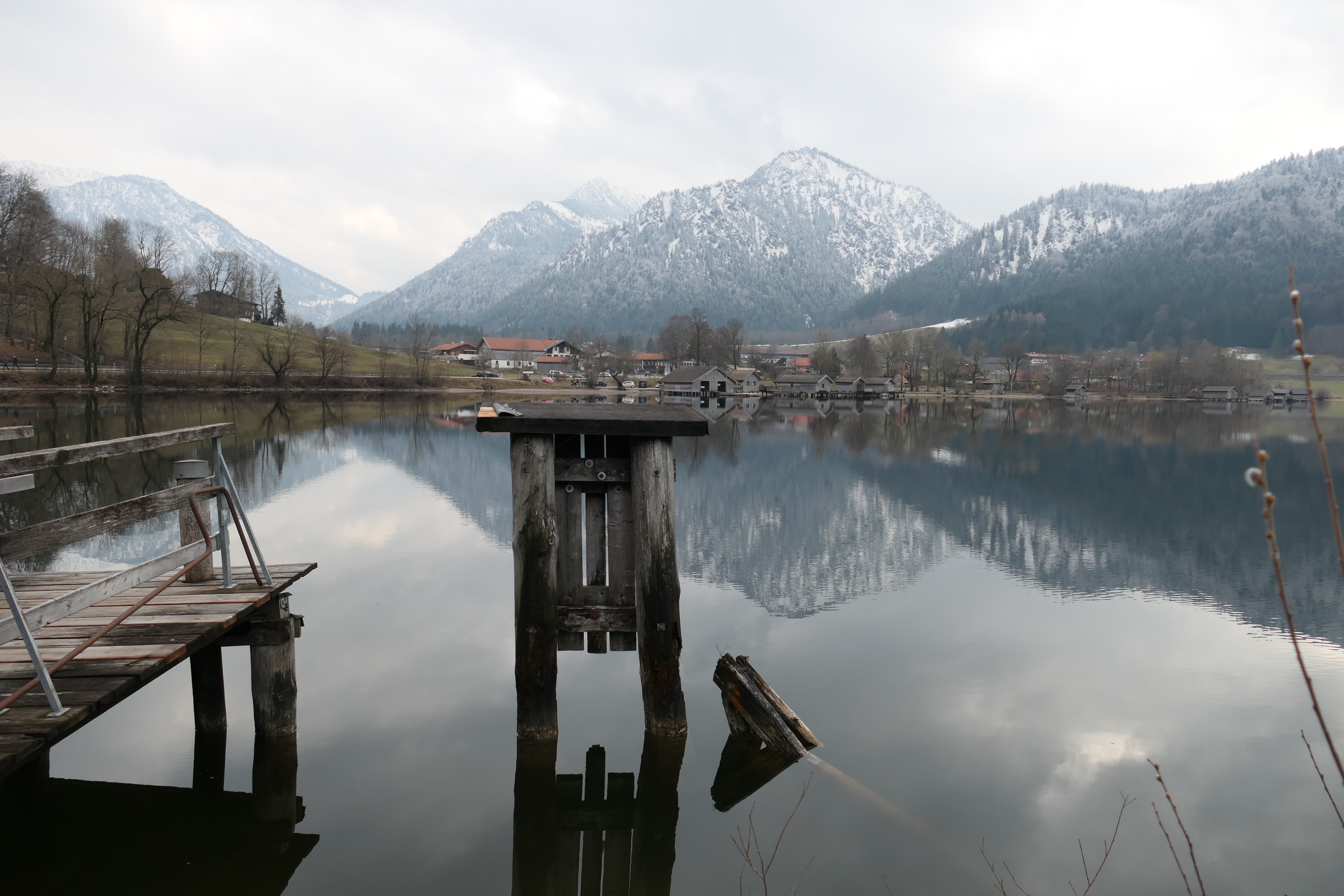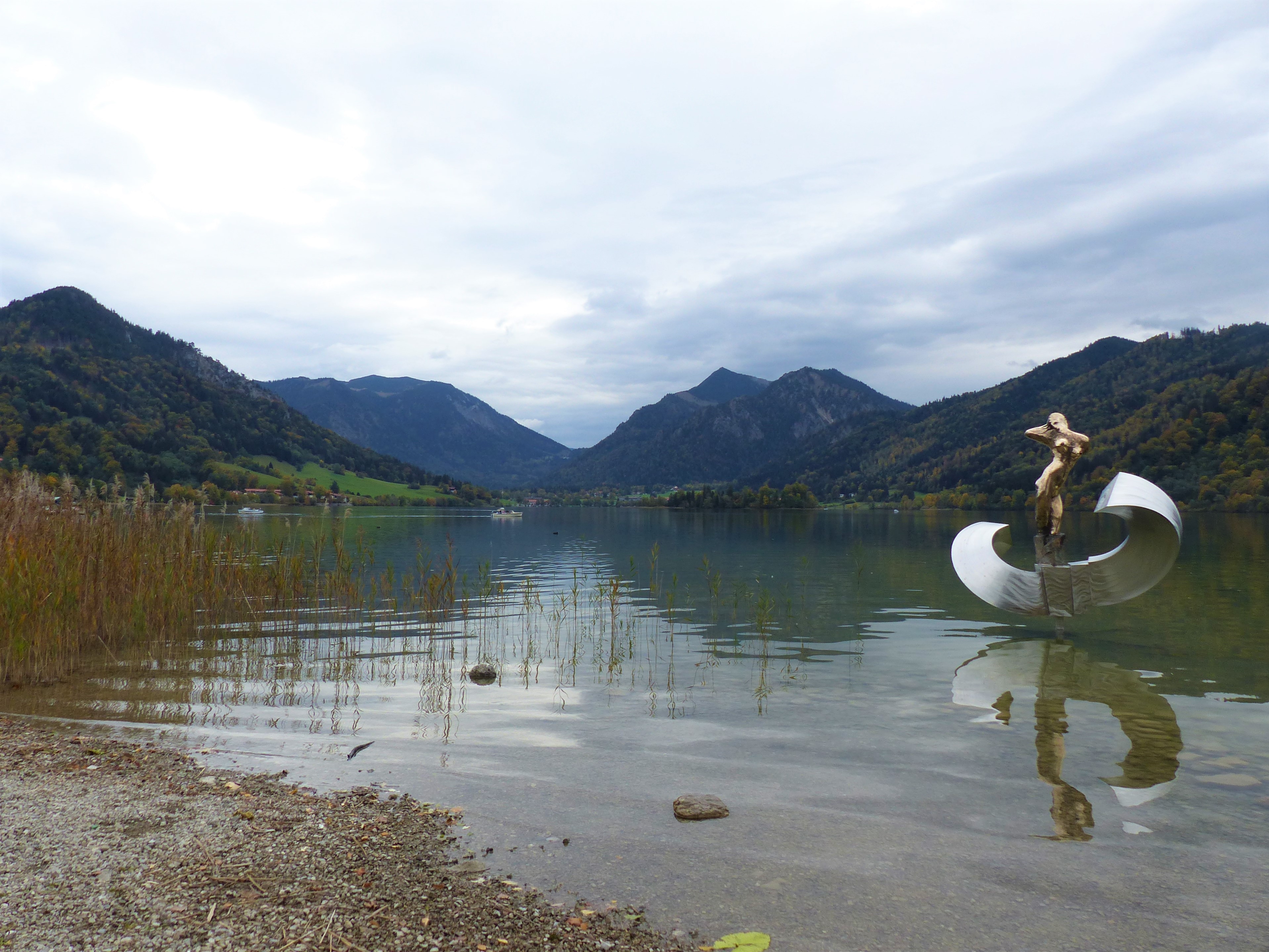 Ich weiß gar nicht, warum mir der Schliersee jetzt erst einfällt – dabei liebe ich es, ihn immer wieder mal zu umrunden, mit verschiedener Begleitung (ich war dort u. a. schon mit Franzi und auch mit meinem Freund). Er mag nicht in ganz so grandioser Kulisse liegen, wie der Tegernsee z. B., dafür hat er einen großen Vorteil: Man kann ihn gut in ca. 1,5-2 Stunden umrunden. Kurioserweise war ich selten bei richtig gutem Wetter vor Ort, sodass die meisten Bilder wenig farbenfroh sind, selbst als Franzi und ich im Herbst unterwegs waren (vor fast genau drei Jahren). Darum hatte ich bei dem ersten Bild etwas „nachgeholfen“: