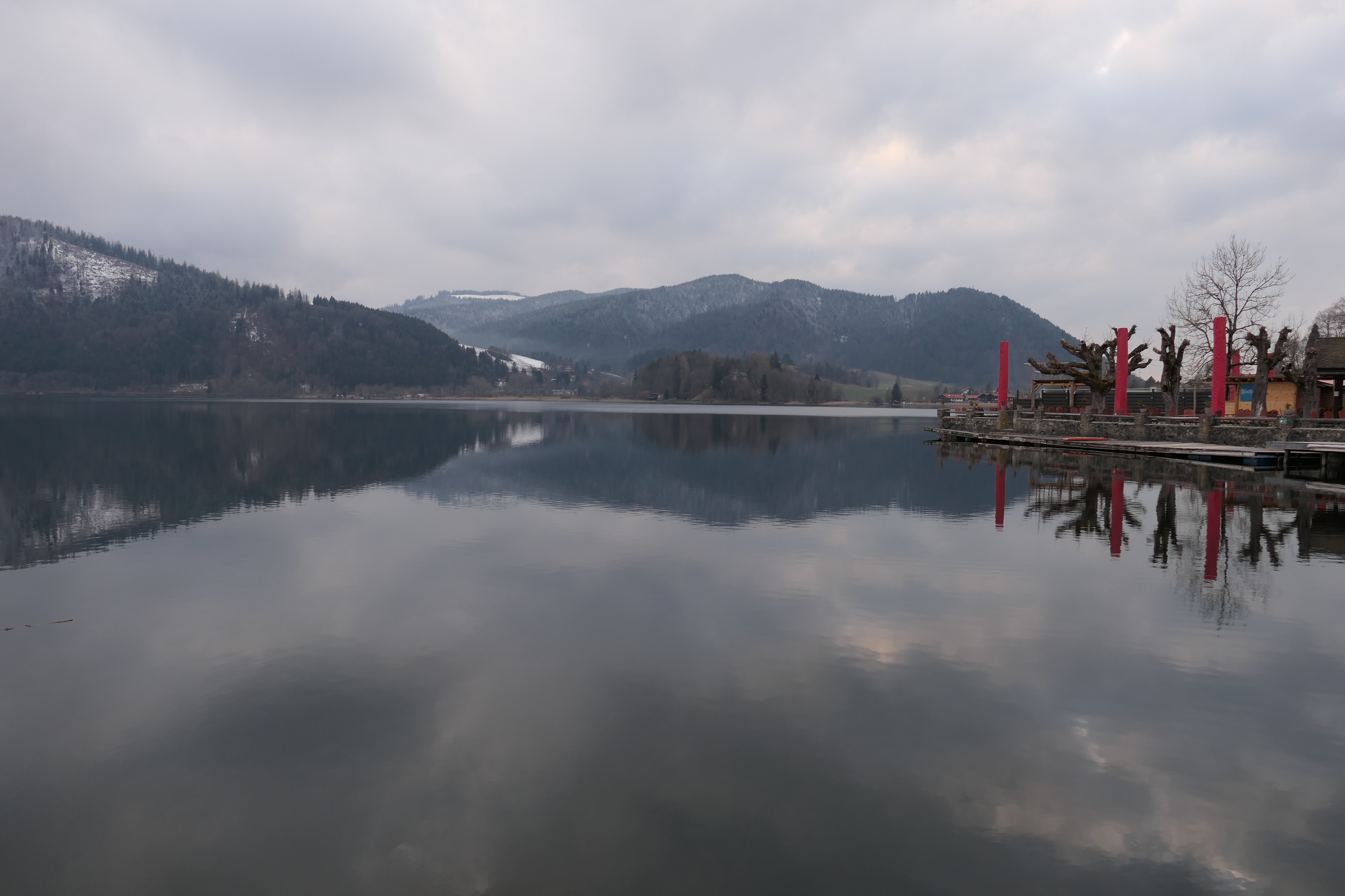 Auf diesen Bildern lässt sich ja schon eine Eigenschaft dieses Sees erahnen: Die Berge spiegeln sich wunderbar darin, wenn es windstill ist. Solche Verhältnisse hatten wir Mitte März dieses Jahres, als ich mit meinem Freund unterwegs war. Klar, dass ich da fotografieren musste, zumal die Berge auch noch schneebedeckt waren: