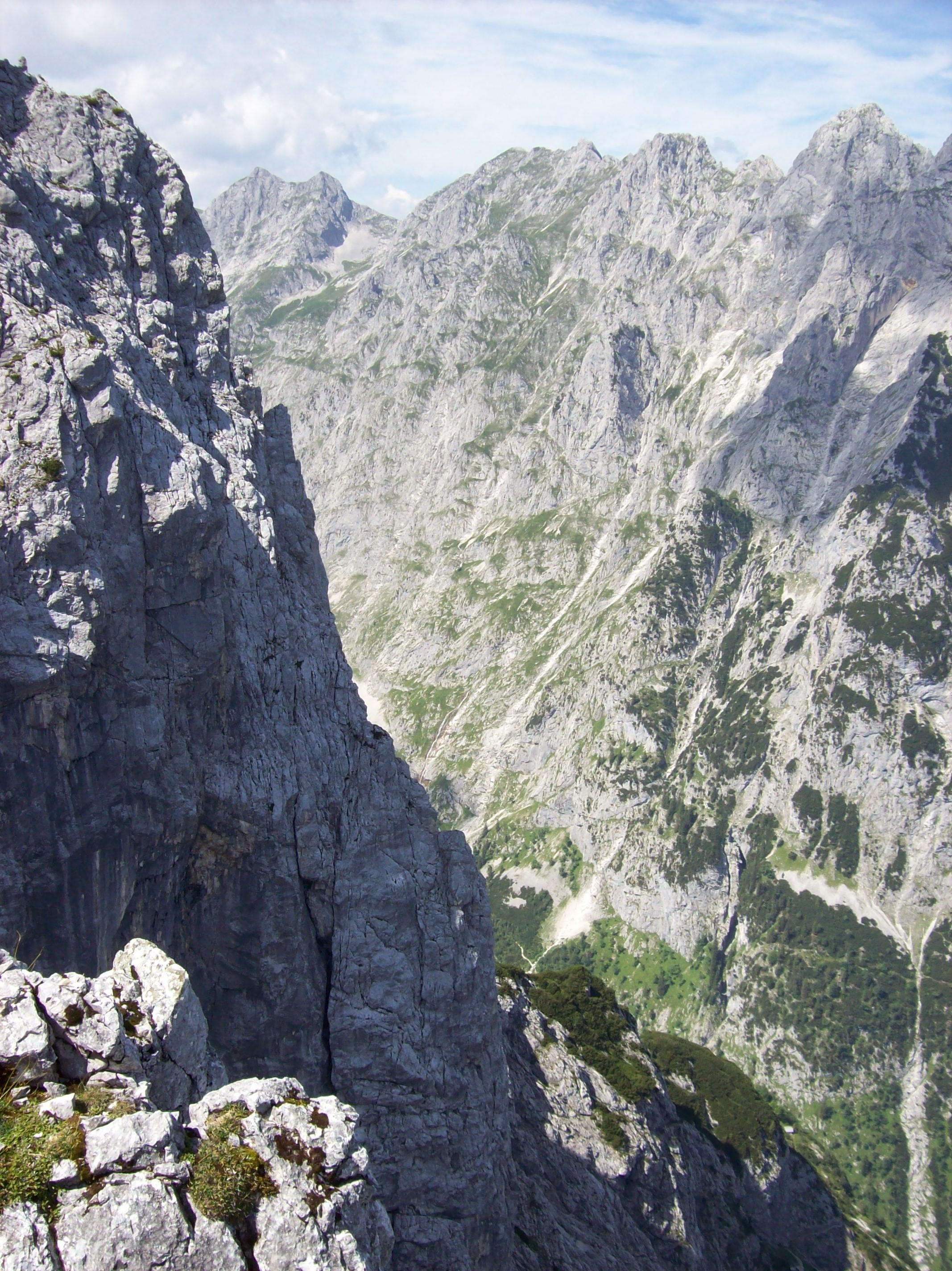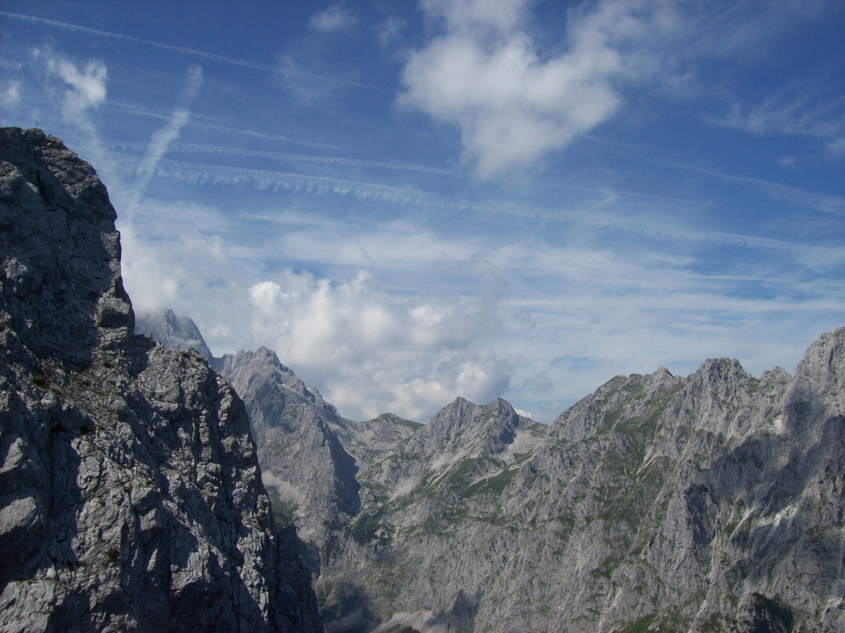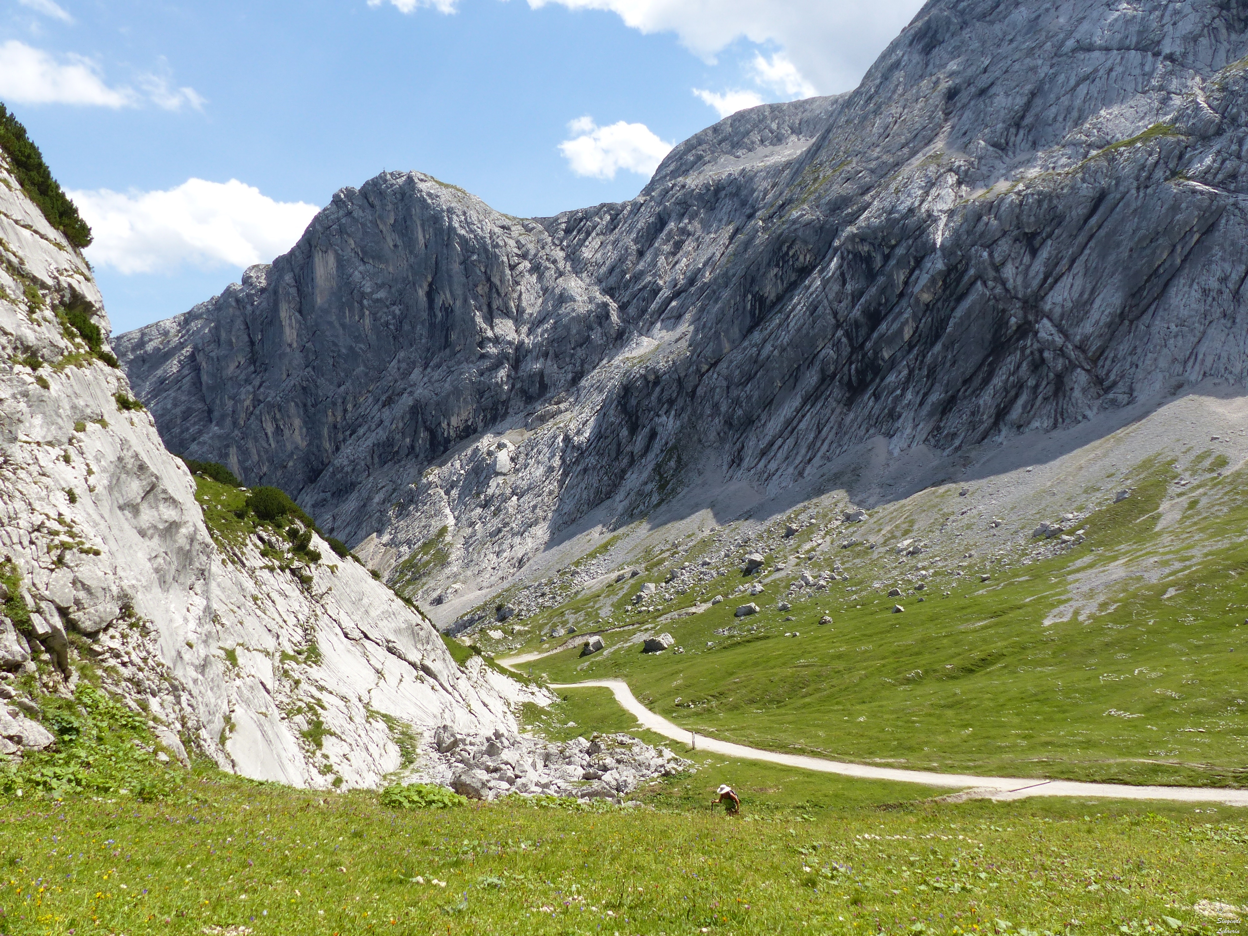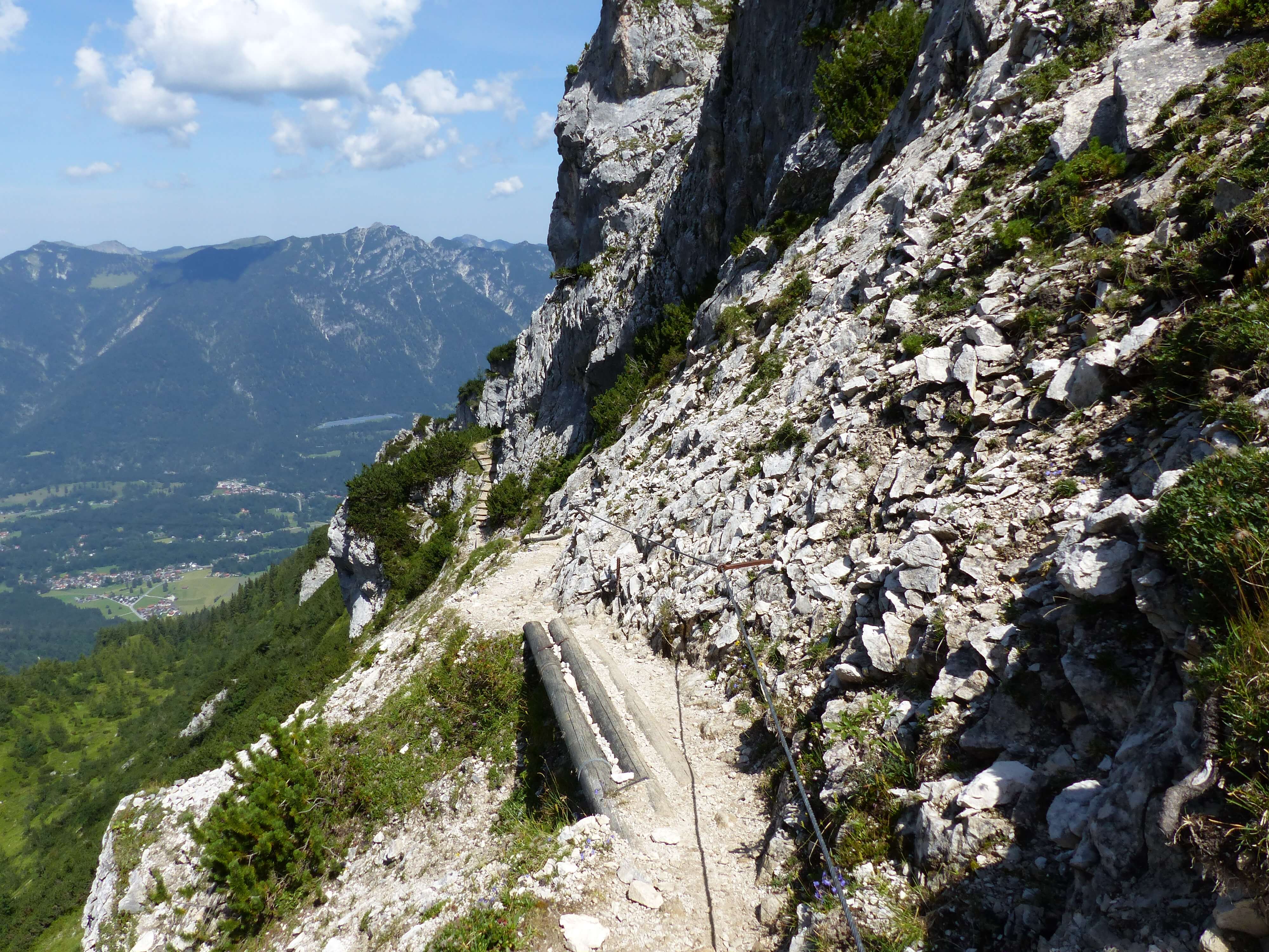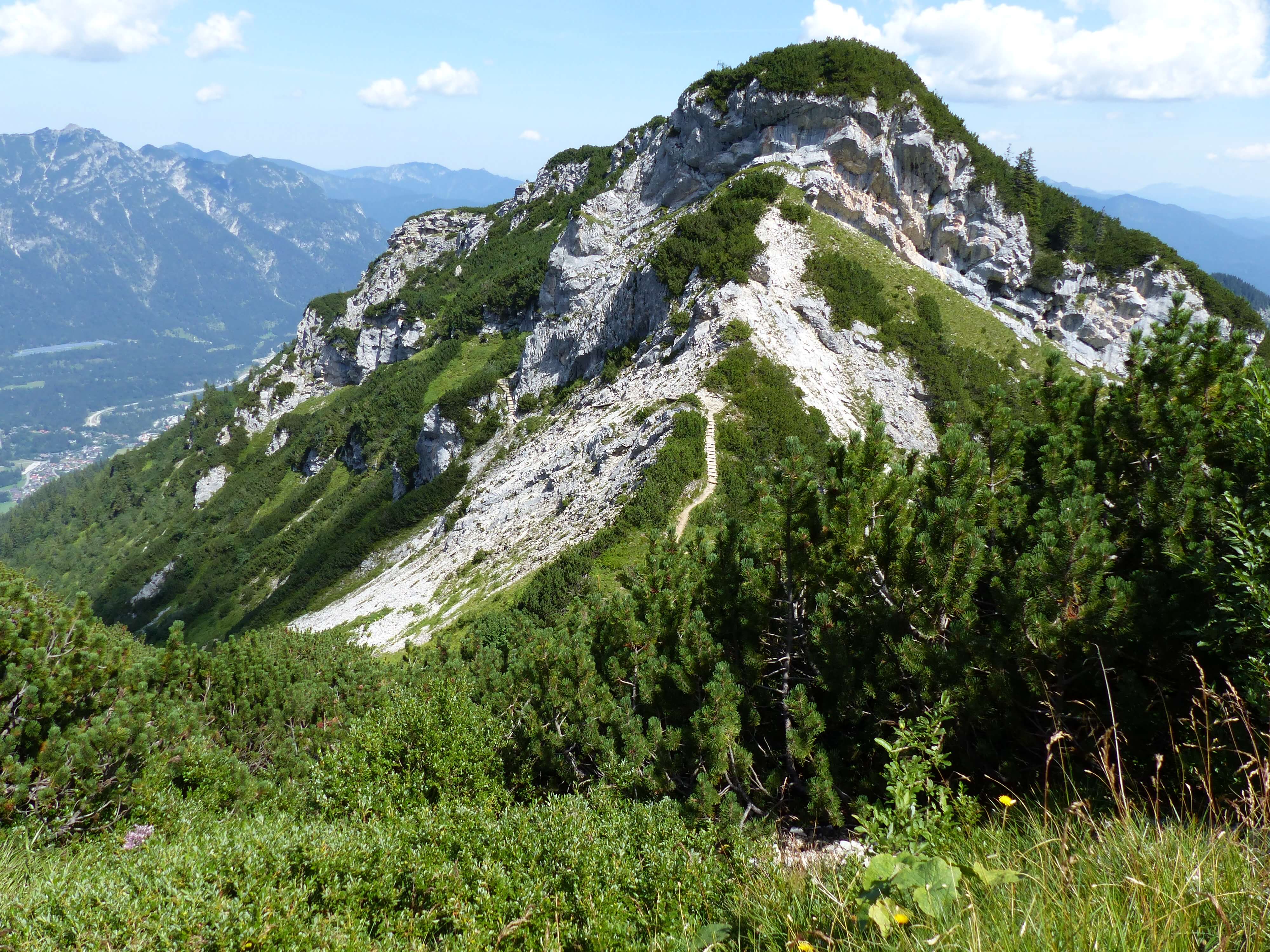 Während er also vom Kreuzeck runterflog, wanderte ich von dort zum Osterfelderkopf. Es gibt einen breiten, leichten Wanderweg, doch ich nahm den steileren und für mich (Höhenangst!) schwierigeren Aufstieg, weil der Weg z. Tl. sehr schmal und direkt am Abhang verlief…