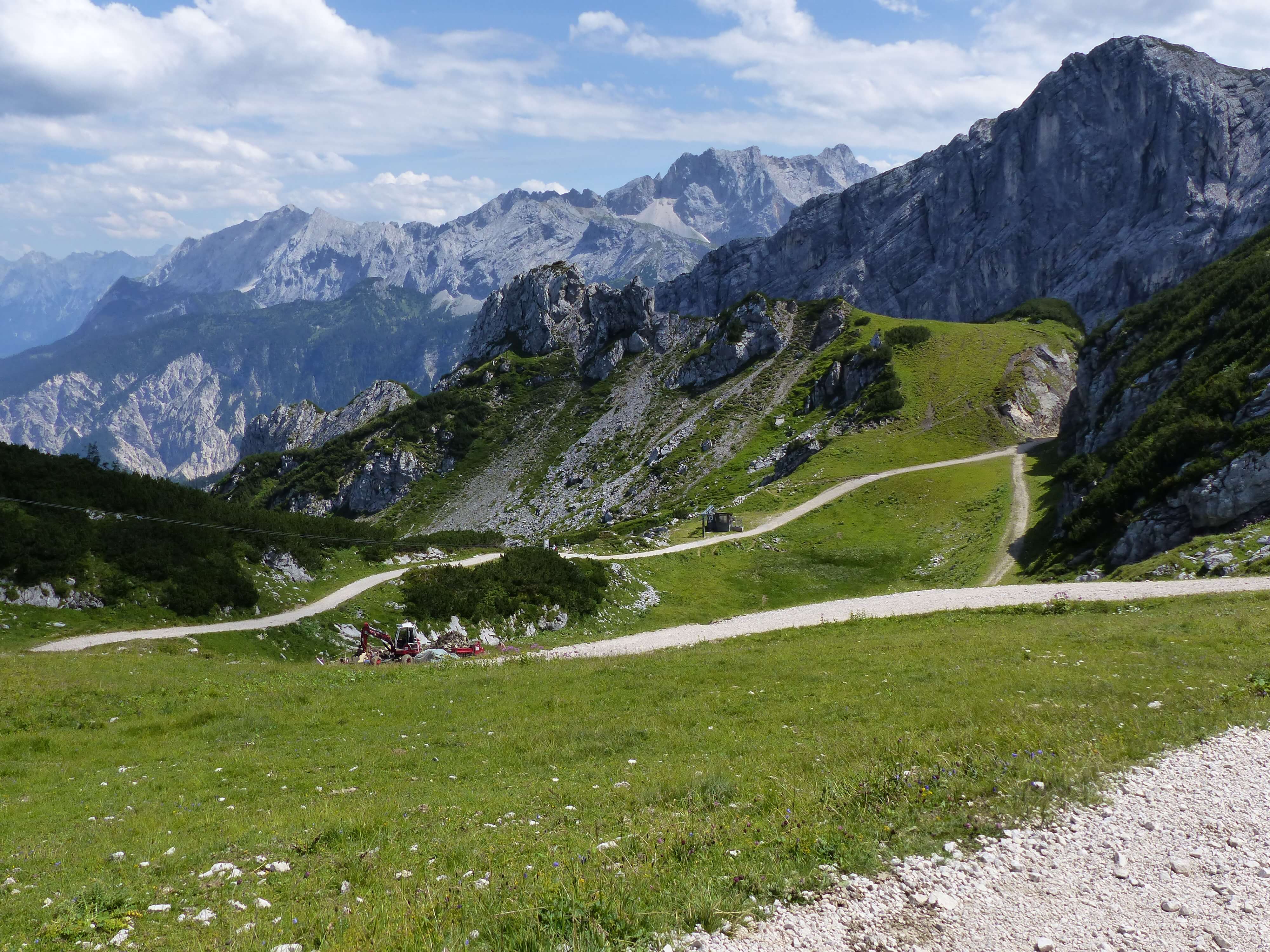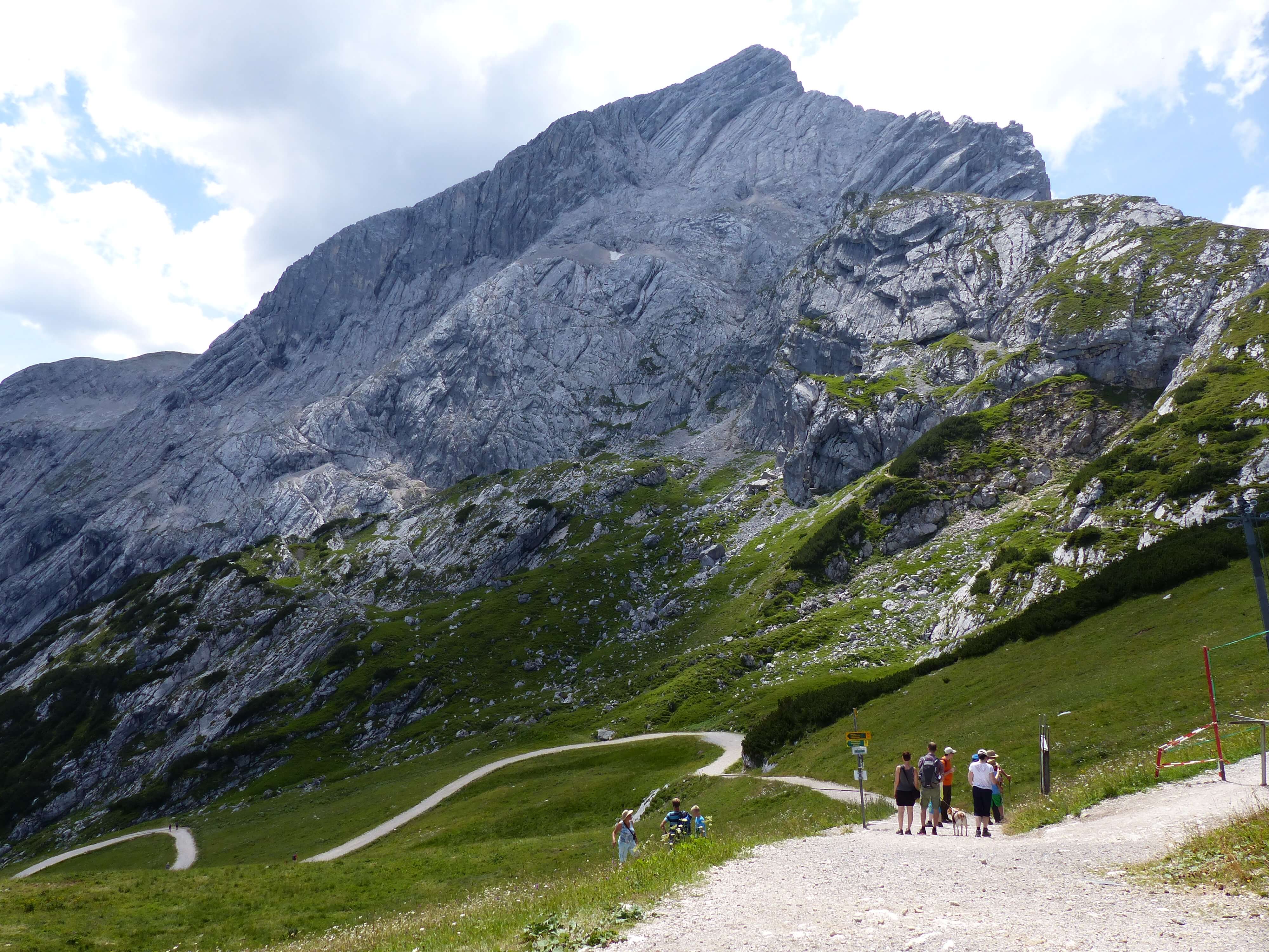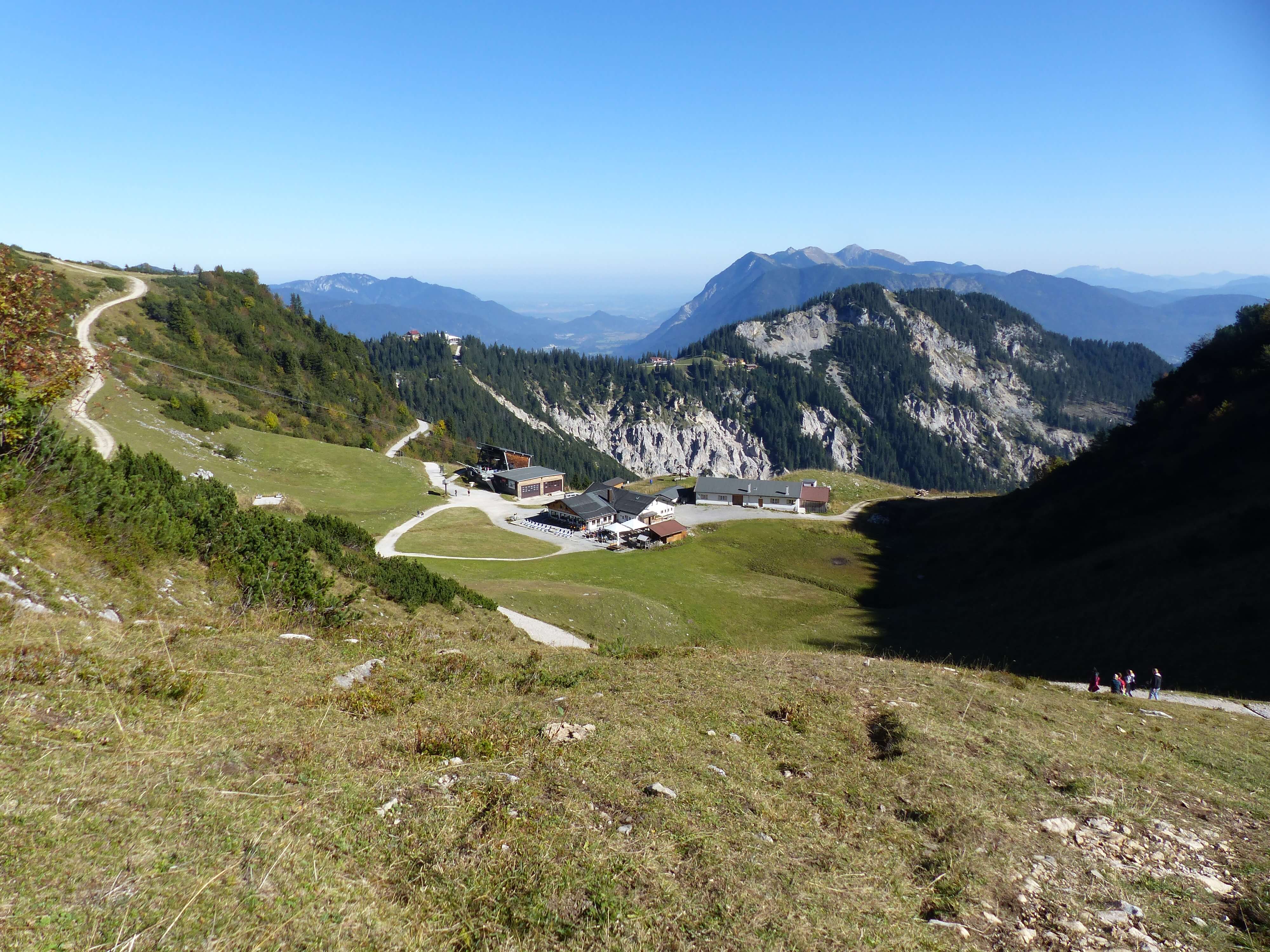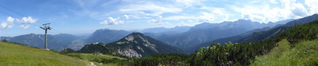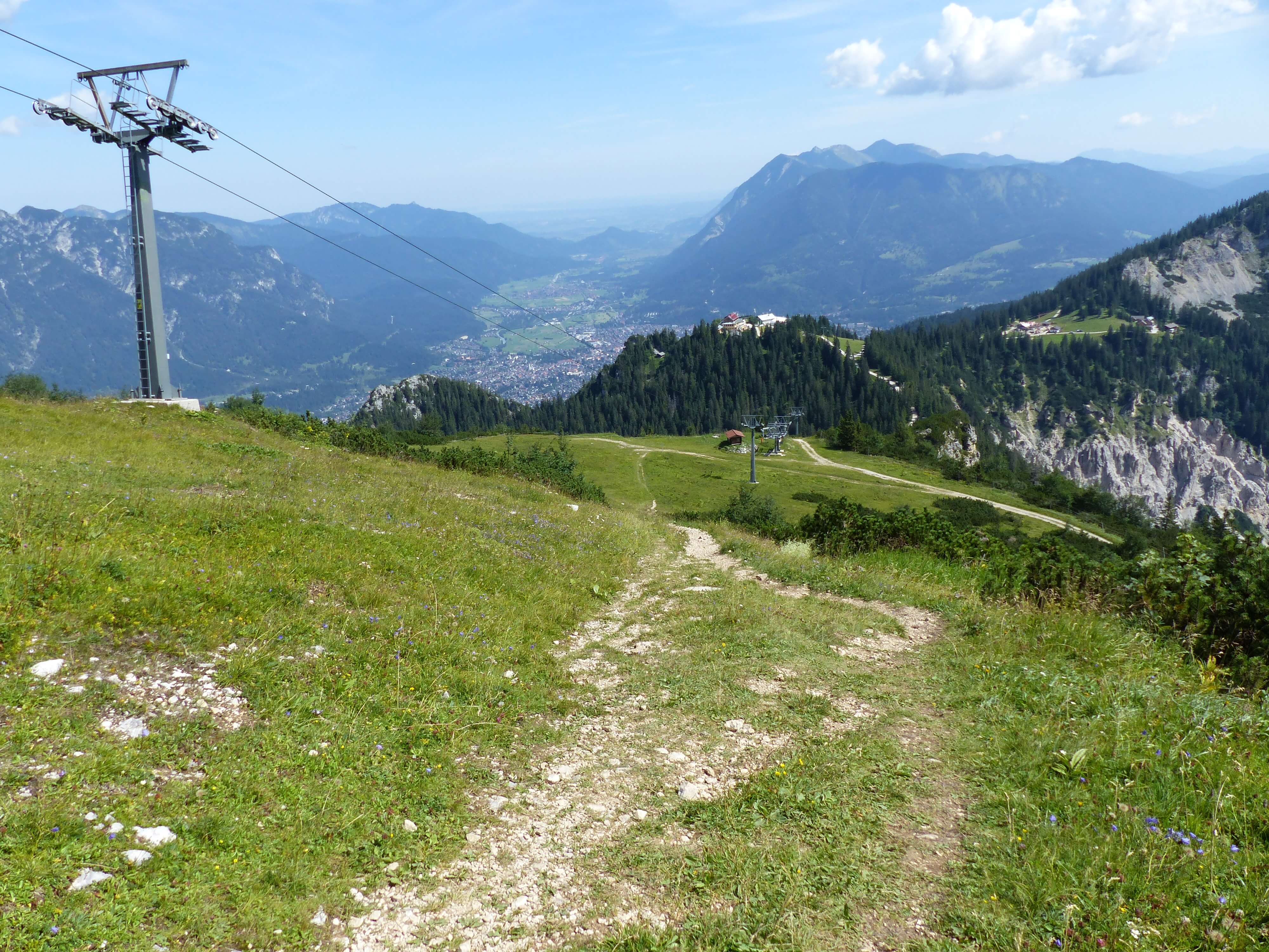 Wenn man nach Garmisch-Partenkirchen fährt, kann man für viel Geld auf die Zugspitze fahren (61 € hin und zurück), oder für die Hälfte mit der Kreuzeckbahn und/oder Alpspitzbahn auf den Osterfelderkopf. Ich war zwar einmal mit meiner amerikanischen Freundin Ruth auf der Zugspitze (damals noch für 48 € oder so), aber schöner zum Wandern – auch weil man ja theoretisch auch hinauf- und/oder hinabwandern kann – ist für mich das „Garmisch Classic“-Gebiet zwischen Kreuzeck und Osterfelderkopf.