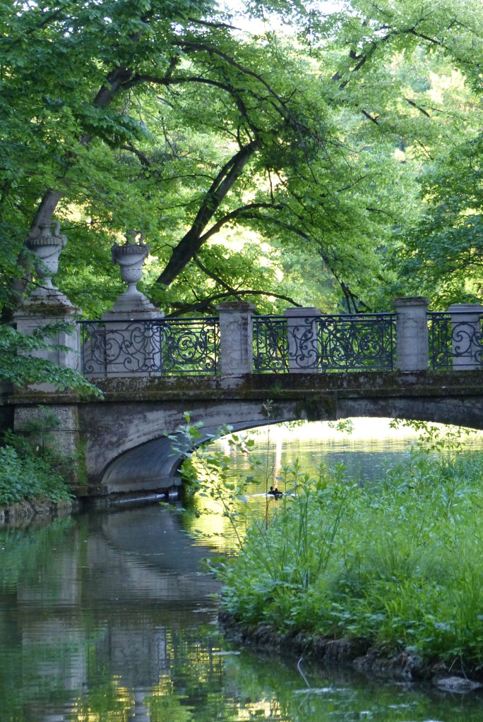 Normalerweise treibe ich mich ja meistens in der Südhälfte, um die Badenburg, herum, schließlich befindet sich dort auch einer meiner ersten Lieblingsorte in München. Aber seit 2020 habe ich doch auch des öfteren eine große Runde durch den Park gemacht und bin auch am Pagodenburger See vorbeigegangen, manchmal auch erst über Umwege, wenn ich noch weiter nördlich unterwegs war. Und da fiel mir im Mai 2020 offenbar das erste Mal diese Brücke auf (habe kein früheres Bild gefunden).