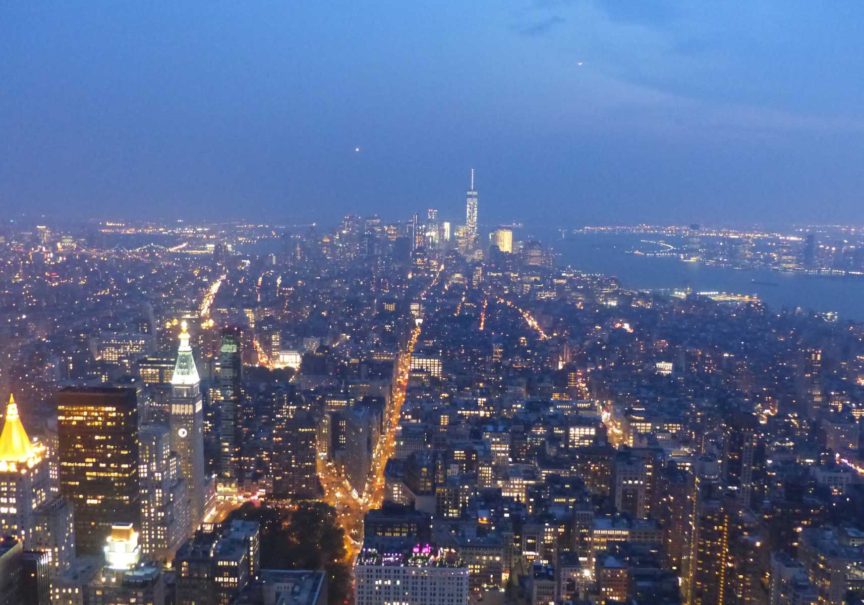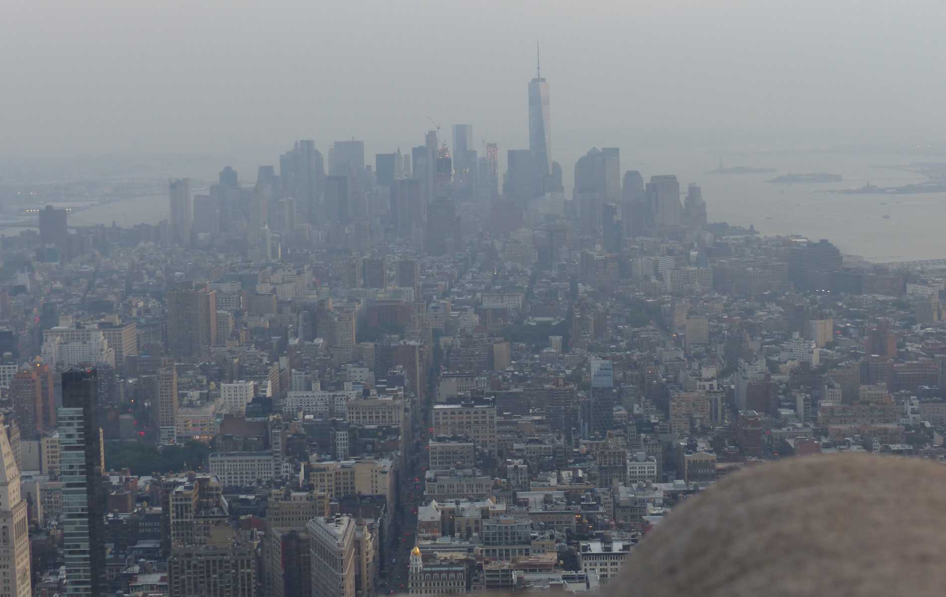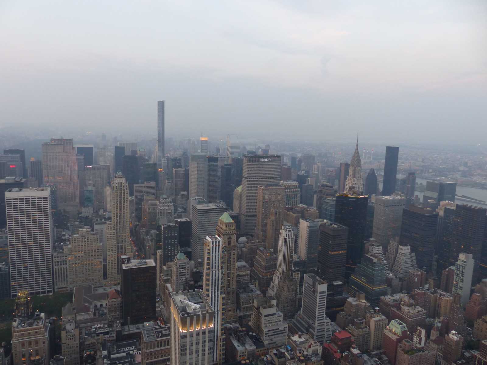 Der Blick vom Empire State Building zum Sonnenuntergang (leider sehr diesig/smoglastig):