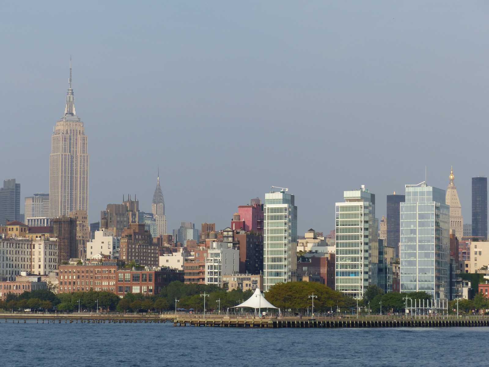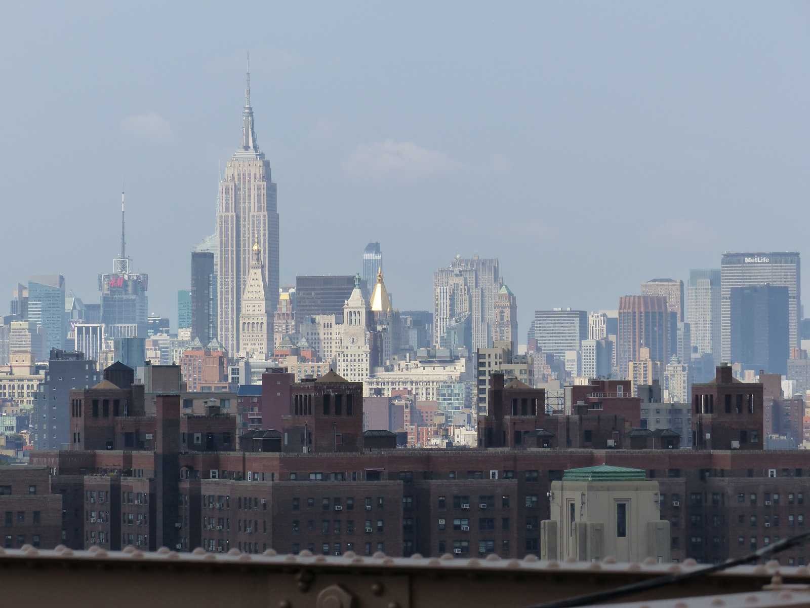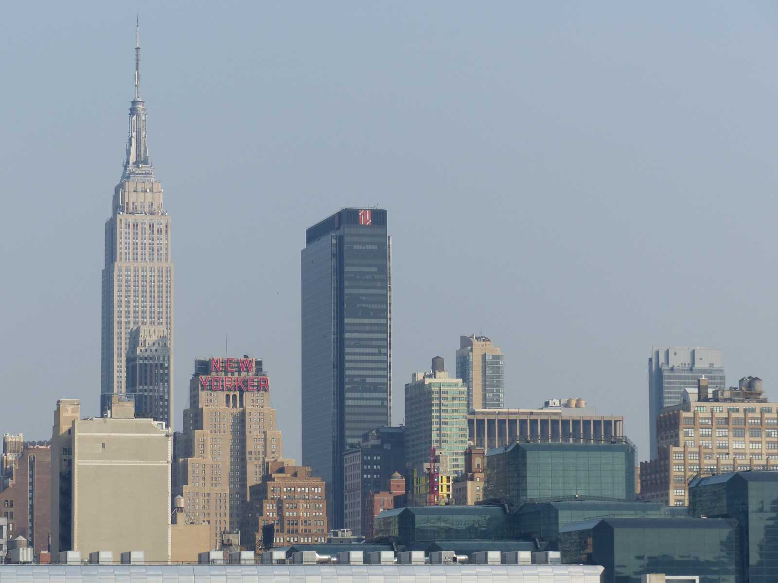 Der Blick vom Empire State Building zum Sonnenuntergang (leider sehr diesig/smoglastig):