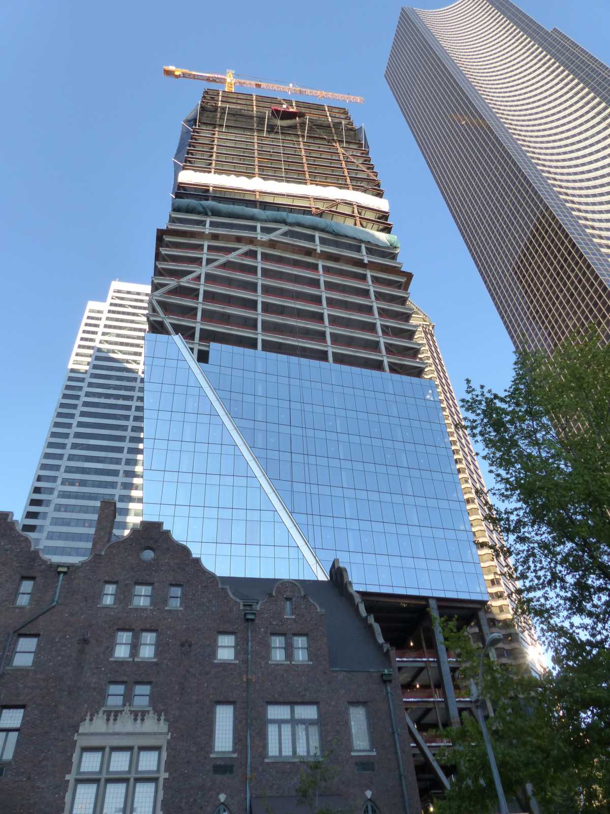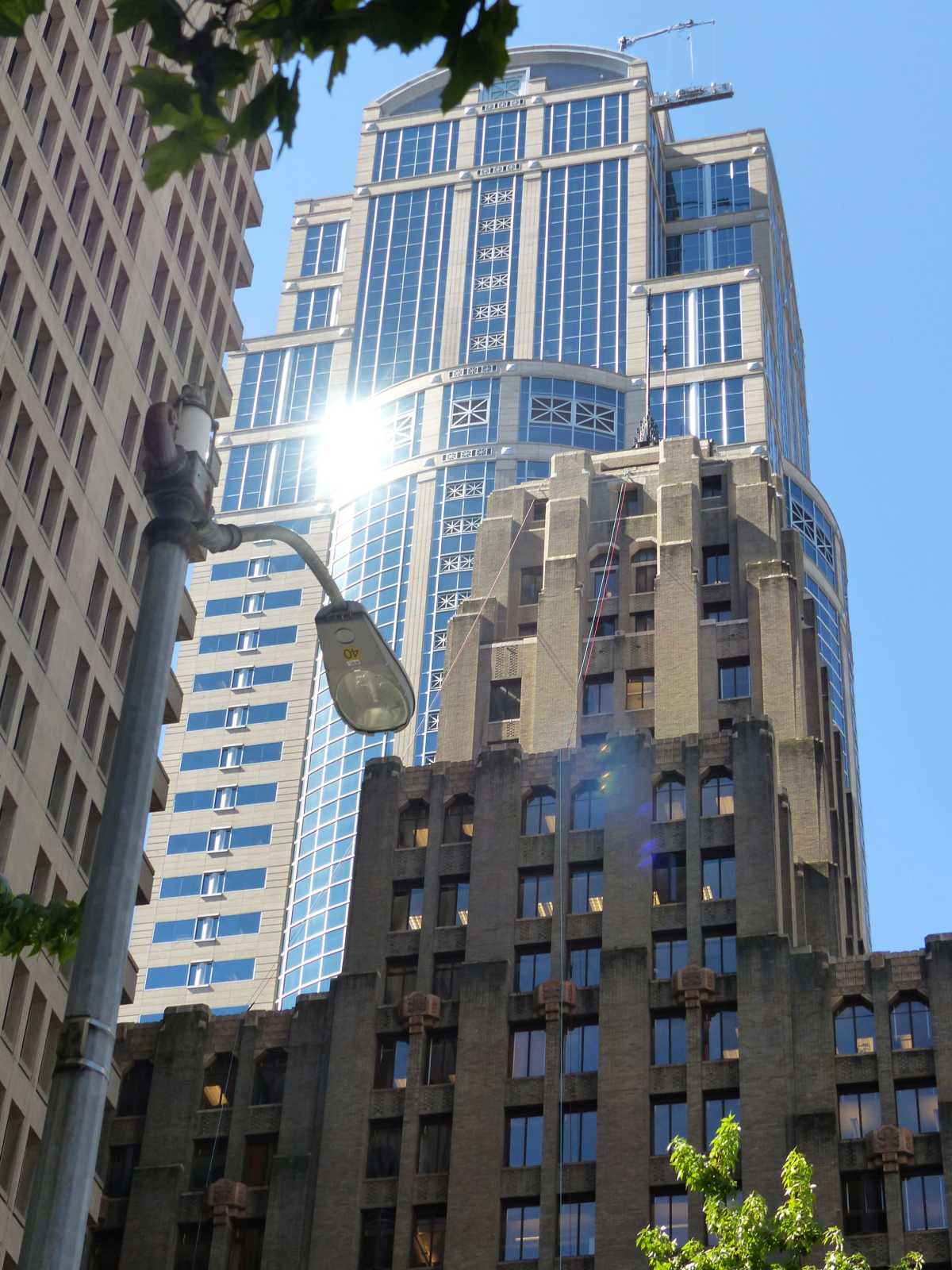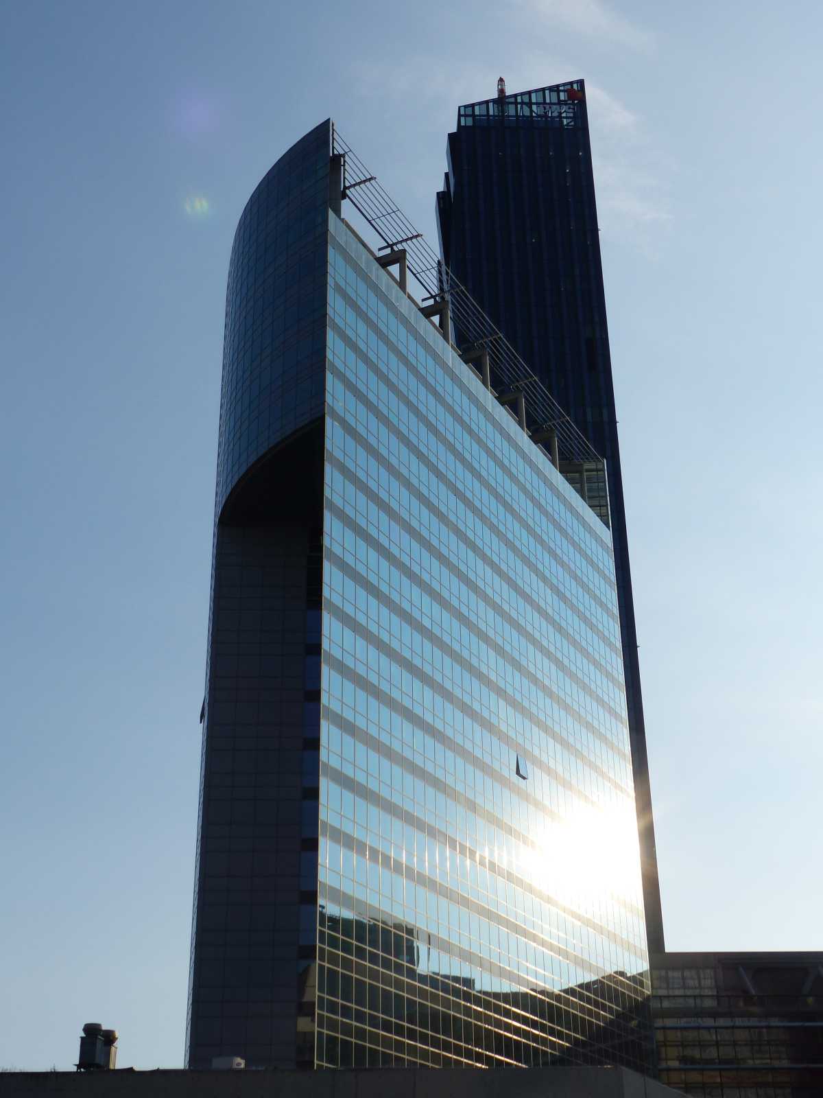 Vorbemerkung: Vielleicht sind nicht alle der Hochhäuser, die ich euch heute hier präsentiere, tatsächlich „Wolkenkratzer“ im engen Sinn (Höhe ab 100 bzw. 150 Metern), aber der bildliche Begriff gefällt mir trotzdem besser als „Hochhaus“.