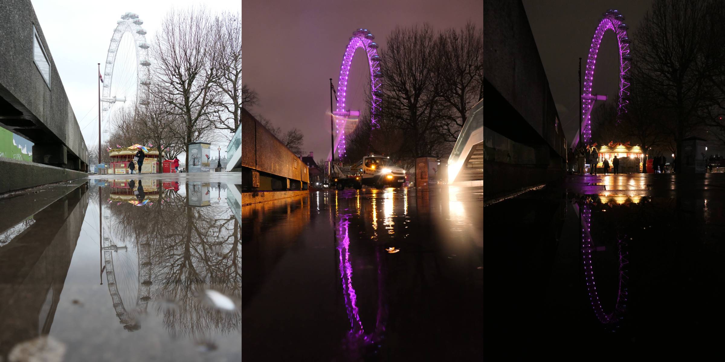 Auf Pfützenjagd gehe ich wirklich noch nicht lang, weswegen ich eigentlich noch ein wenig warten wollte, bis ich euch dieses Lieblingsmotiv vorstelle. Da mir aber das regnerische Wetter in London („endlich“ mal so, wie man es sich gemeinhin vorstellt…) in der vergangenen Woche so einiges geboten hat, was Pfützen und komplett von einem Wasserfilm überzogene Plätze, Gehsteige und Straßen anbelangt, stelle ich euch doch heute schon meine neue Leidenschaft für Pfützenspiegelungen vor. 😎