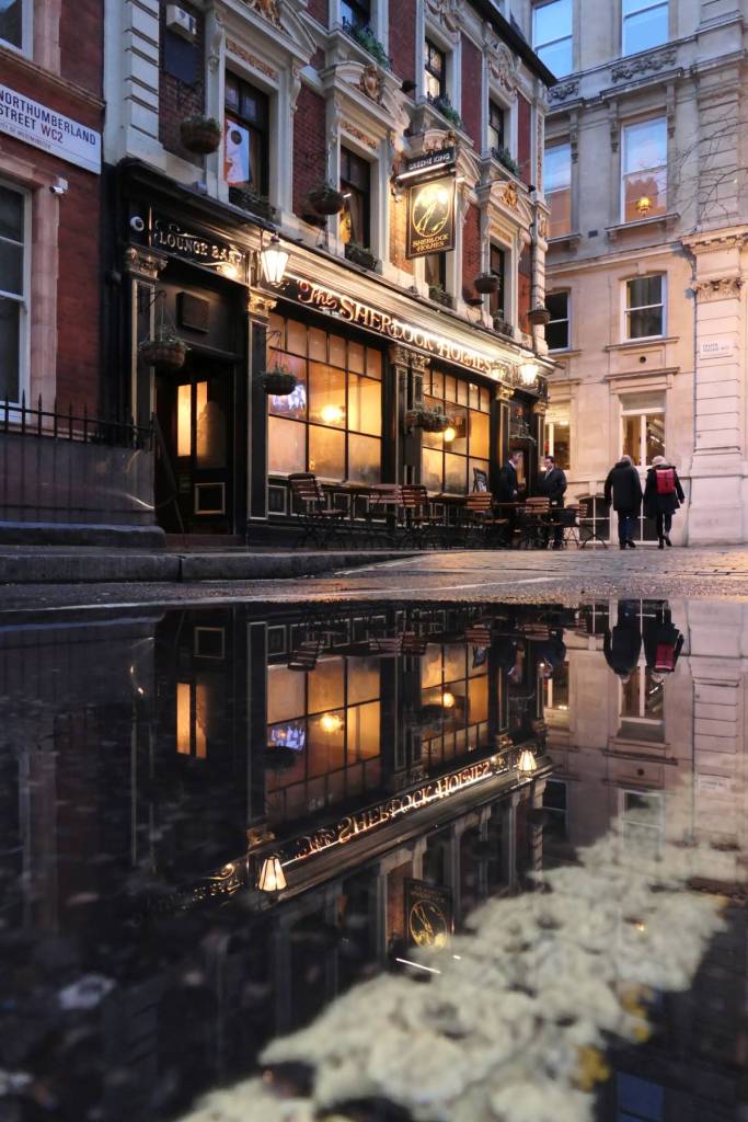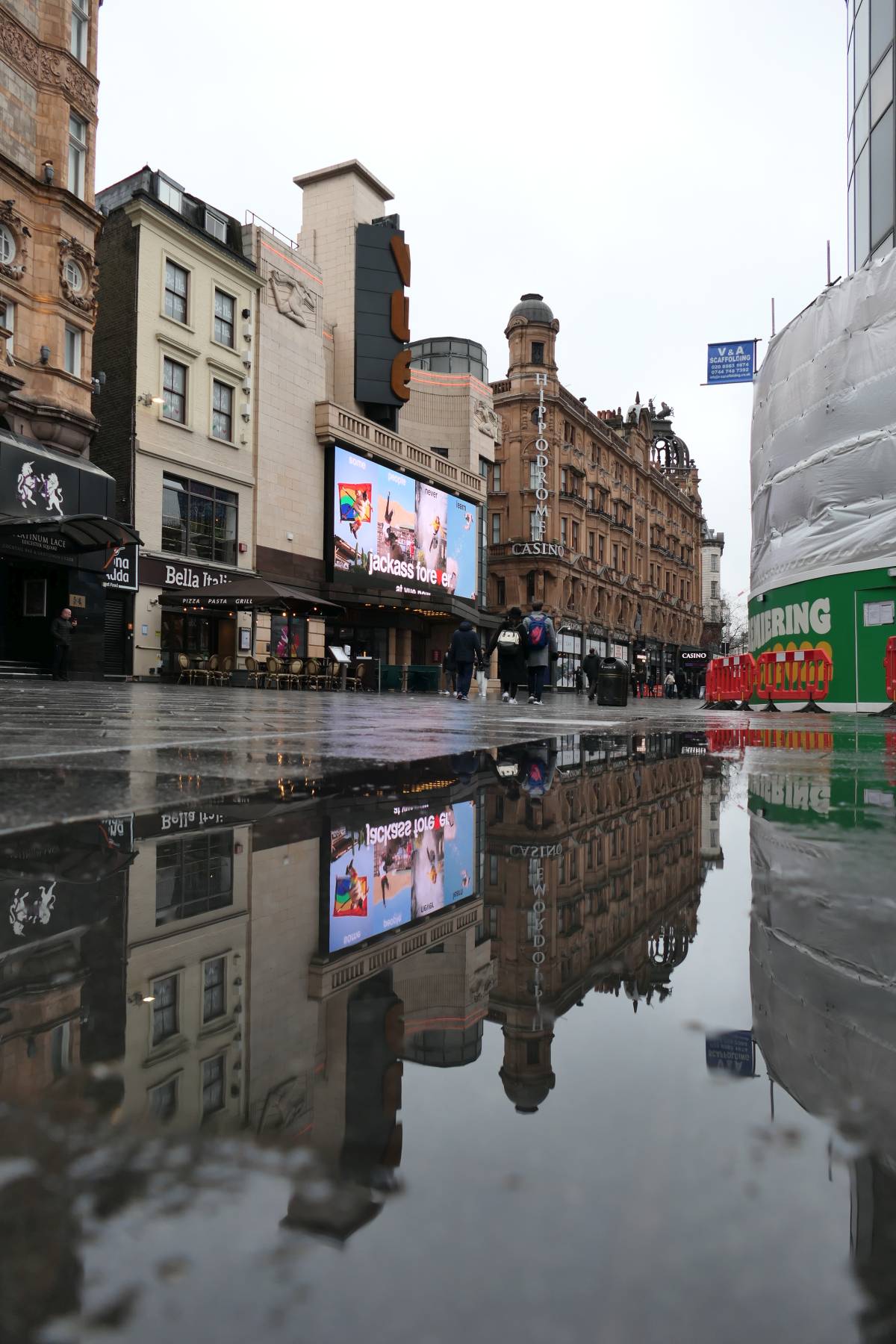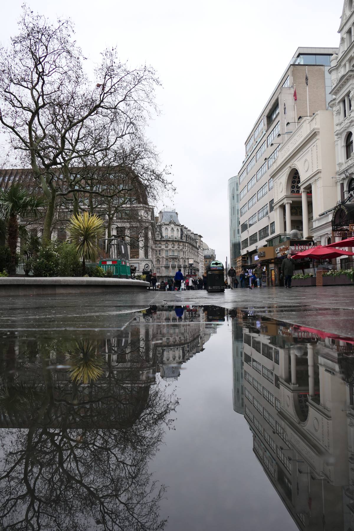 Dafür hätte ich jetzt zum Schluss für euch noch Spiegelungen vom verregnetsten Tag (Dienstag), und zwar vom Leicester Square, Piccadilly Circus und Trafalgar Square.