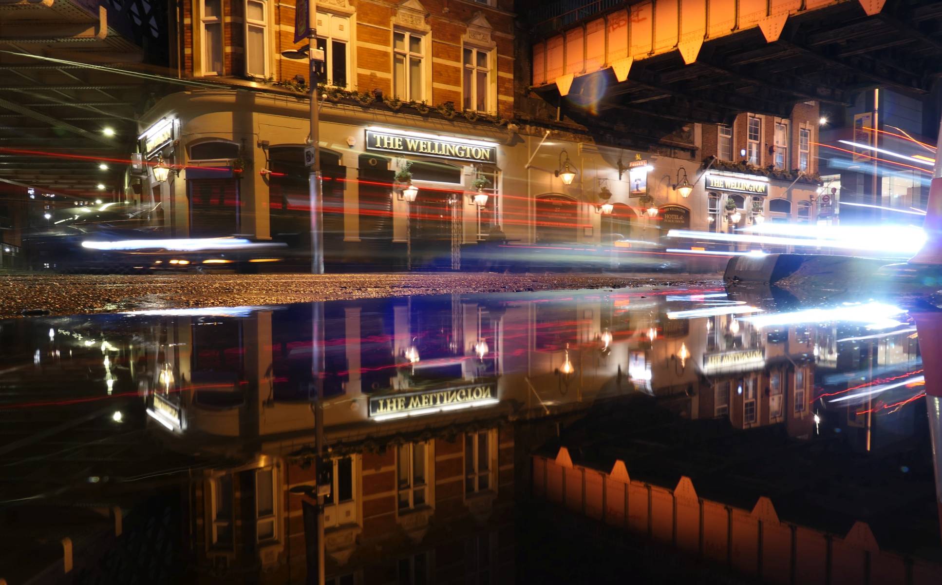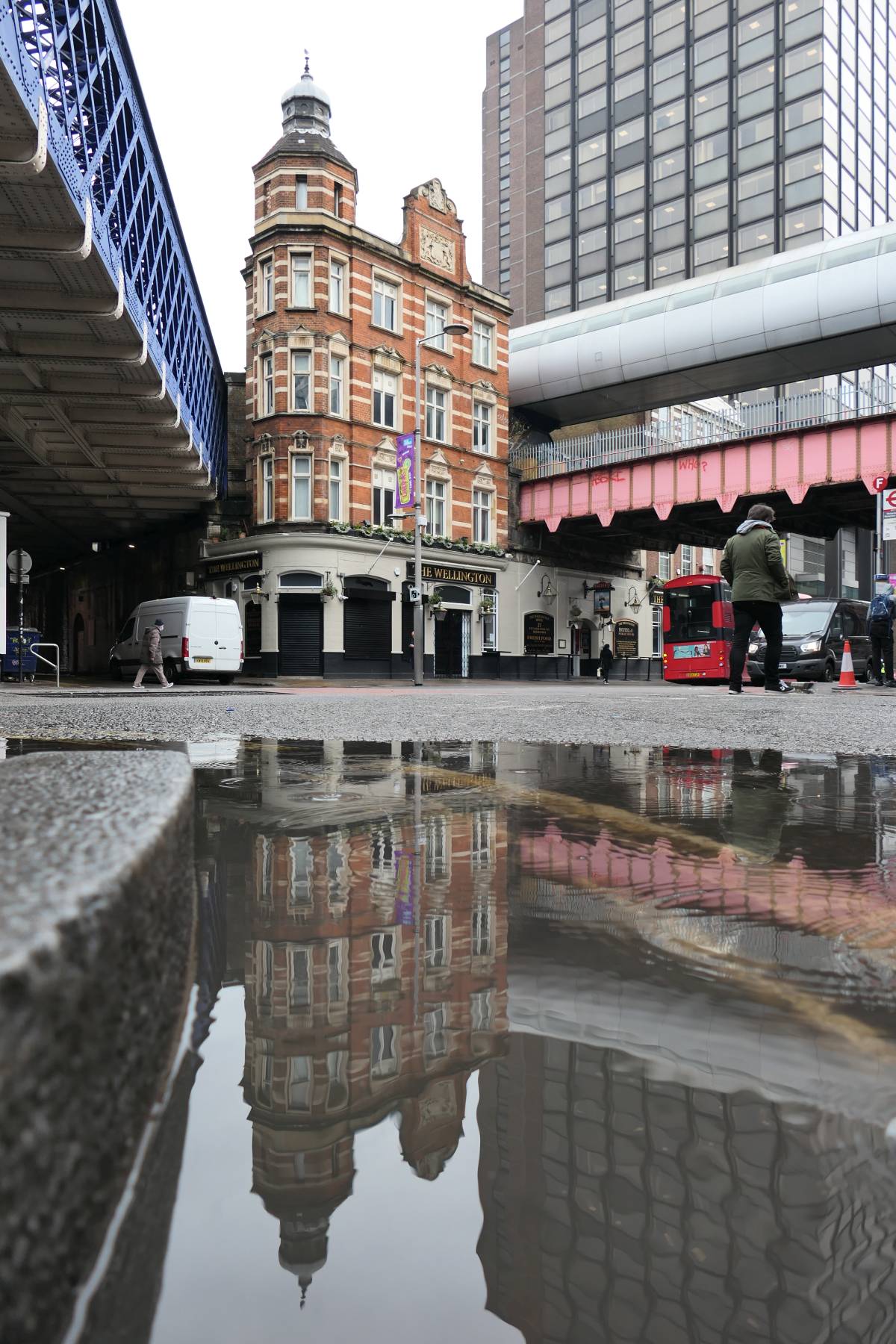Und dann kam London – und hat mir sehr viel Übungsmaterial gebeten, schon allein auf meinen Wegen vom Hotel zu den Theatern. Hier erstmal mein Hotel (und Pub): The Wellington gleich an der Waterloo Station.