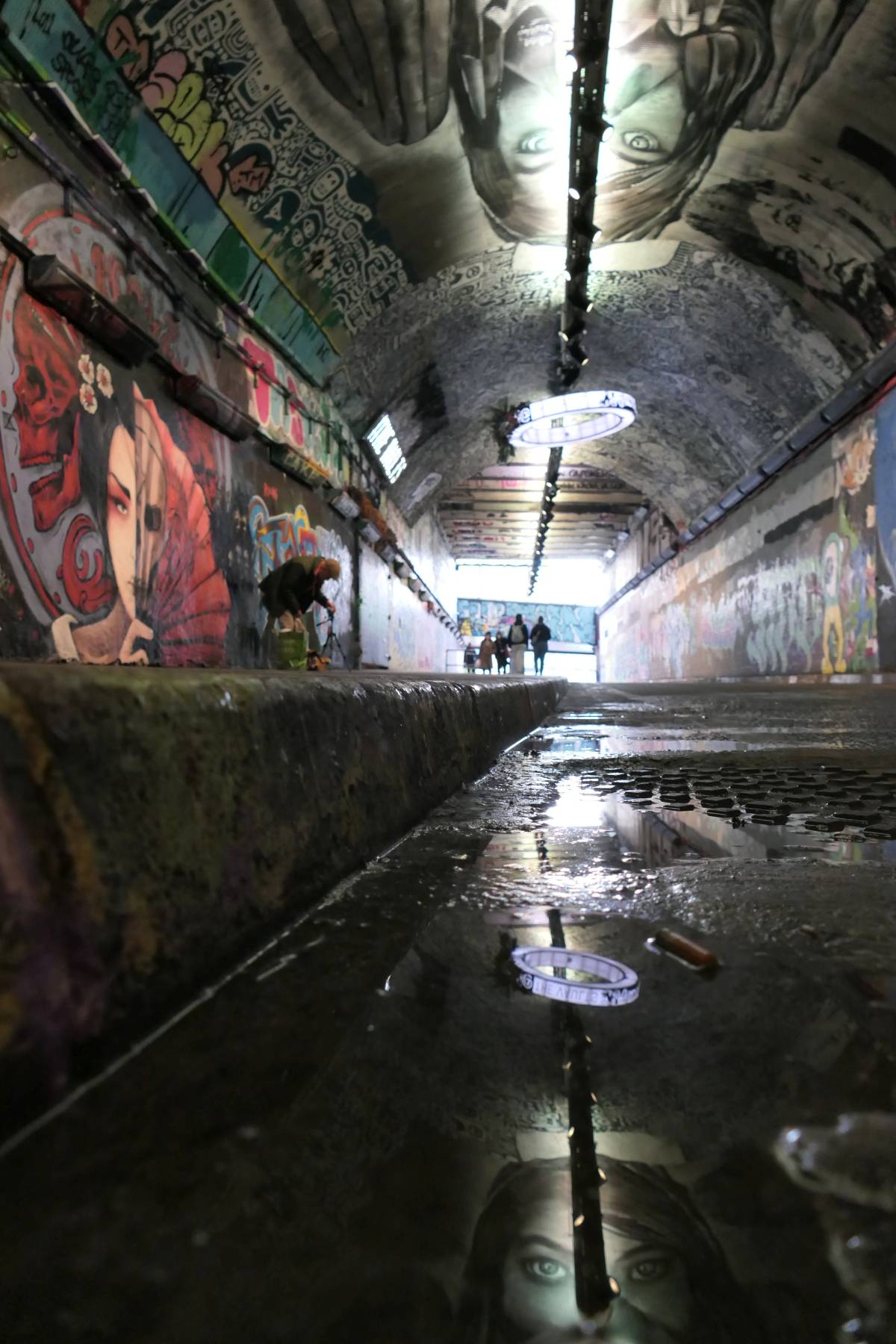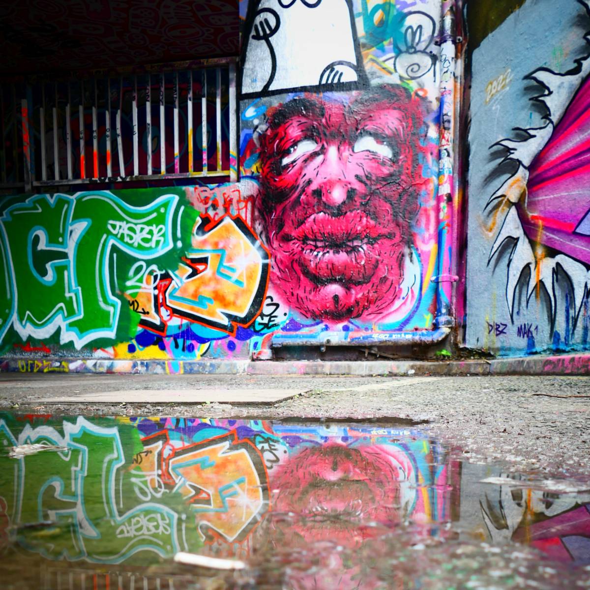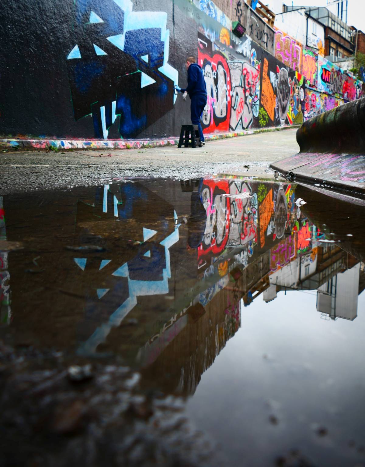 Auch Pubs – und sogar Graffiti im Leake Tunnel – machen sich gut gespiegelt in Pfützen.