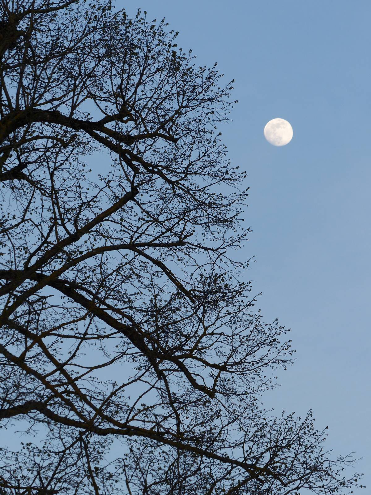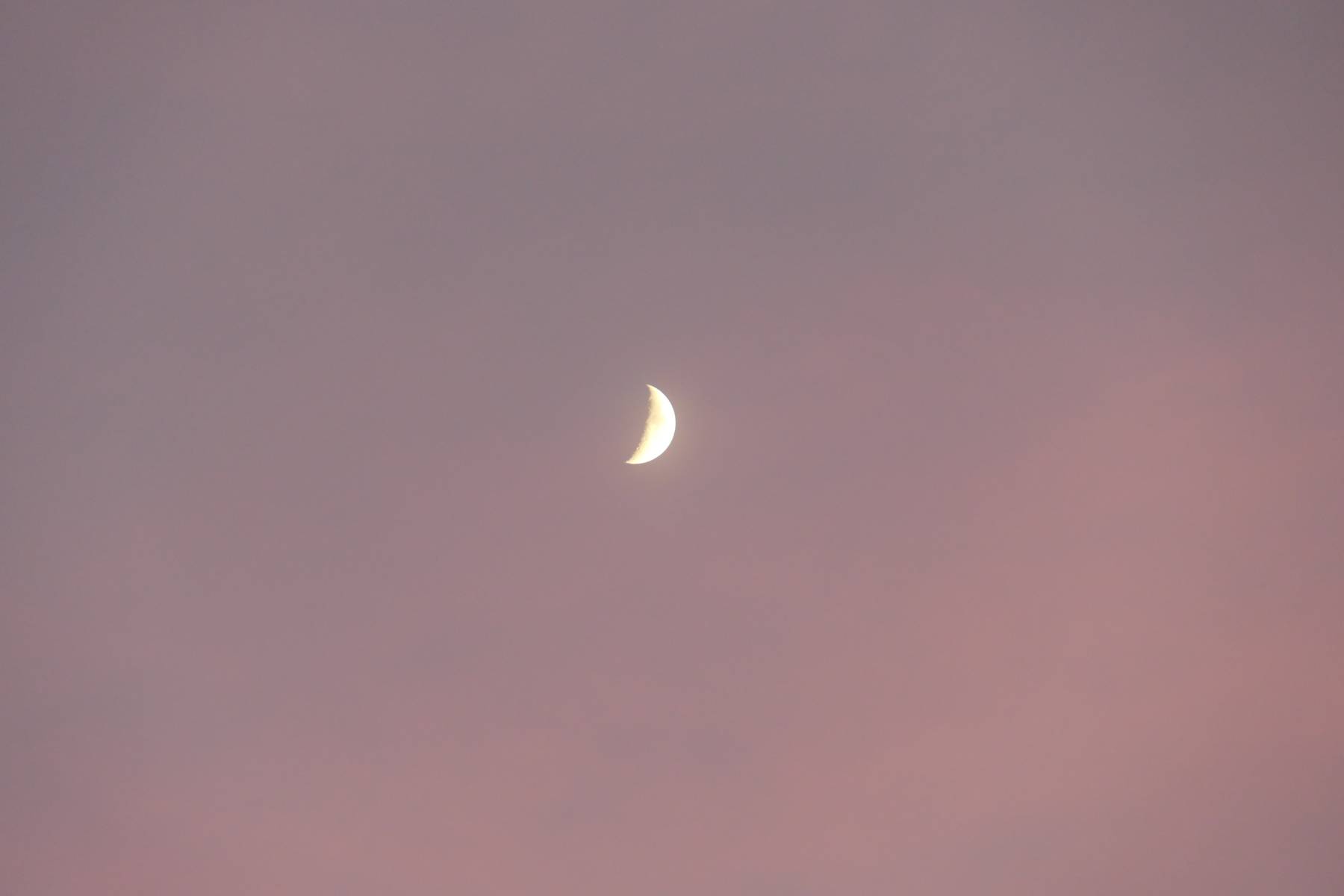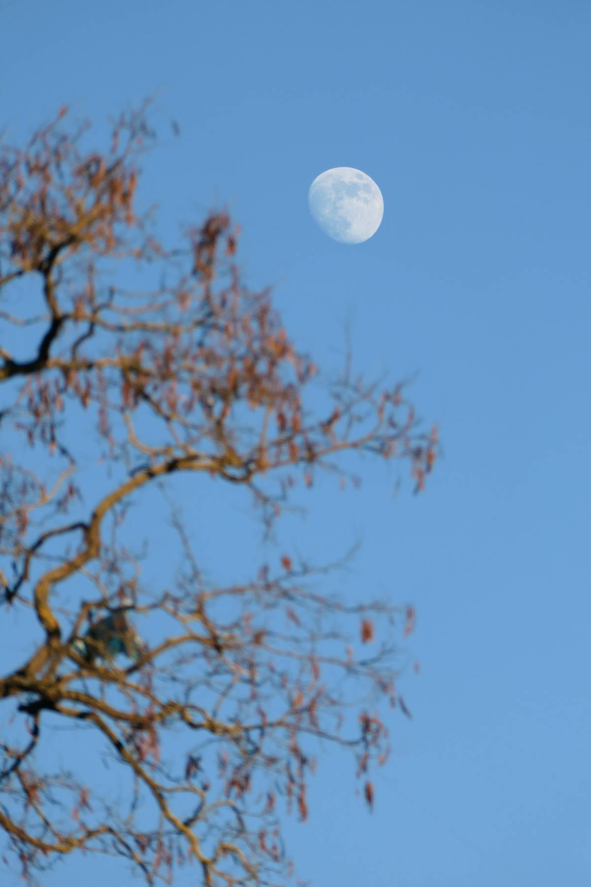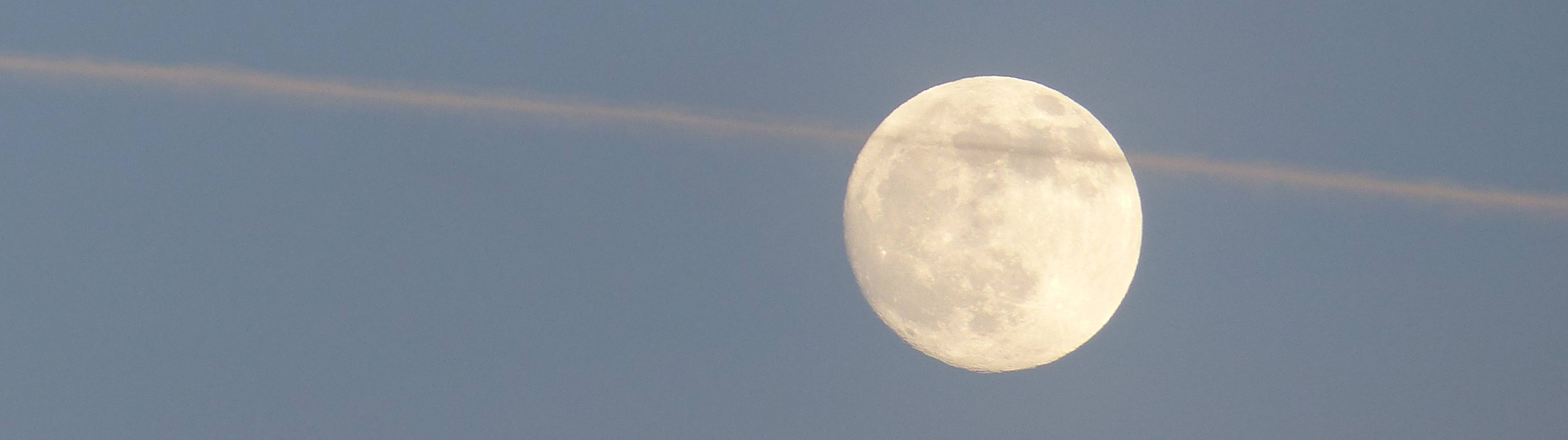 Und so gibt es heute Bilder vom Mond bei Tage und während des Sonnenuntergangs. Bevor ich wusste, wie ich den Mond auch bei Nacht mit Kratern & Co einfangen kann, hatte ich tatsächlich schwerpunktmäßig den Mond bei Tageslicht und in der Dämmerung fotografiert. Natürlich habe ich das auch noch nicht aufgegeben, aber inzwischen gibt es noch viel, viel mehr Fotos des Mondes bei Nacht. Die zeige ich euch ein andermal… 😉