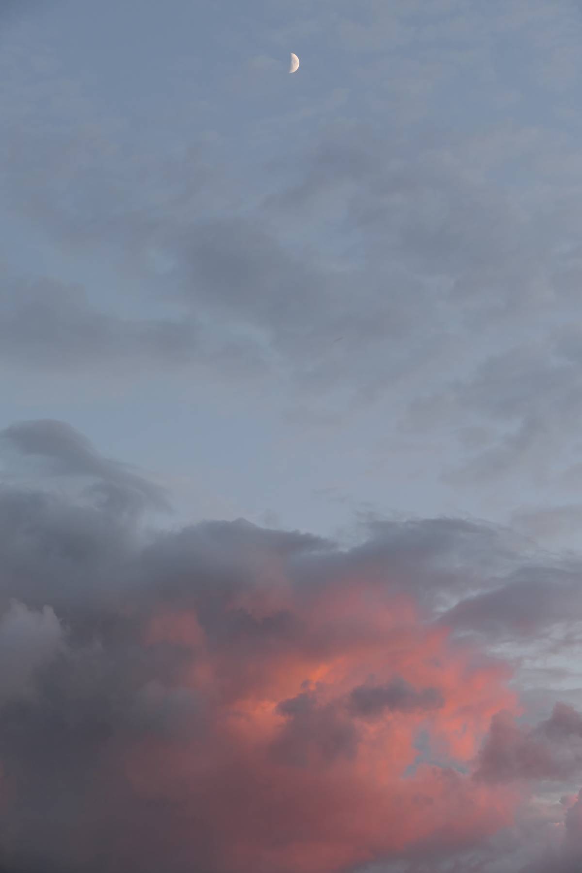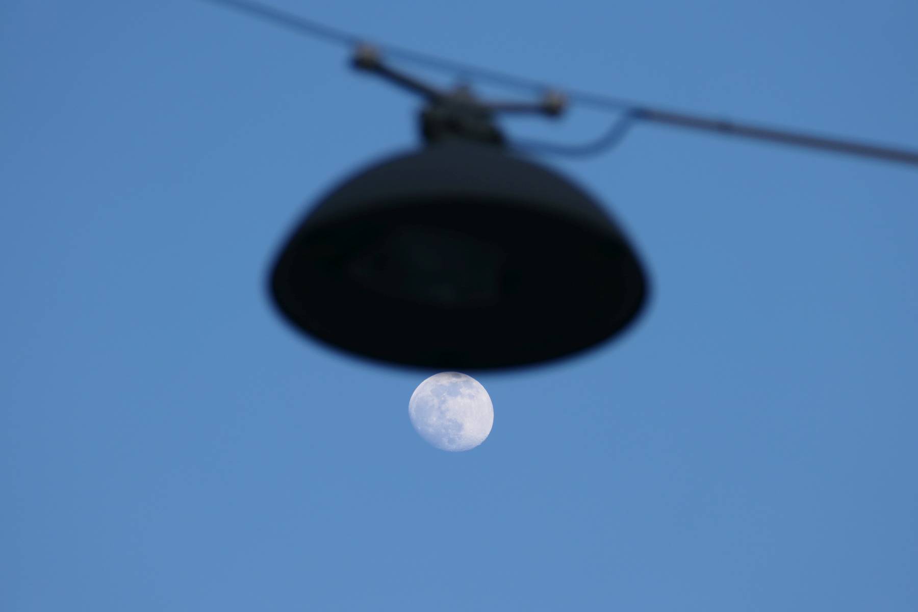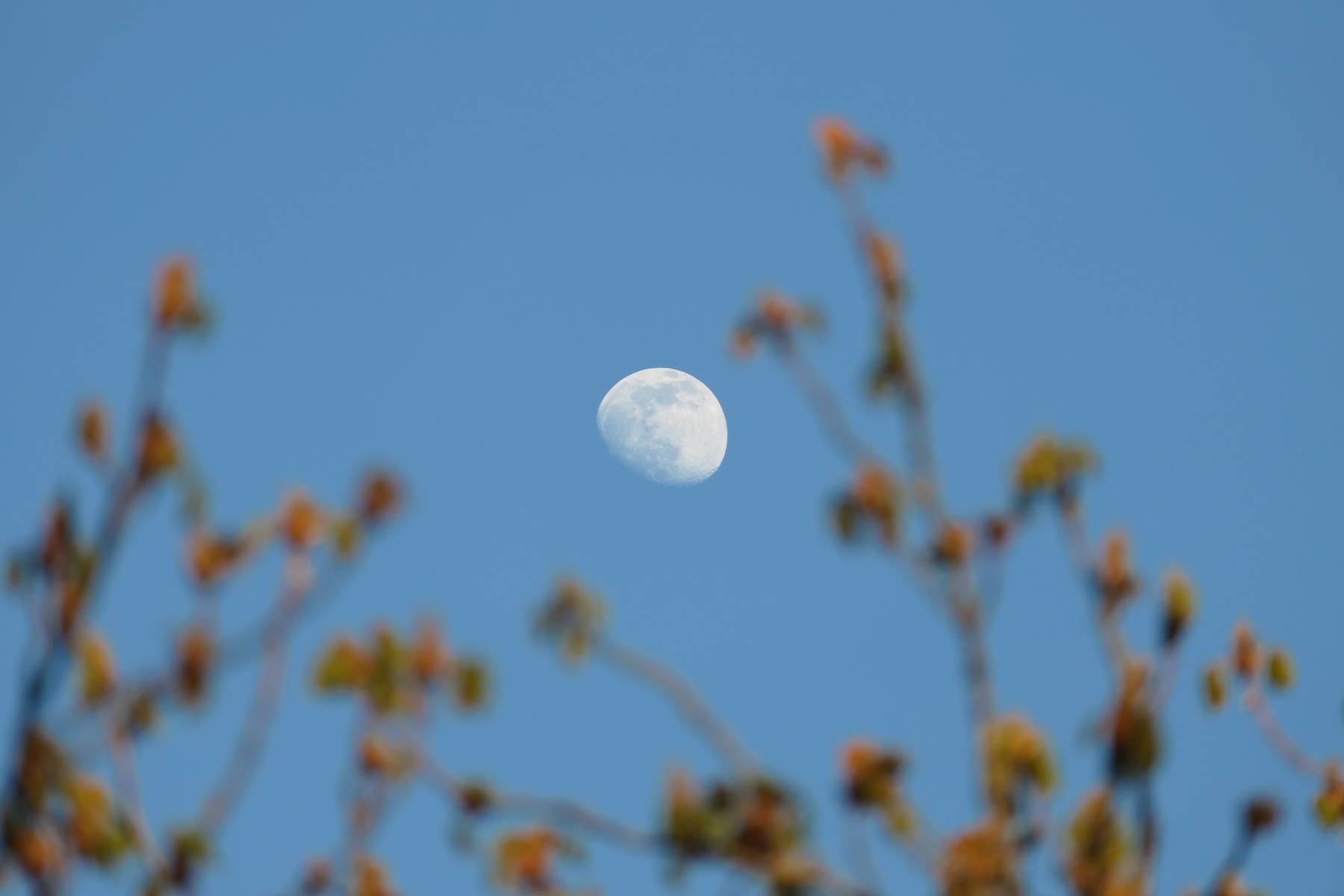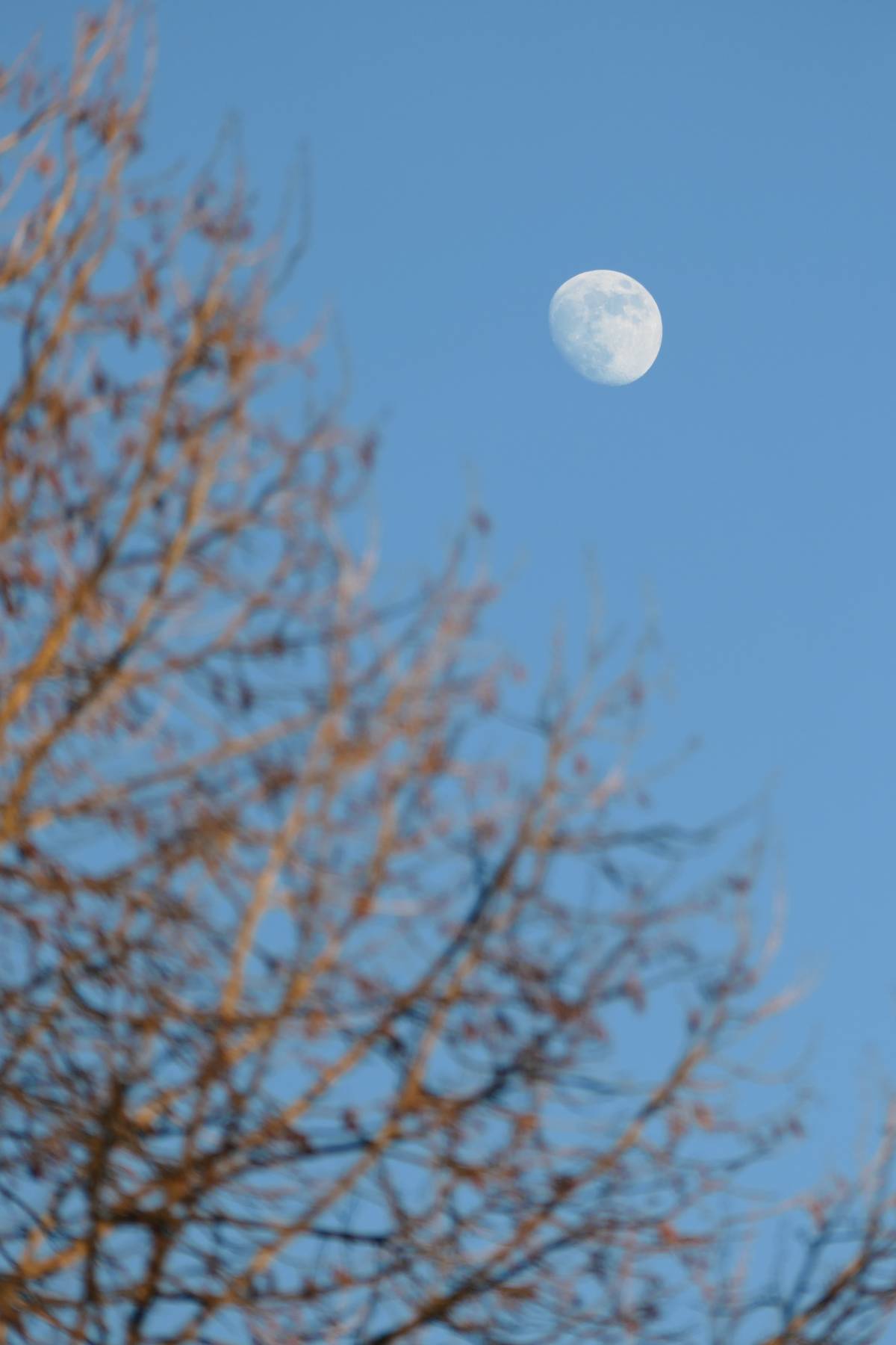 Und so gibt es heute Bilder vom Mond bei Tage und während des Sonnenuntergangs. Bevor ich wusste, wie ich den Mond auch bei Nacht mit Kratern & Co einfangen kann, hatte ich tatsächlich schwerpunktmäßig den Mond bei Tageslicht und in der Dämmerung fotografiert. Natürlich habe ich das auch noch nicht aufgegeben, aber inzwischen gibt es noch viel, viel mehr Fotos des Mondes bei Nacht. Die zeige ich euch ein andermal… 😉