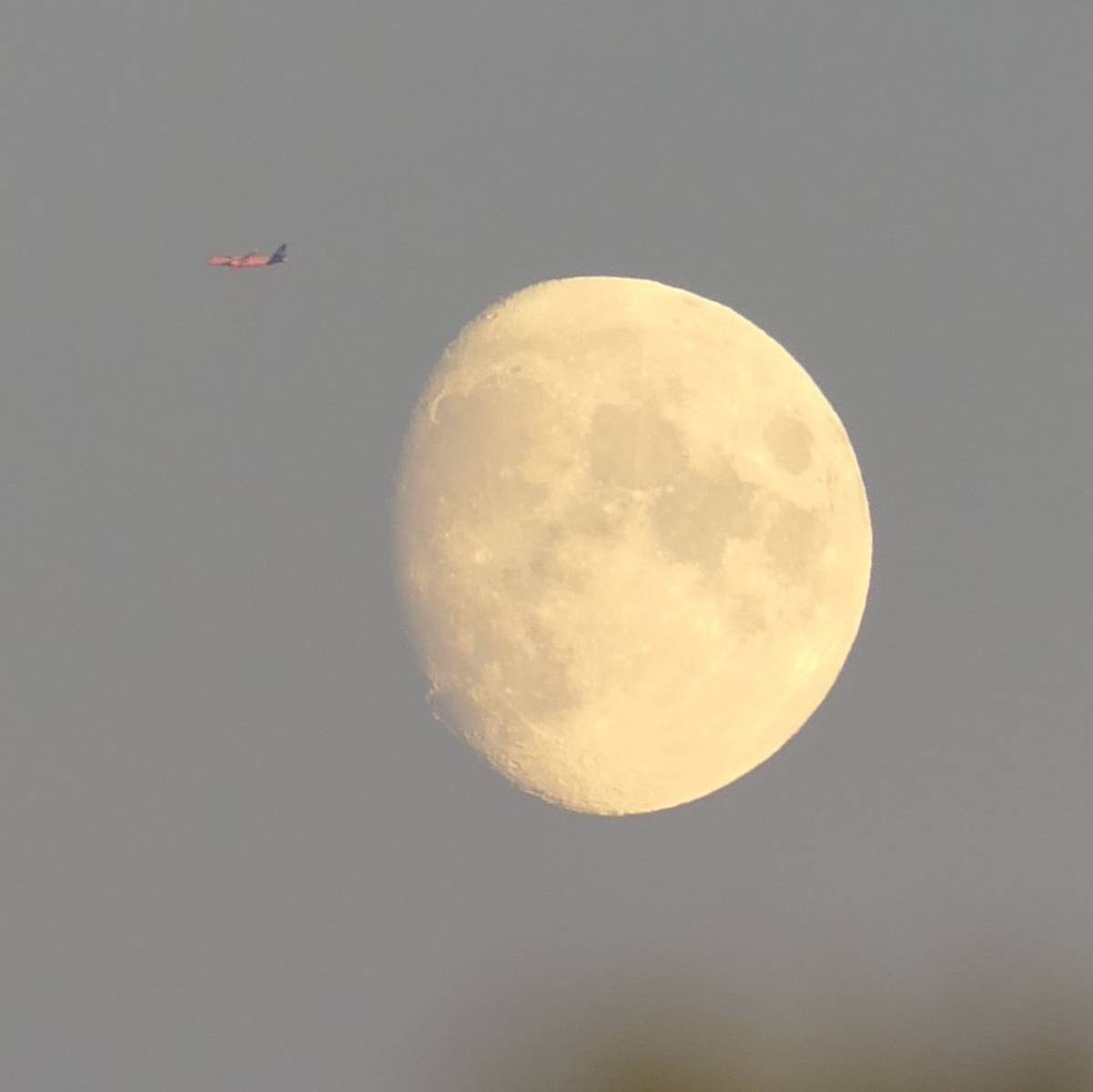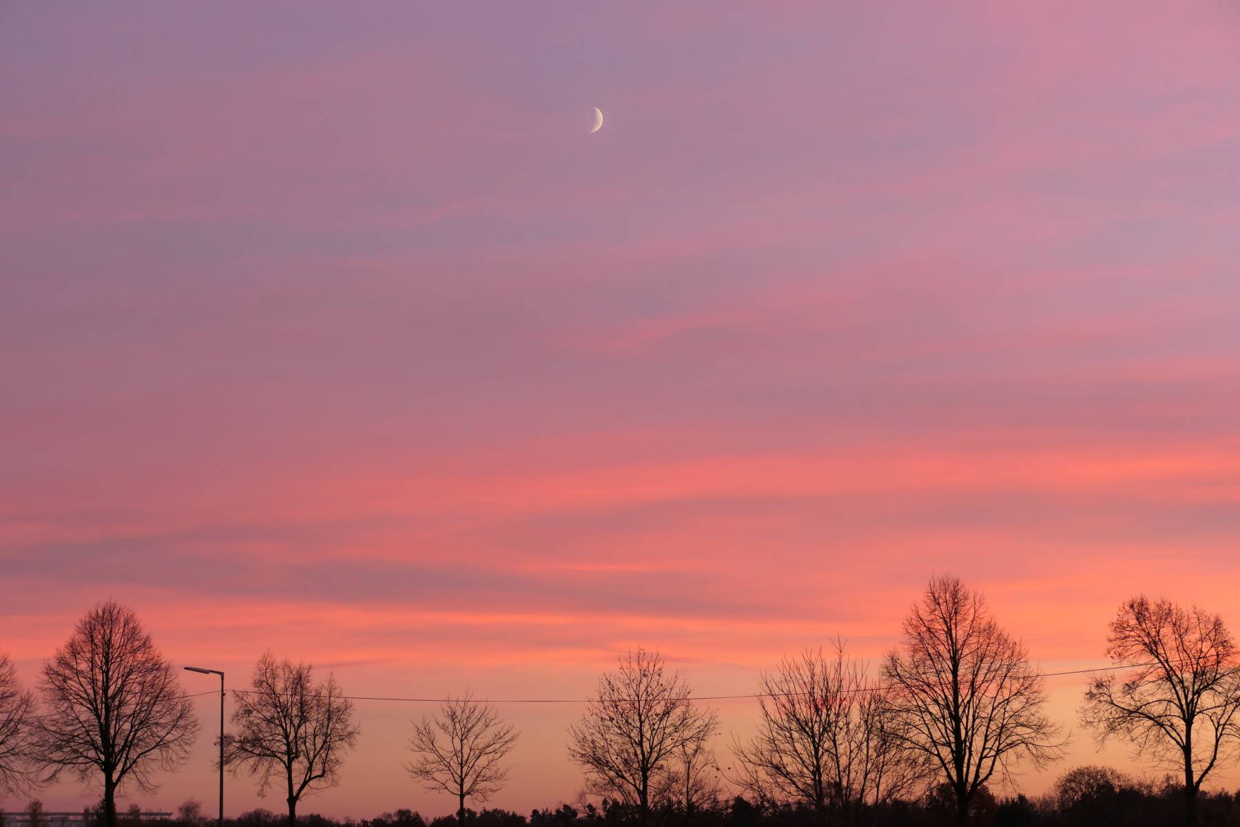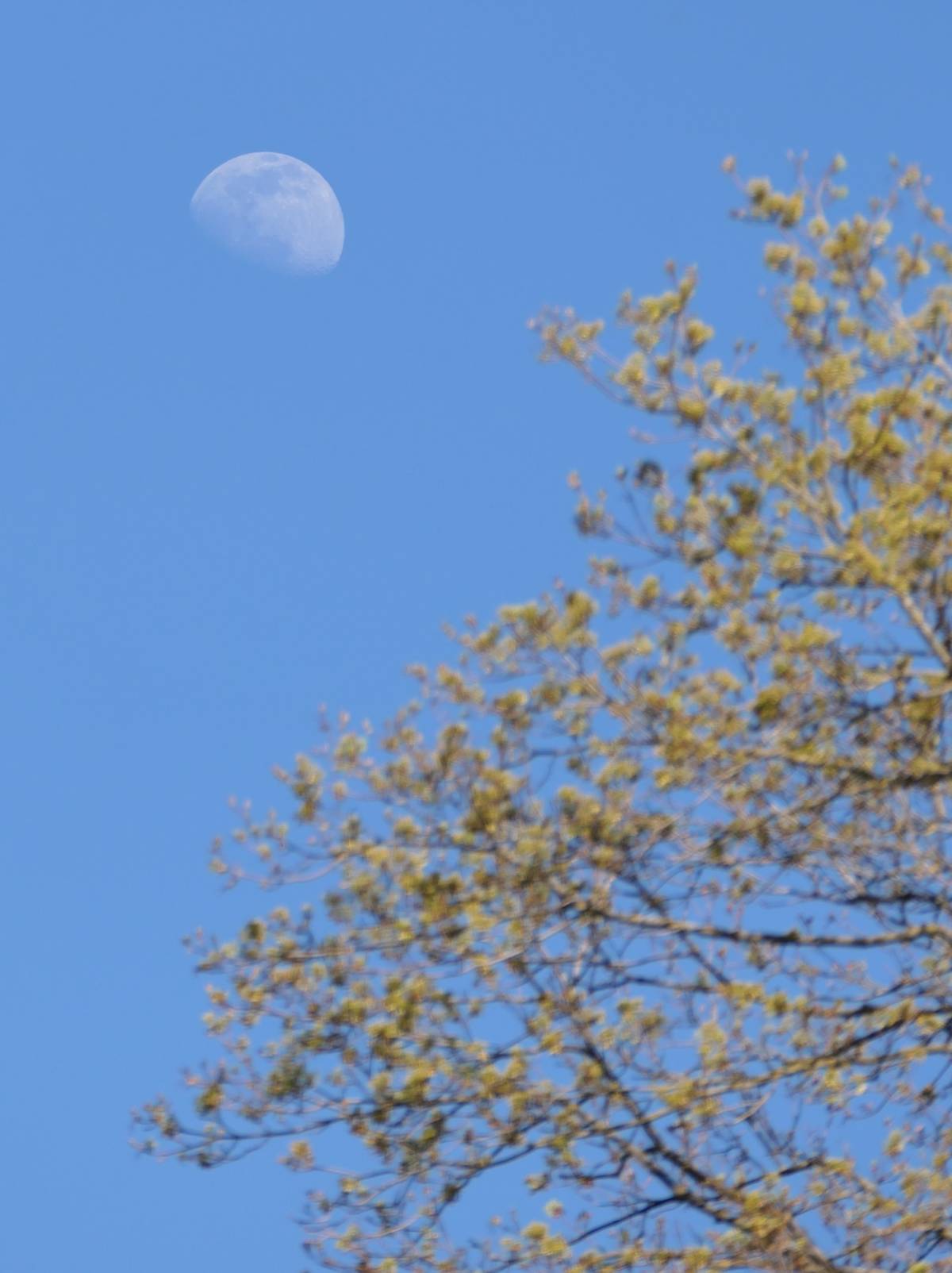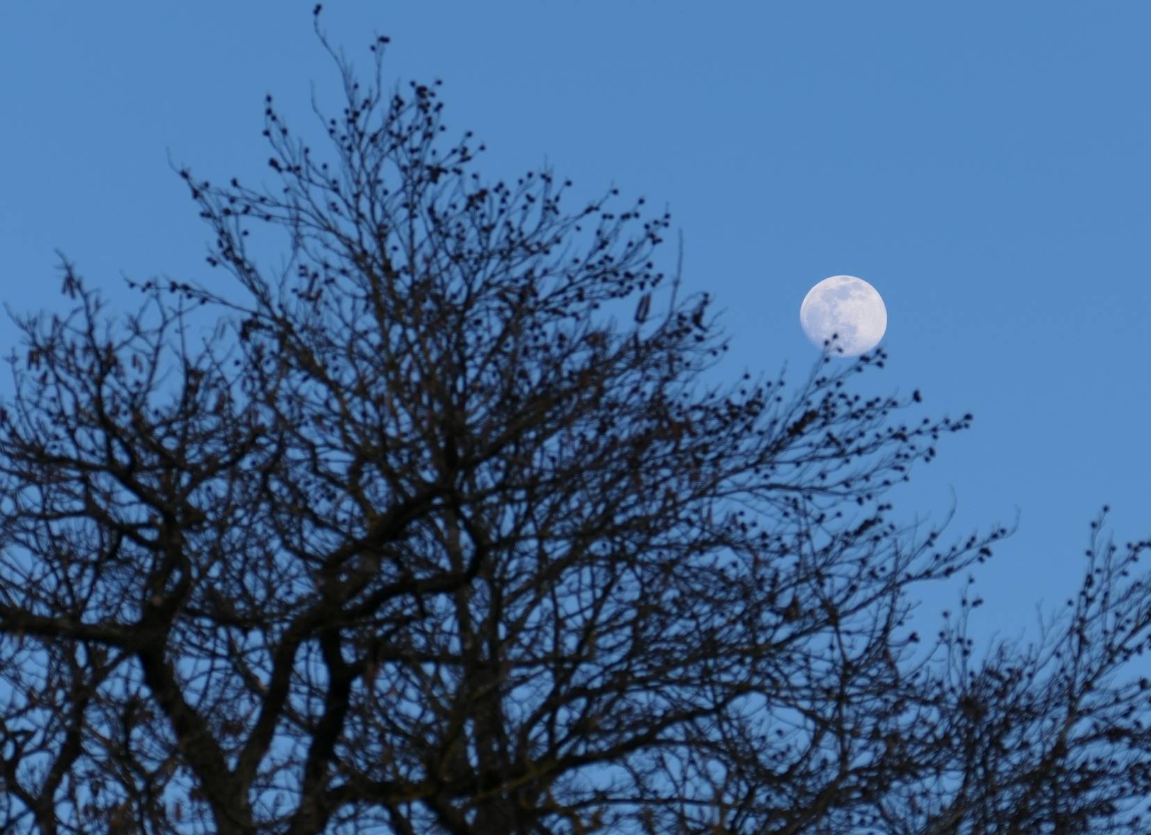 Und so gibt es heute Bilder vom Mond bei Tage und während des Sonnenuntergangs. Bevor ich wusste, wie ich den Mond auch bei Nacht mit Kratern & Co einfangen kann, hatte ich tatsächlich schwerpunktmäßig den Mond bei Tageslicht und in der Dämmerung fotografiert. Natürlich habe ich das auch noch nicht aufgegeben, aber inzwischen gibt es noch viel, viel mehr Fotos des Mondes bei Nacht. Die zeige ich euch ein andermal… 😉