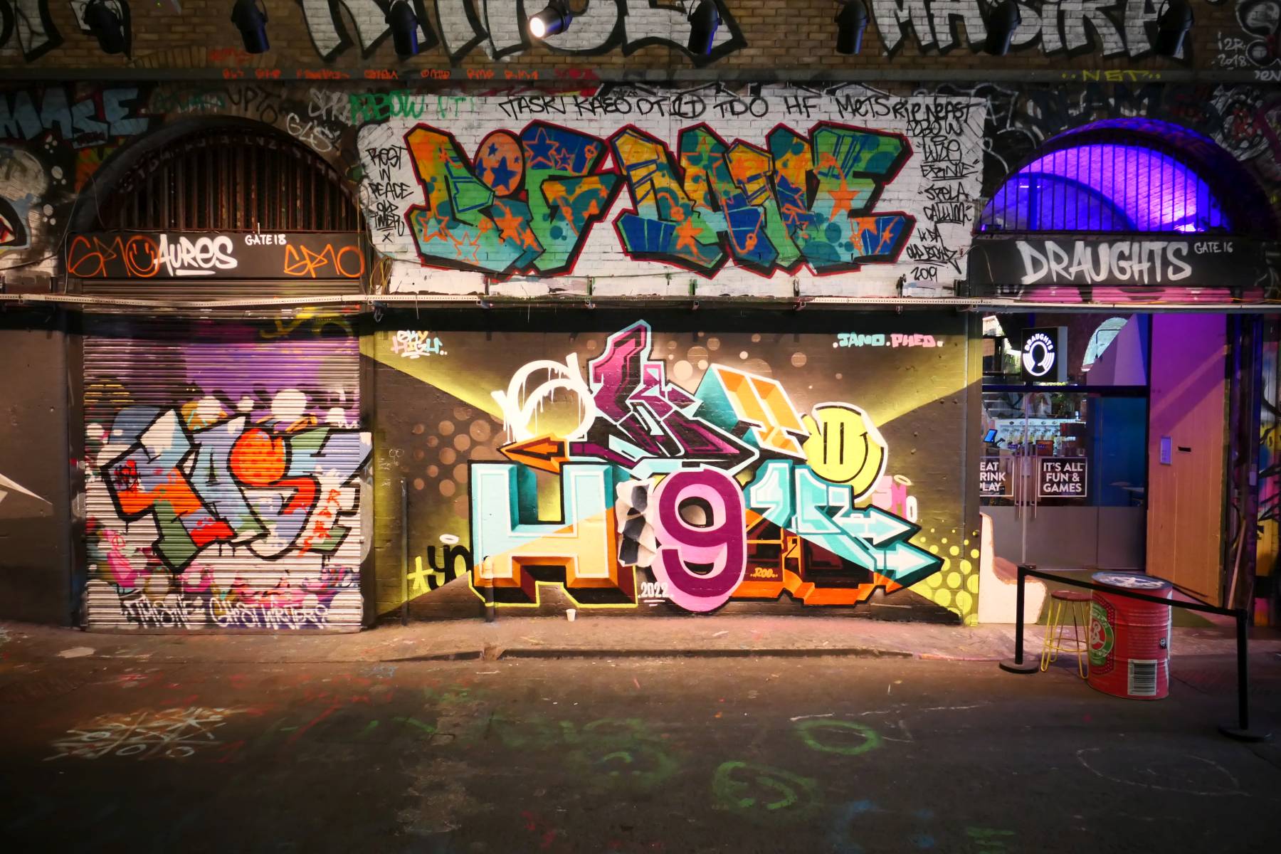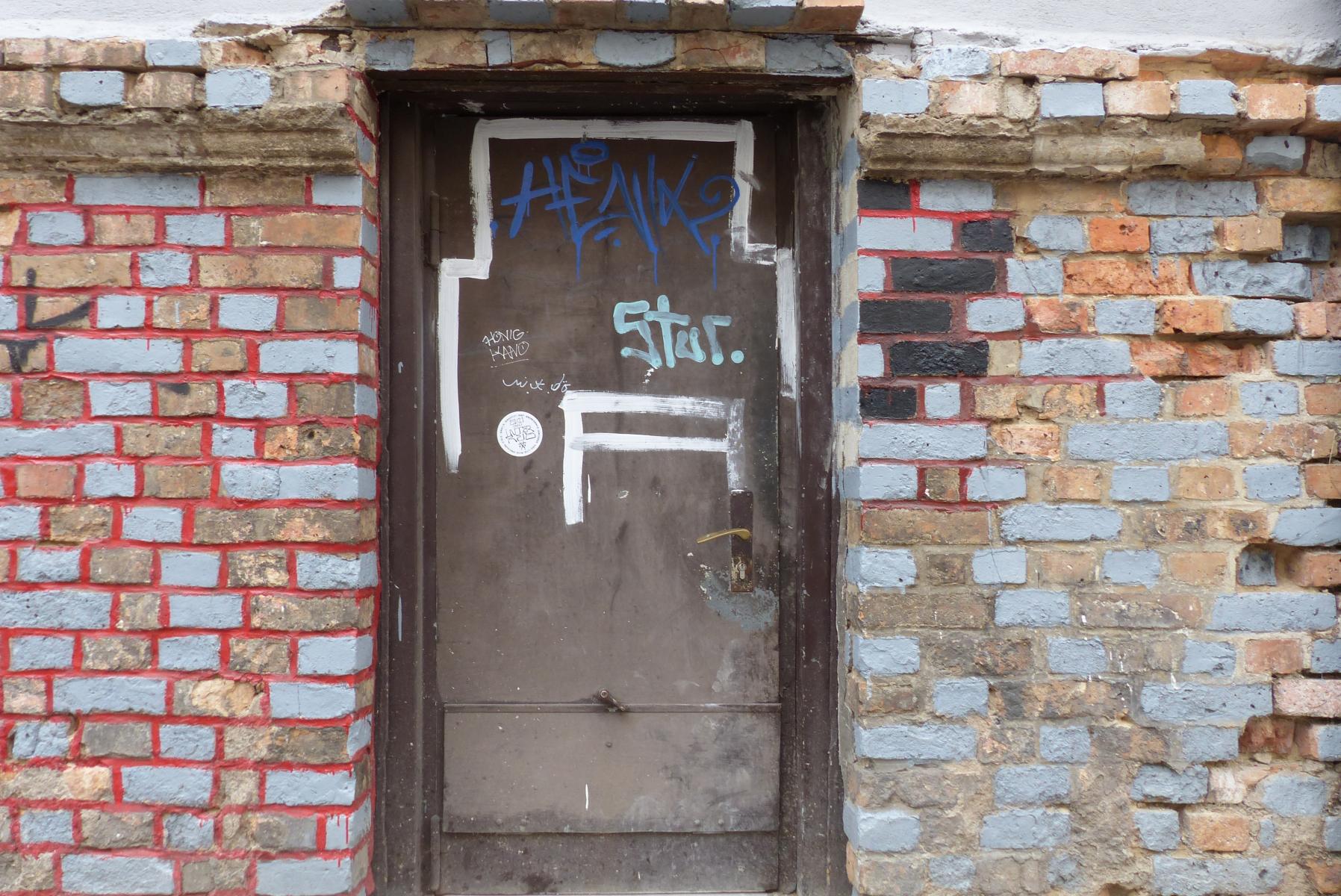 Bleiben wir bunt – diesmal mit Graffiti auf oder neben den Türen (auch Garagentüren):