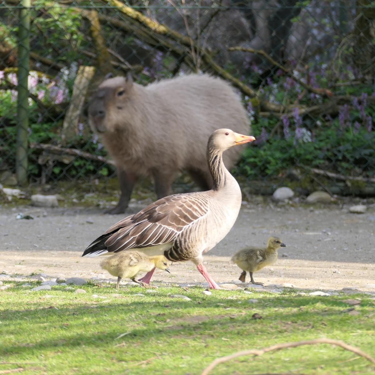 Ich fand es ja extrem spannend zu sehen, wie viele Fotos ich so im Laufe der letzten sieben Jahre gemacht habe – ich würde sie ja beileibe nicht als meine Lieblingstiere bezeichnen, wohl aber sind sie eines meiner Lieblingsmotive. Und da sind schon auch ein paar echte Lieblingsfotos mit dabei, wie z. B. die Vierer-Porträtserie der Gansdiva, einige von den Kükenfotos, natürlich die mit dem Capybara im Hintergrund ❤ und die Silhouette-Aufnahmen.