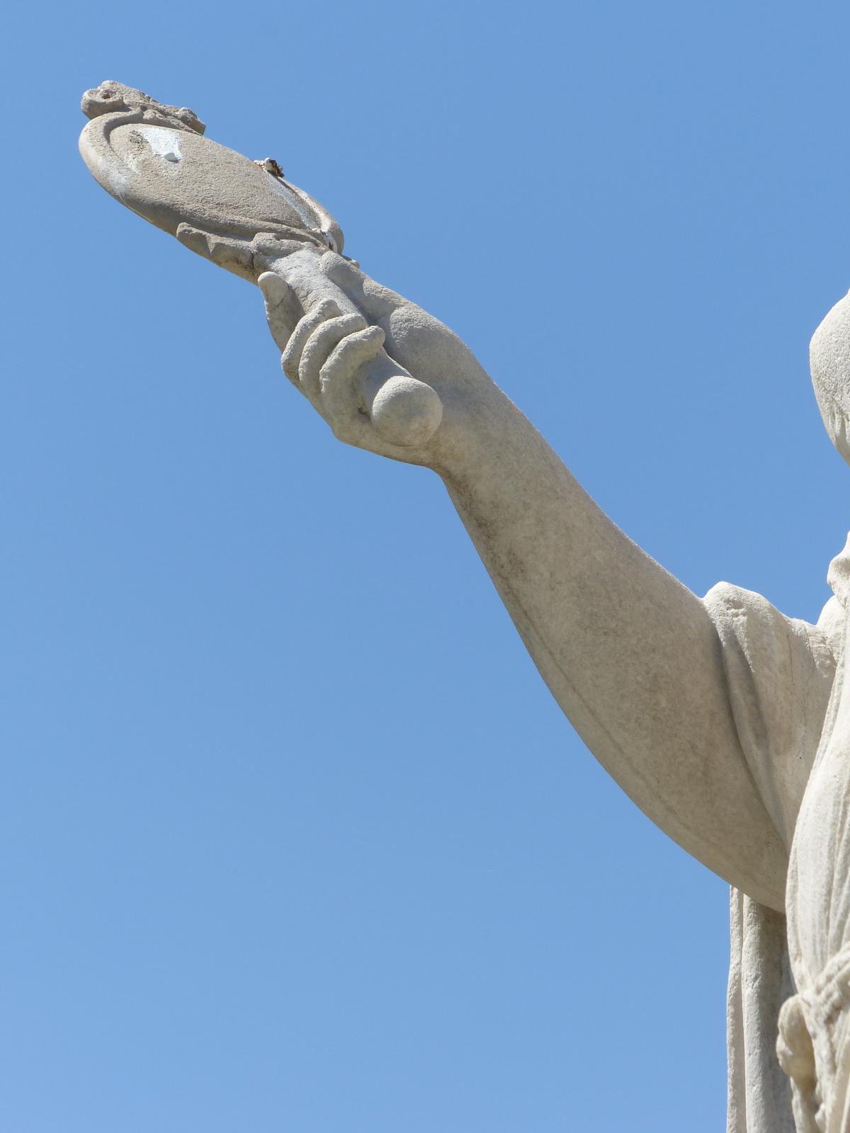 Irgendwie scheinen Statuen auf den ersten Blick eher ein langweiliges, wenig kreatives Motiv zu sein, aber gleichzeitig habe ich unfassbar viele Fotos von Statuen in meinem Archiv gefunden, z. Tl. wohl auch weil ich dann interessante Perspektiven und/oder Bildausschnitte suchte und es deswegen mehrere Fotos desselben Motivs gibt. Und so bin ich jetzt ein bisschen in der Zwickmühle: Zeige ich euch die ganze Statue oder nur einen Ausschnitt – oder doch beides? Ich werde mal wieder „on the fly“ entscheiden, bin selbst gespannt, wie viele Fotos aus dem Best-of-Ordner (ca. 120 😮 ) letztlich hier landen. In diesem Ordner habe ich nun auch nur Statuen ausgewählt, die im öffentlichen Raum (also nicht in Museen) stehen und die menschliche Figuren zeigen. Ich werde grob versuchen, nach den Orten, an denen ich diese Statuen vorgefunden habe, zu gliedern – bitte erwartet allerdings nicht, dass ich zu jedem Werk dazuschreibe, wen es zeigt und/oder wer sie erschaffen hat. 😳